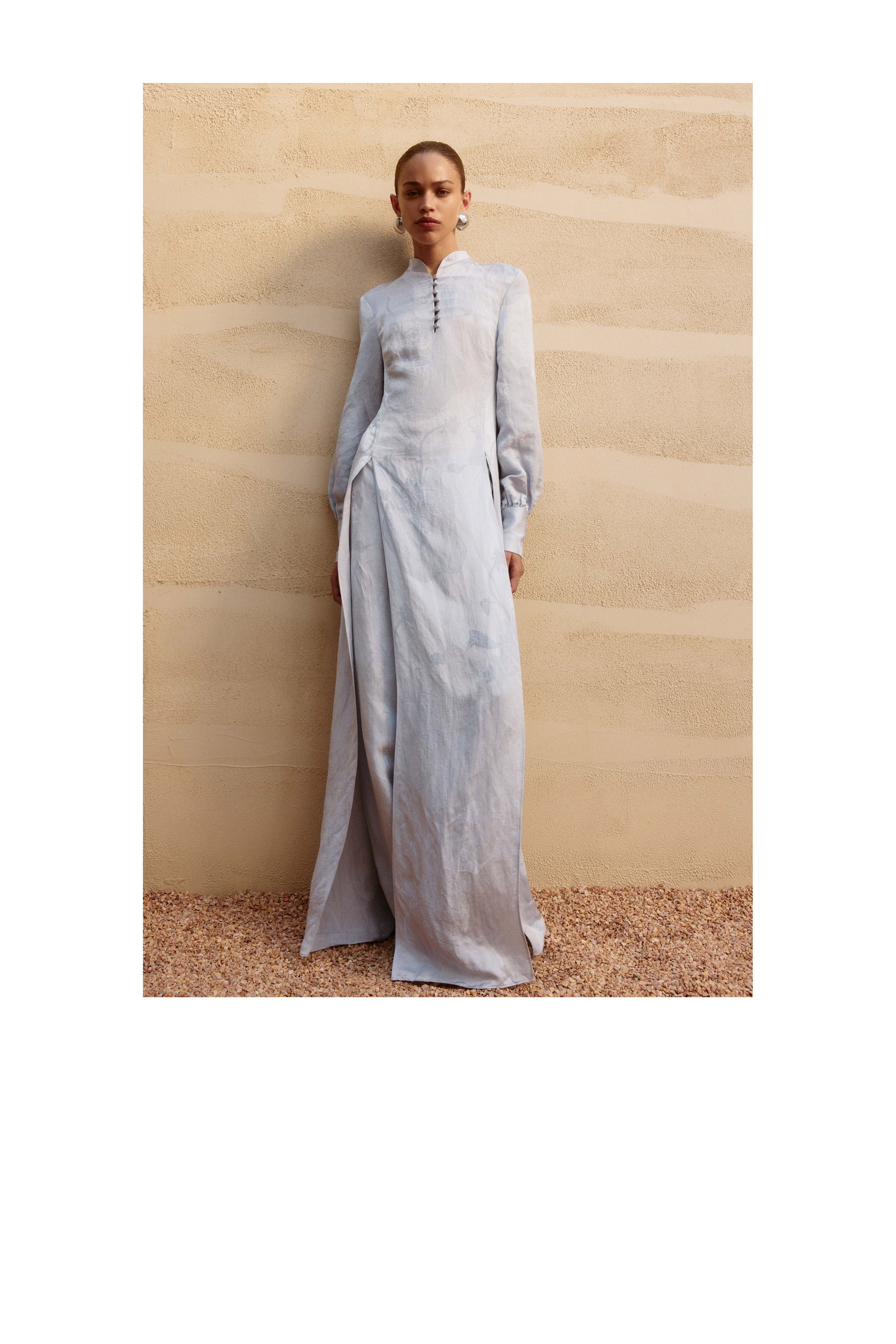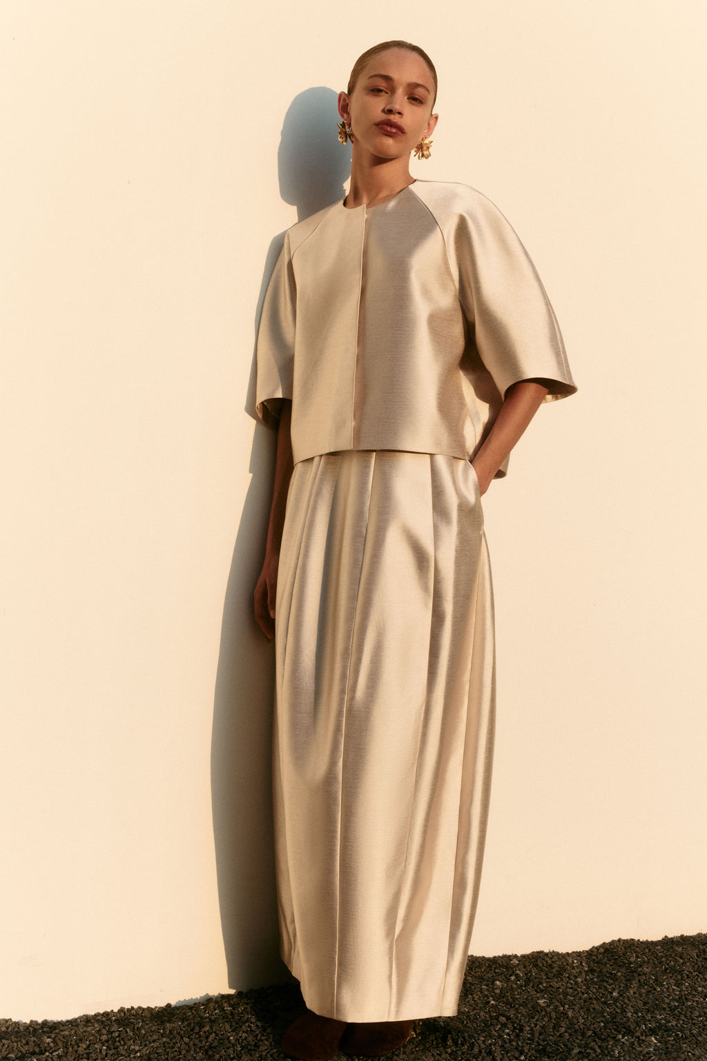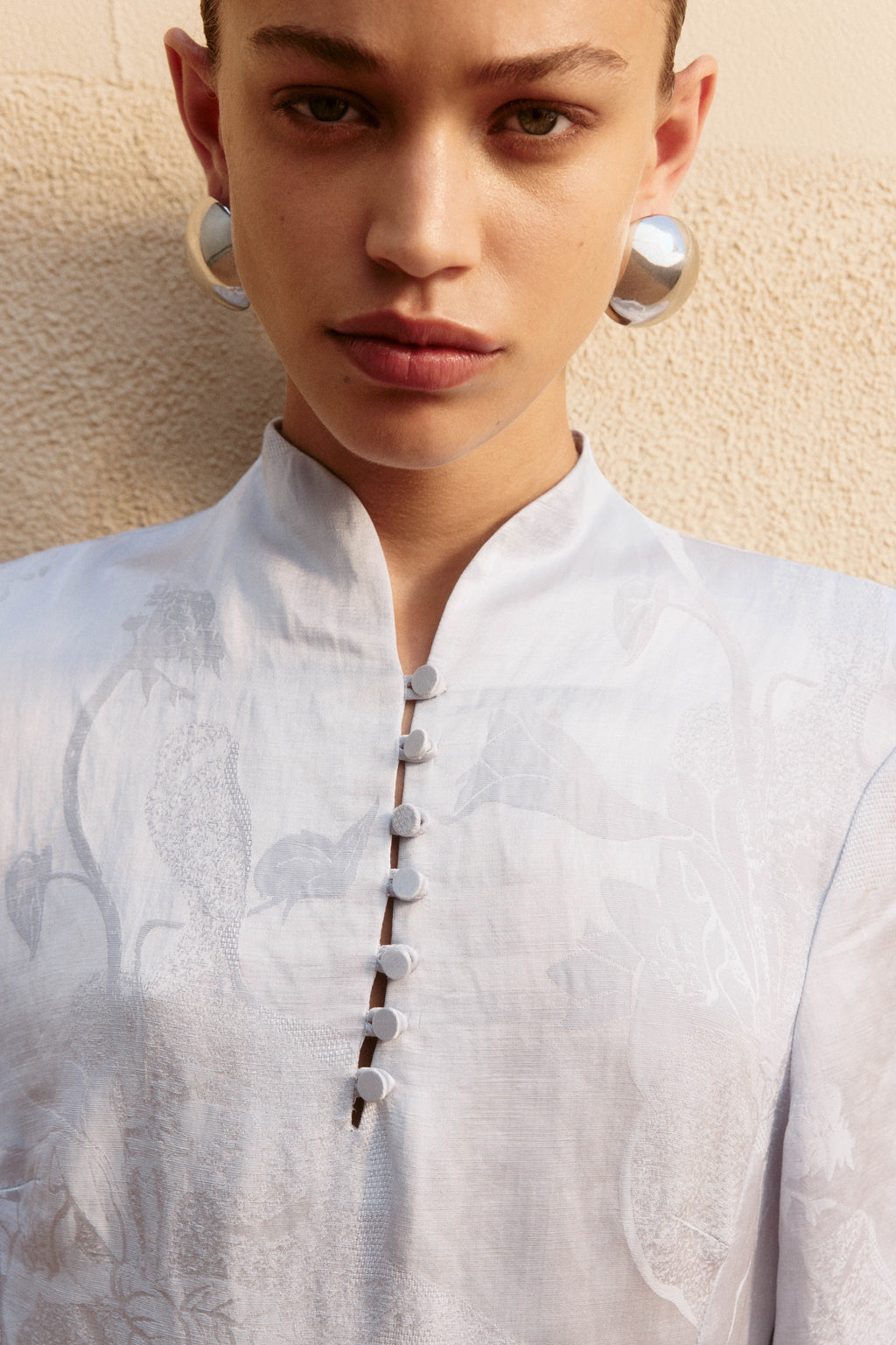 JACQUARD-WEAVE VISCOSE-LINEN BLOUSE