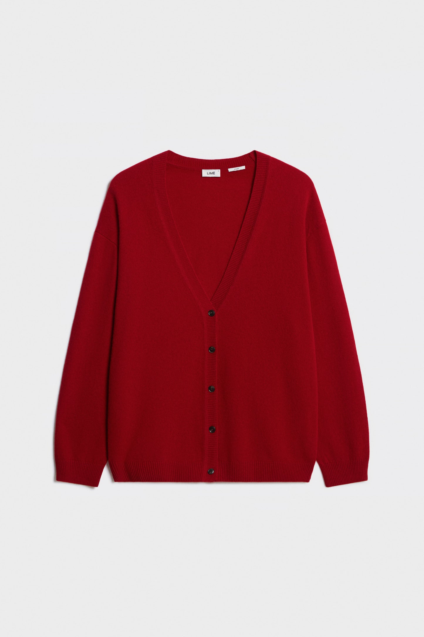 Regular-fit cardigan in 100% wool yarn. V-neck and long sleeves. Front button closure.