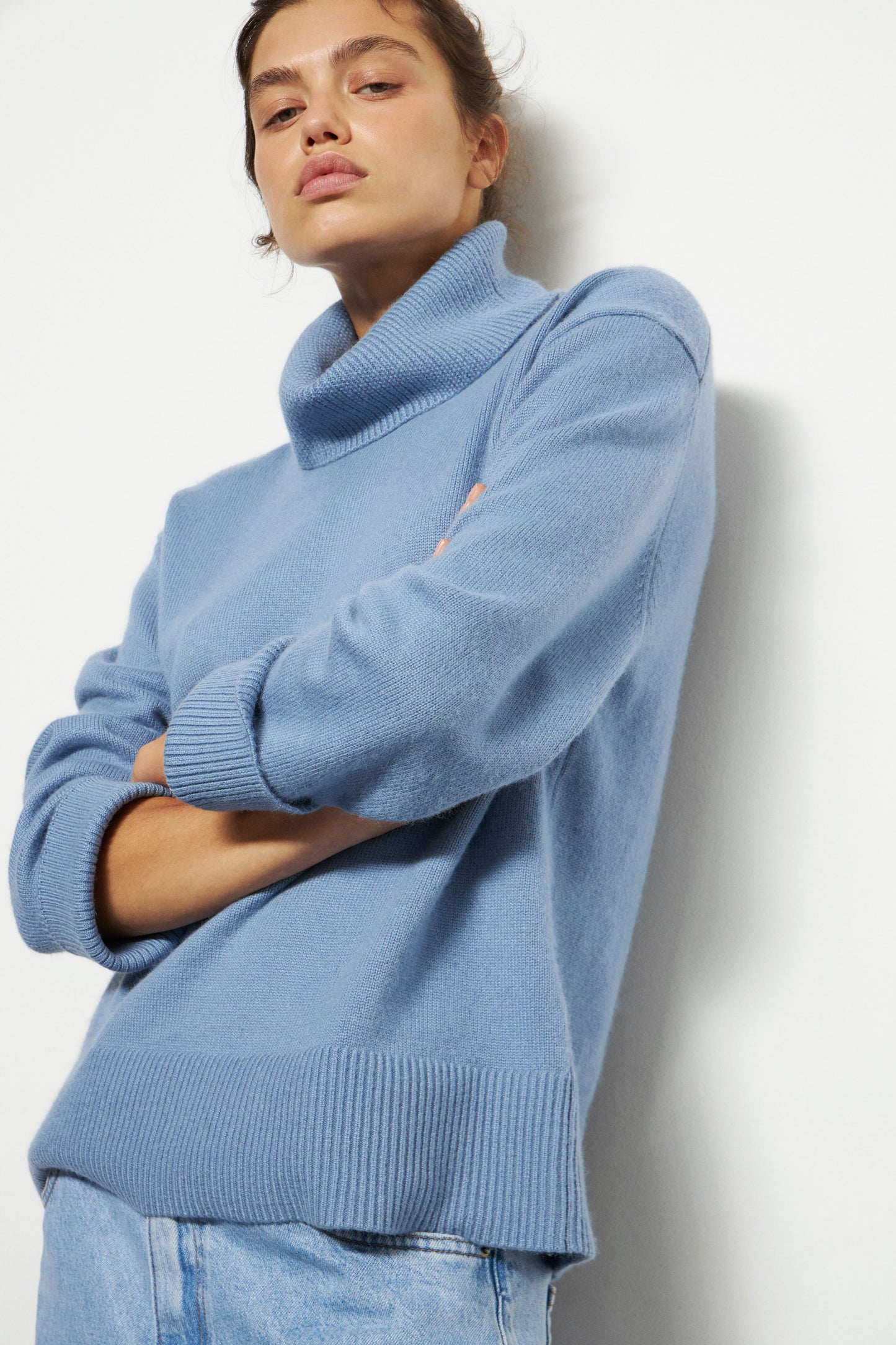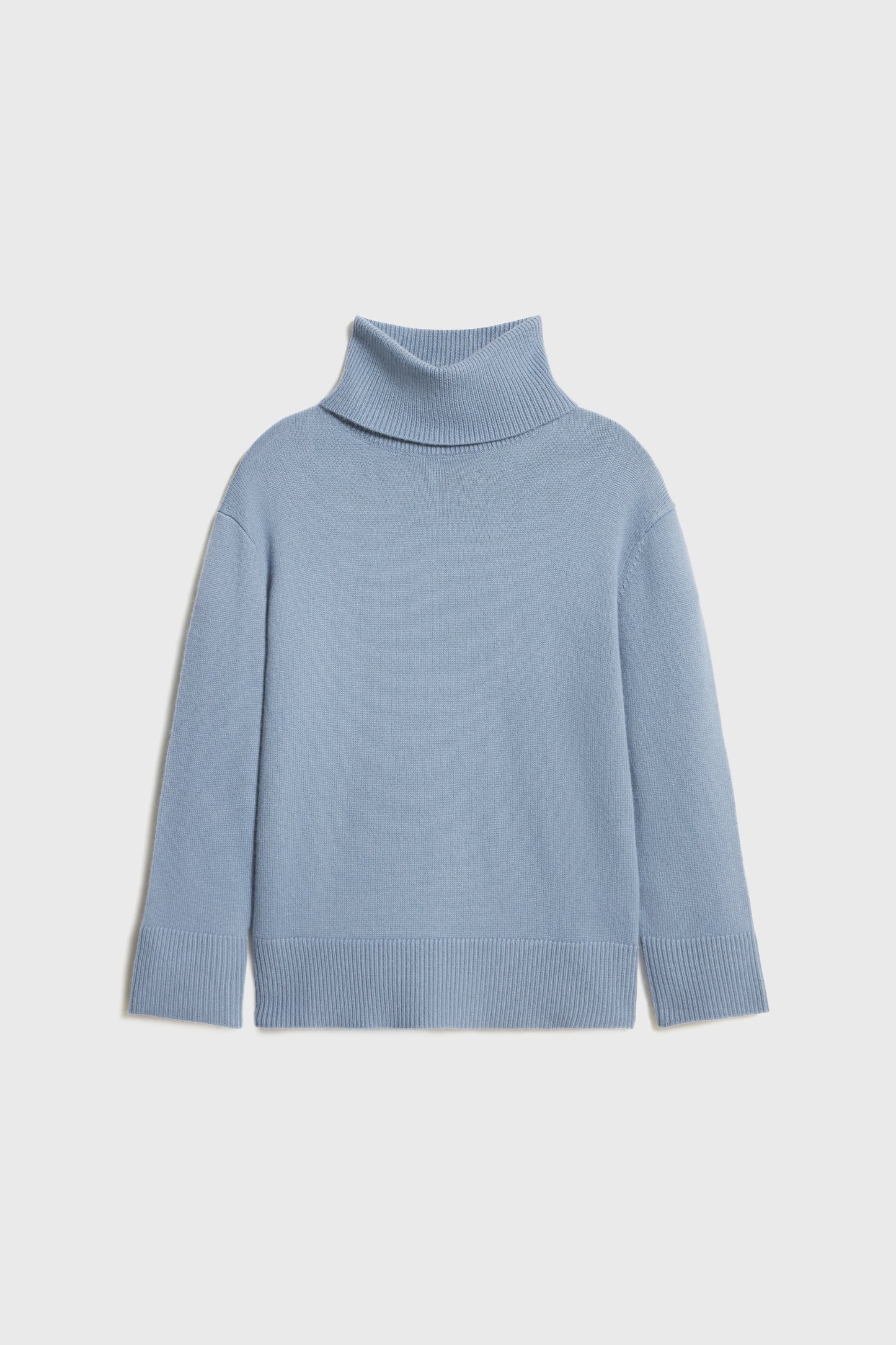 Soft sweater in a knit made from a yarn with angora and wool blend that hugs contours of the body for a regular silhouette. High neck, long sleeves and a straight-cut hem. Ribbing at neckline, cuffs, and hem.
