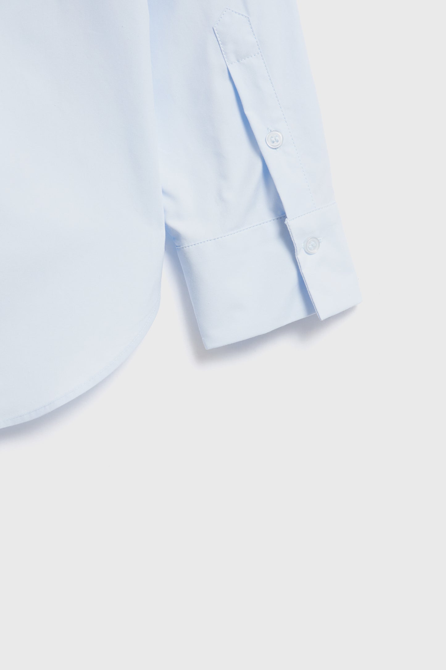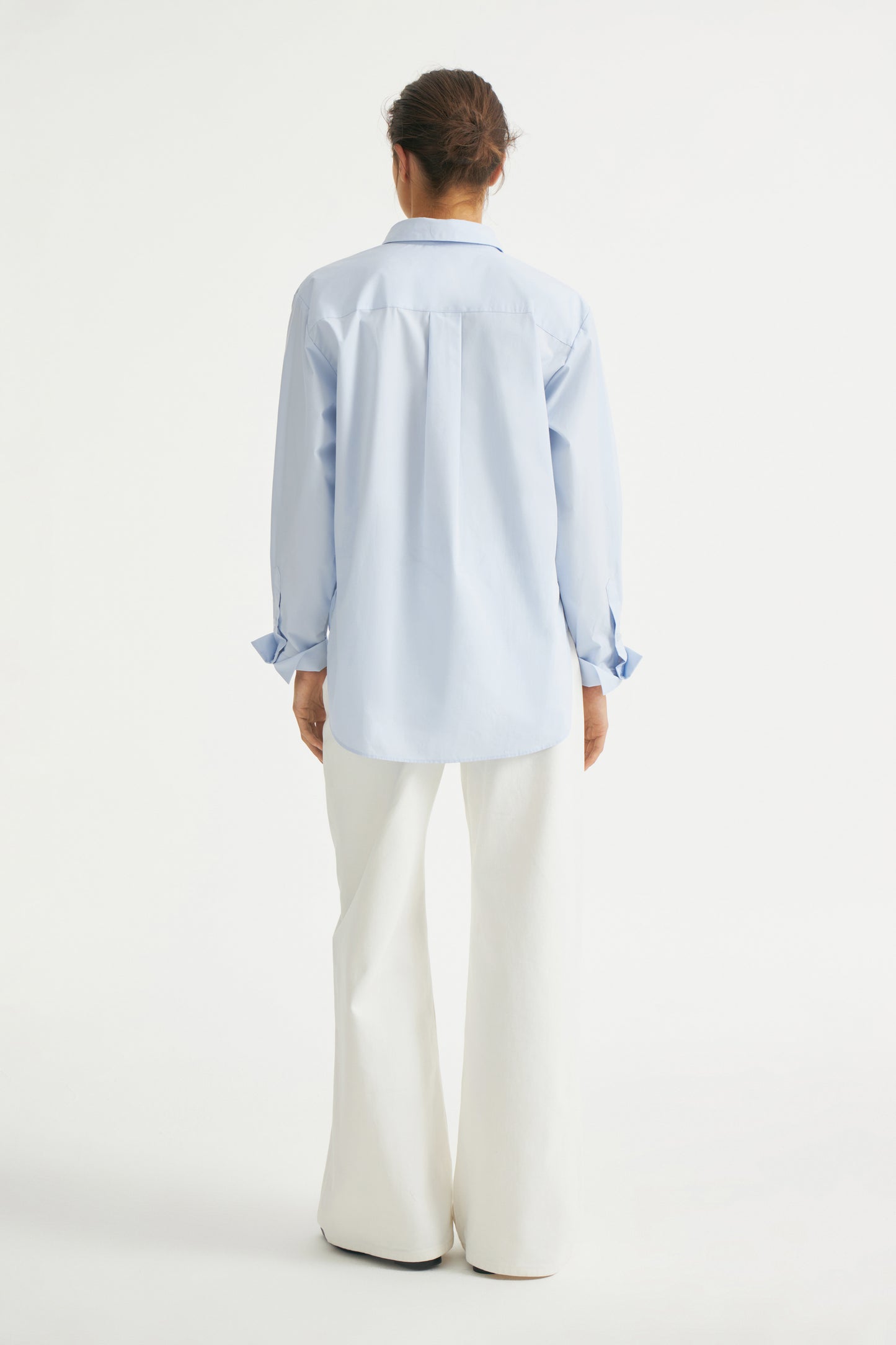 Straight fit shirt made of cotton. Featuring a lapel collar, long sleeves with buttoned cuffs. Gently rounded hem. Pleated detail at the back. Button-up front.