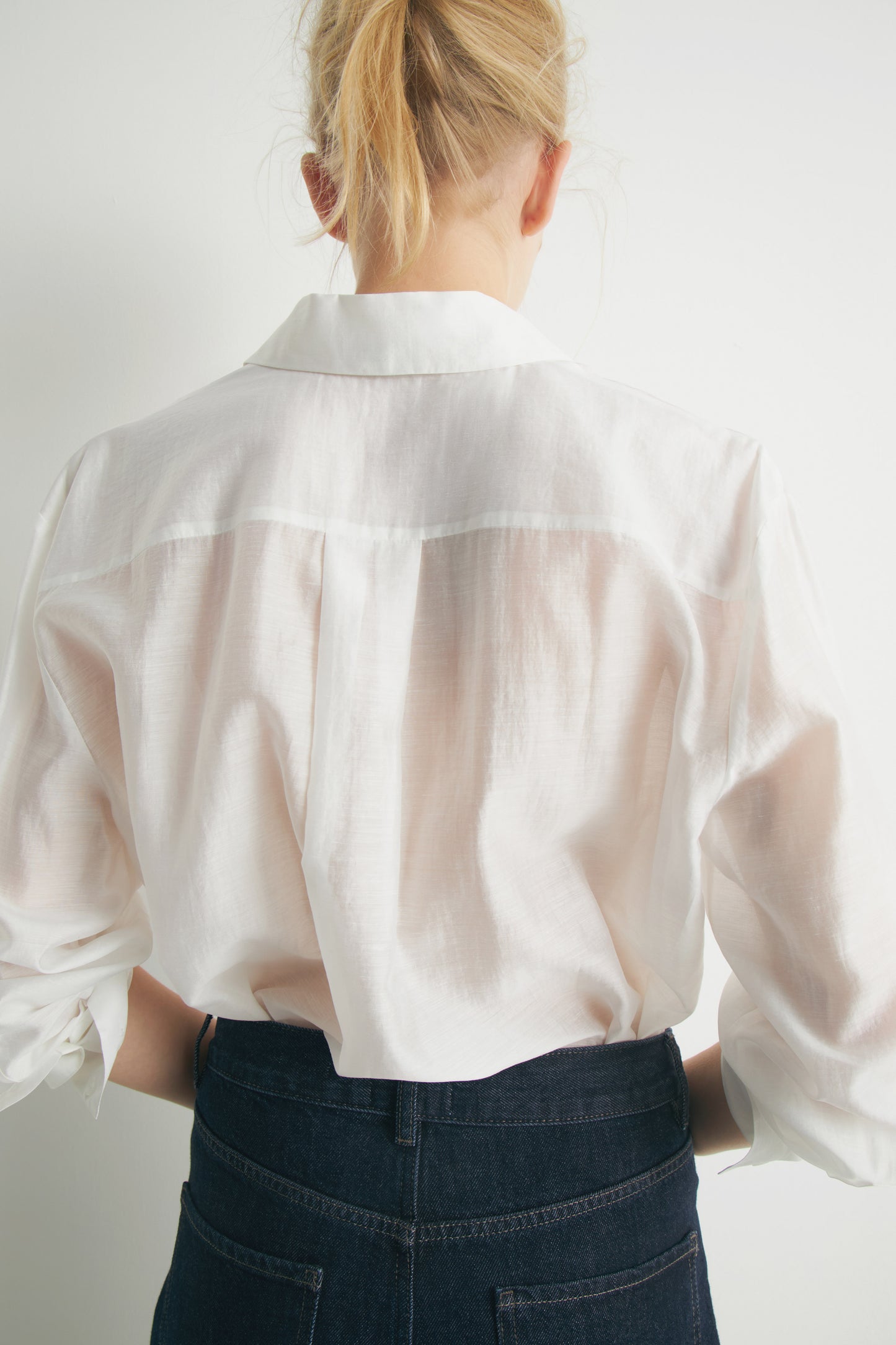 Straight-fit shirt in a sheer lyocell blend. Detailed with a collar and long sleeves with buttoned cuffs. Rounded hem. Button-up front.