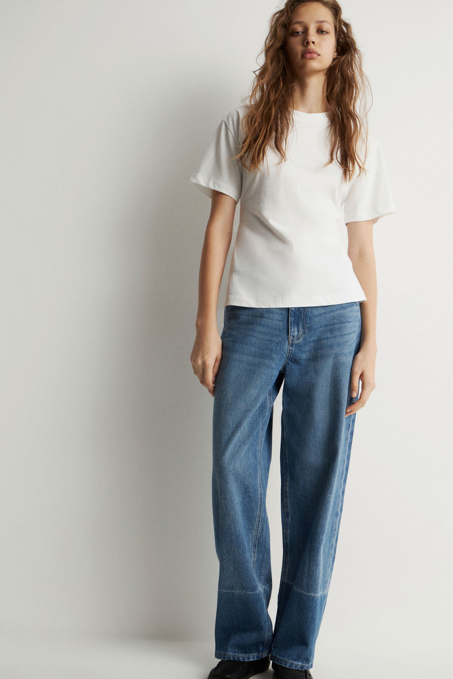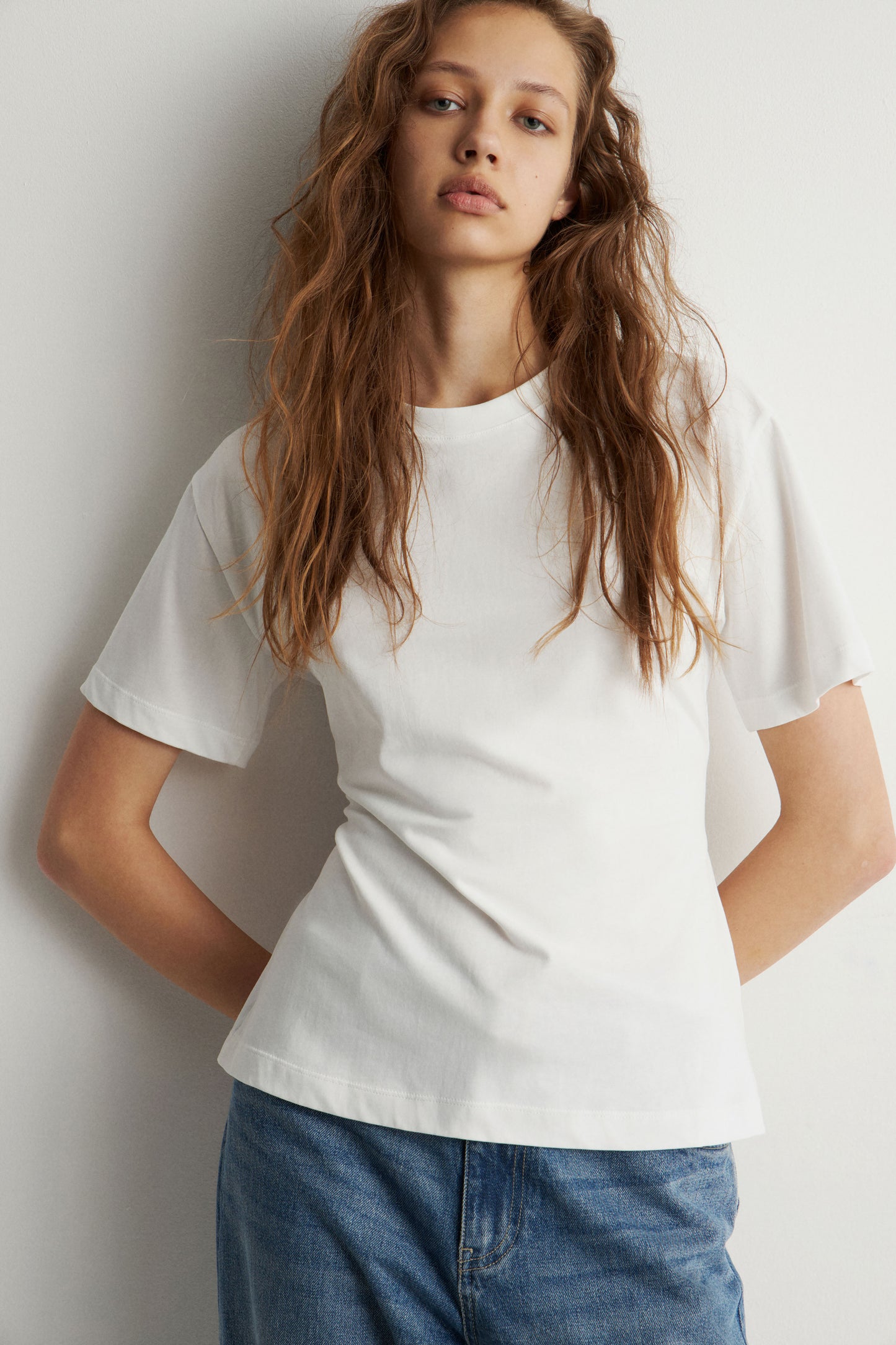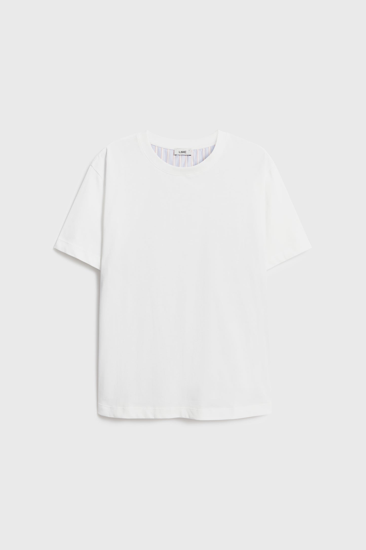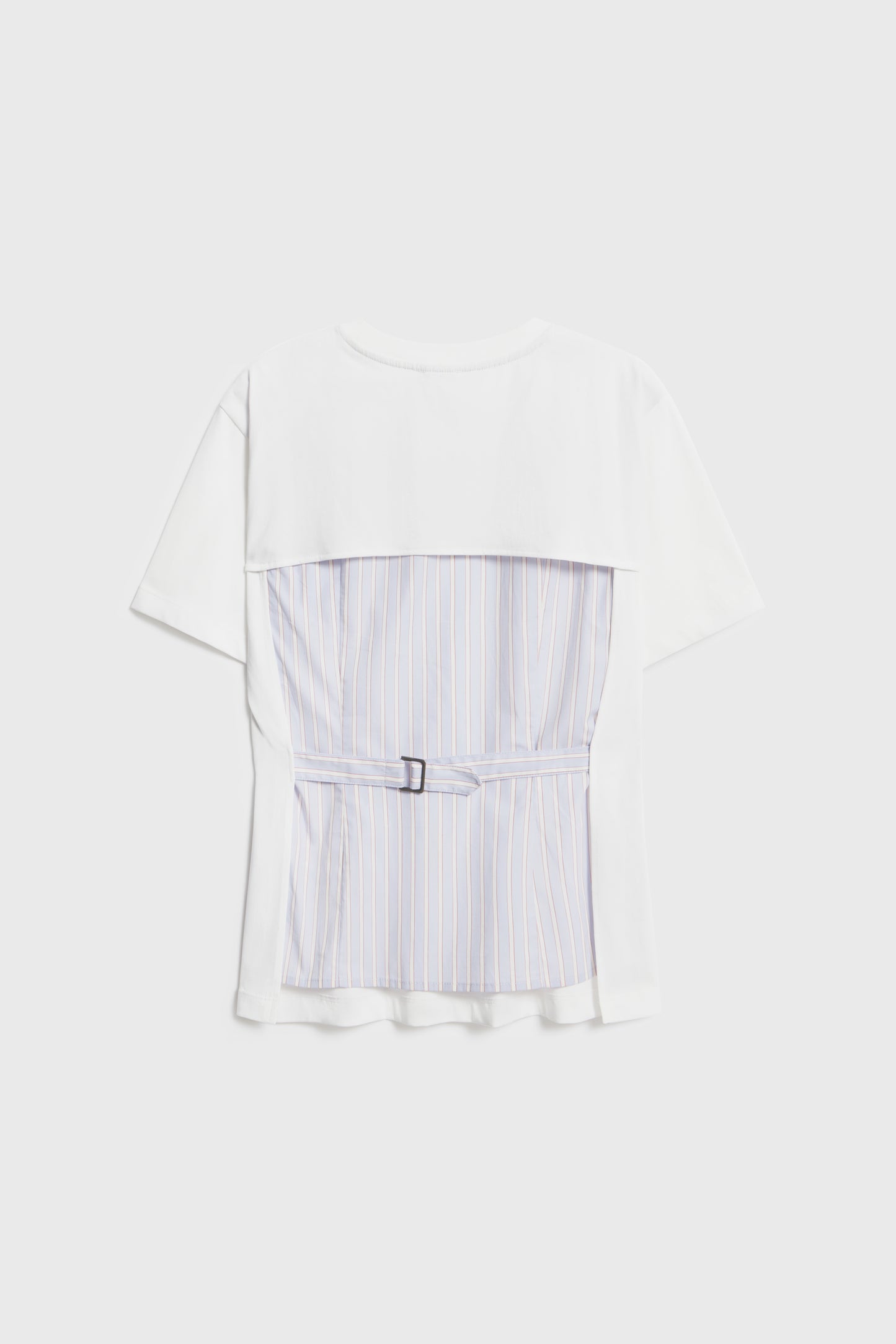 Cotton T-shirt in soft jersey with a round neck and short sleeves. Featuring a contrast trimmed detail at the back with adjustable strap.
