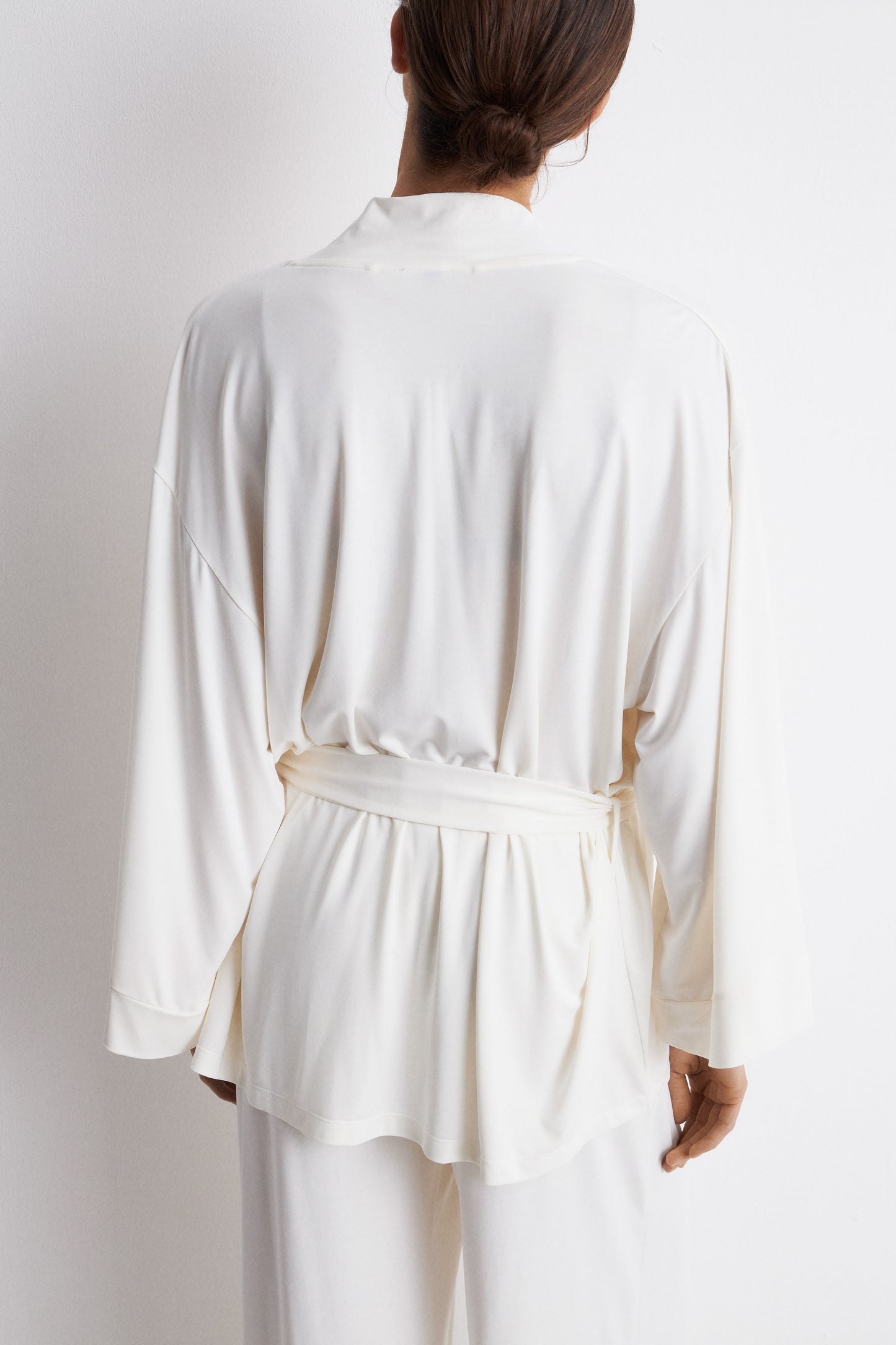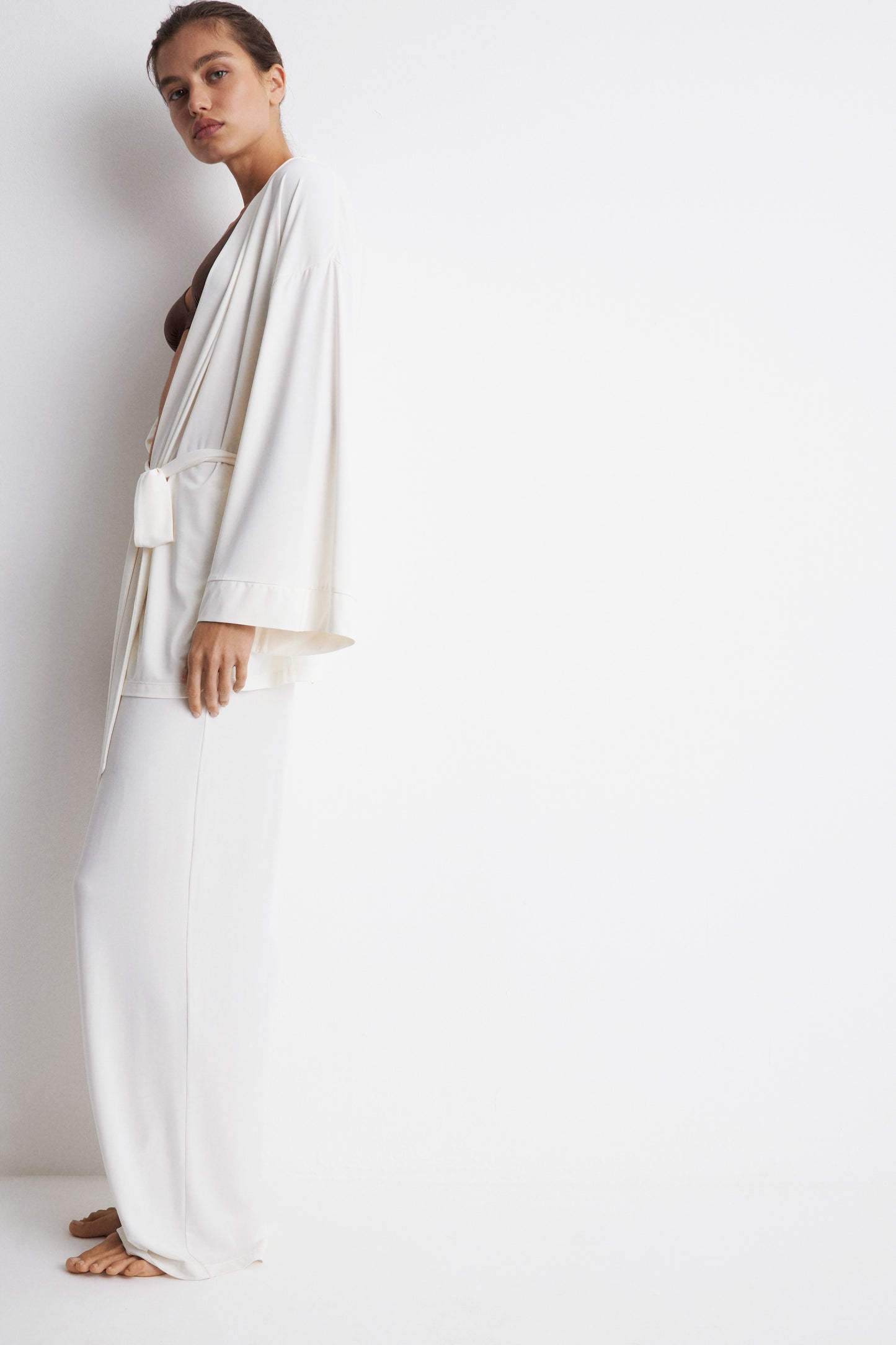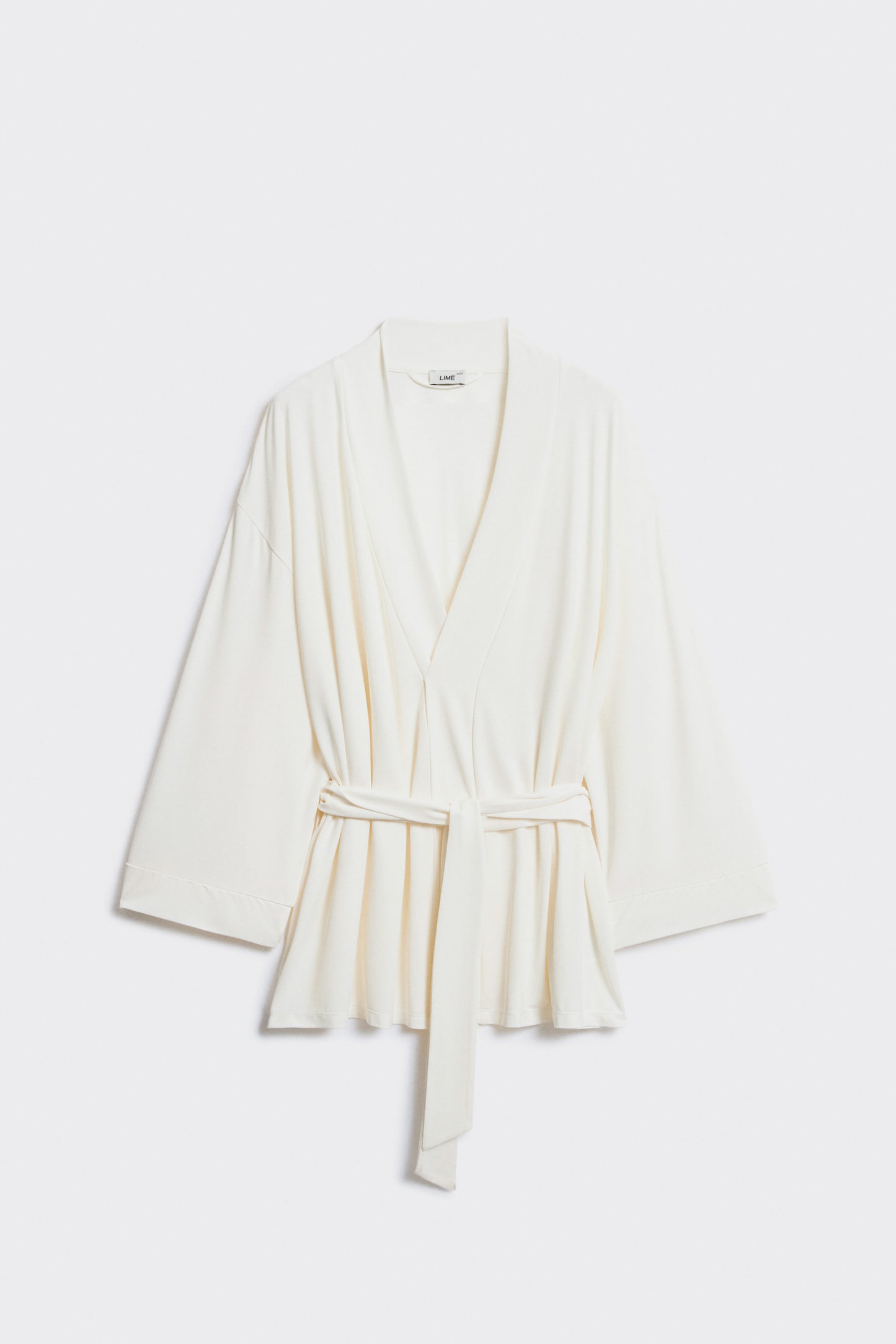 Loose-fit made from a viscose blend jersey. V-neckline, long wide sleeves, a wrapover front with a detachable belt.