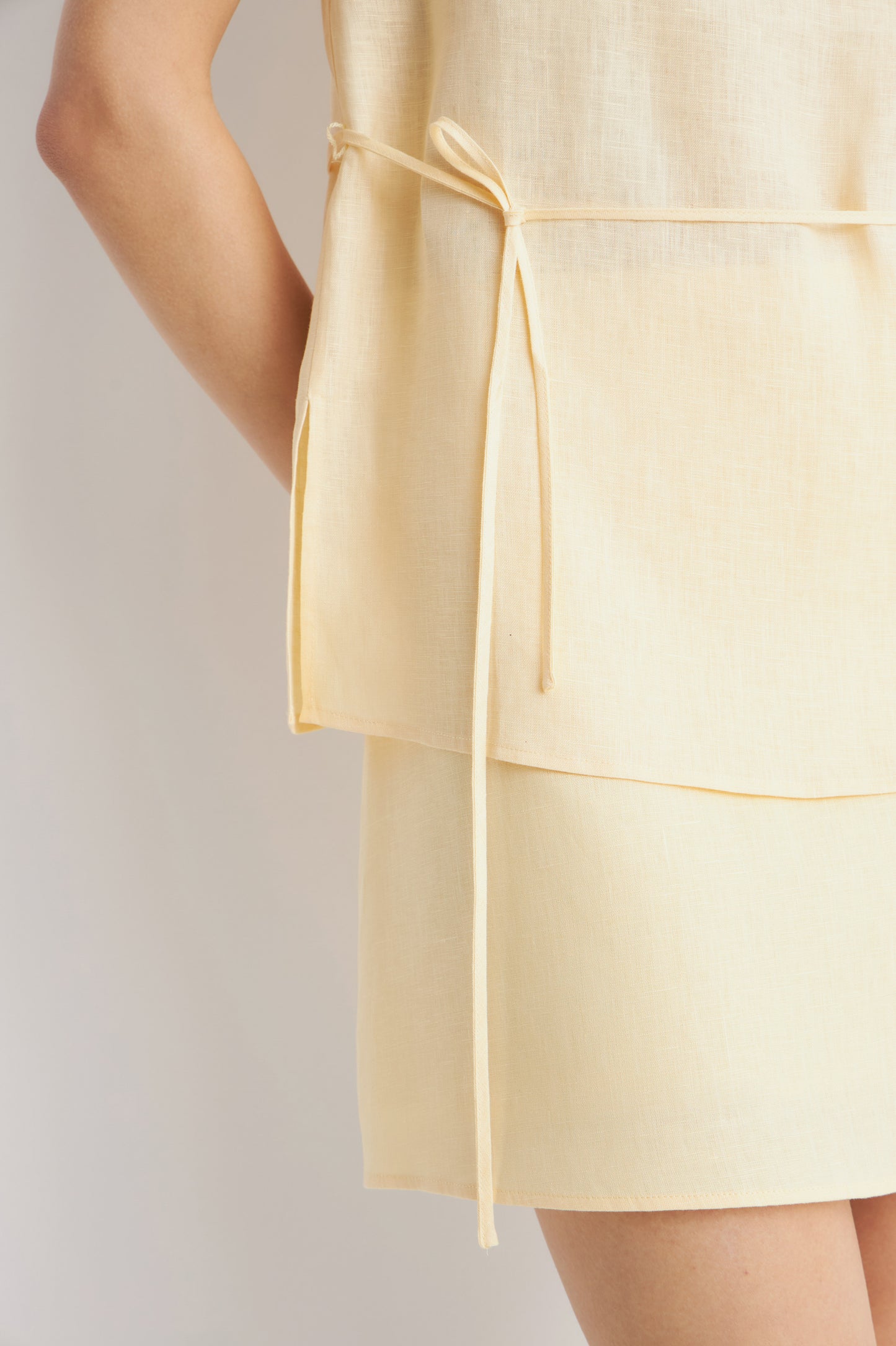 Fitted top with a boat neckline, side slits and thin belt. It's crafted from 100% linen.
