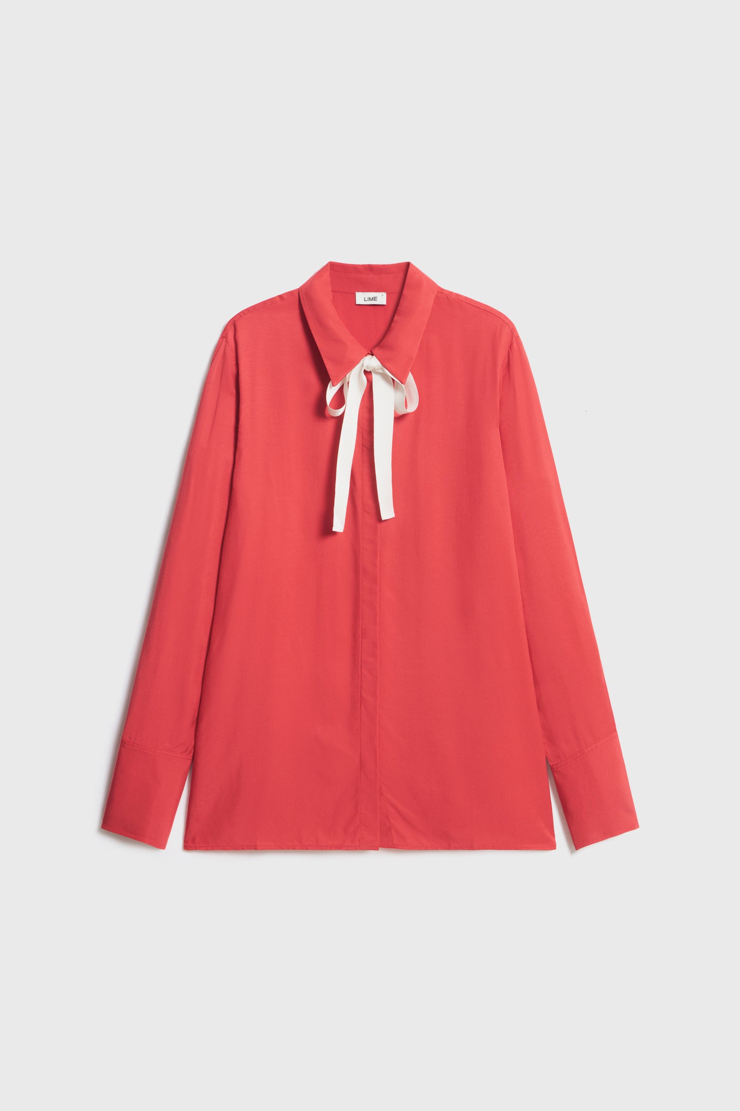 Regular-fit shirt in an airy, woven viscose. Collar, hidden buttons at front, and contrast bow. Long sleeves with covered buttons at cuffs. Straight-cut hem with a slit at sides.