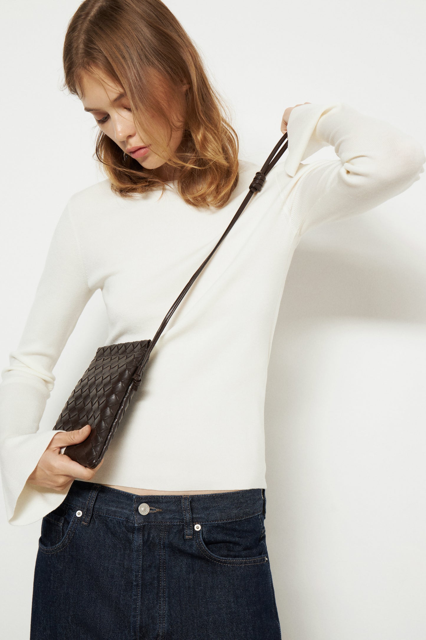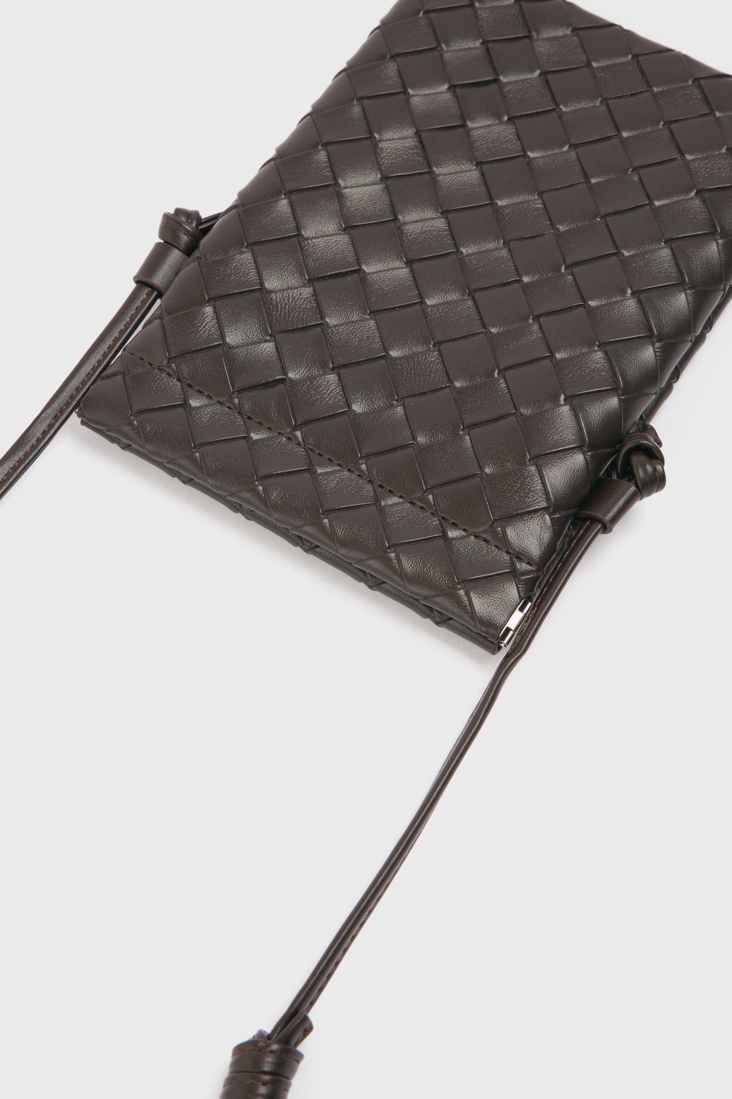 Small city bag in braided straps with a long shoulder strap. No fastener. Lined. Size: 13,5 х 1 х 20 cm (length х width х height).