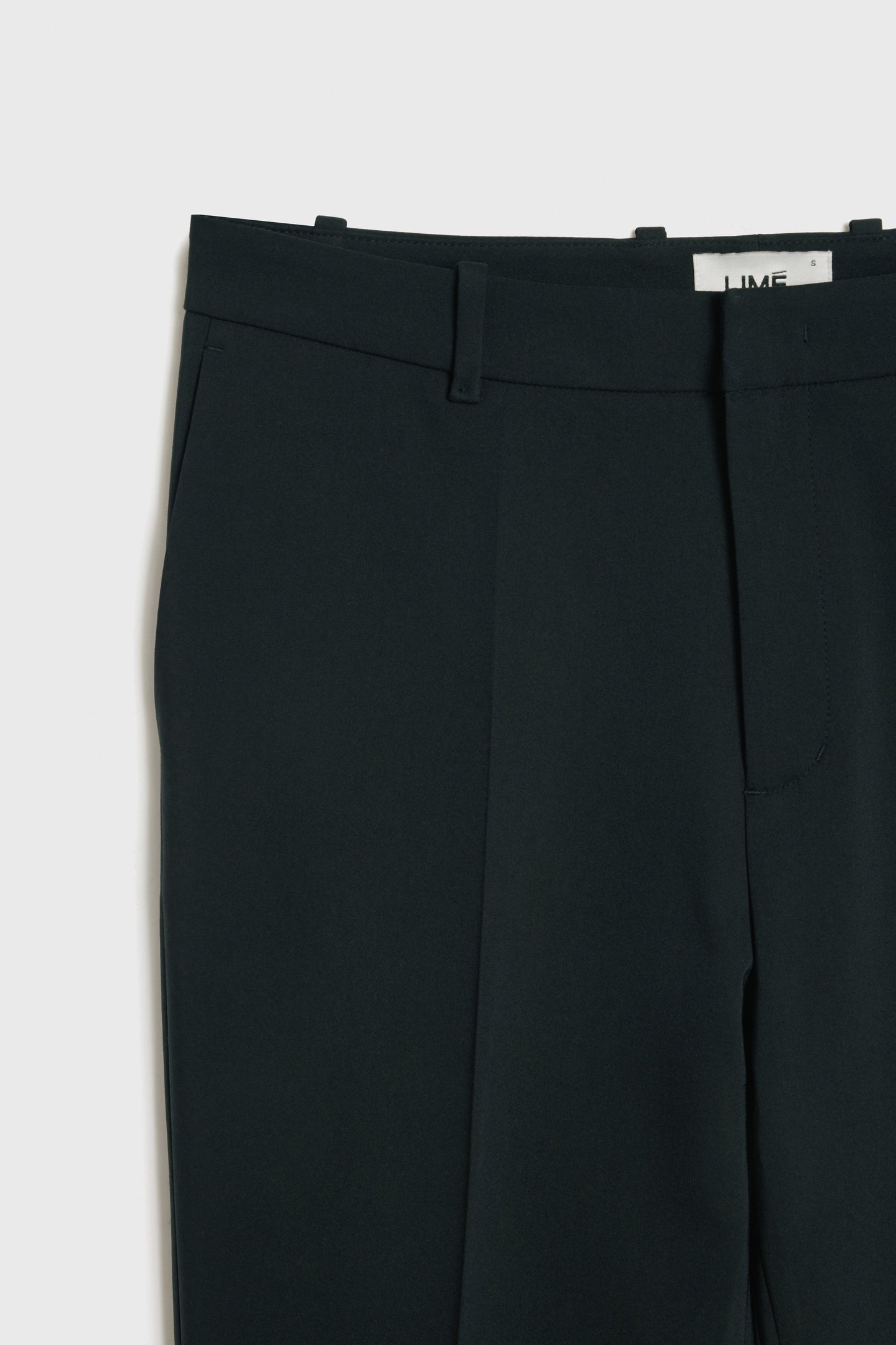 Carrot-fit trousers with creases. Featuring front pockets, fake welt pockets at the back. Zip, inner button and metal hook fastening.