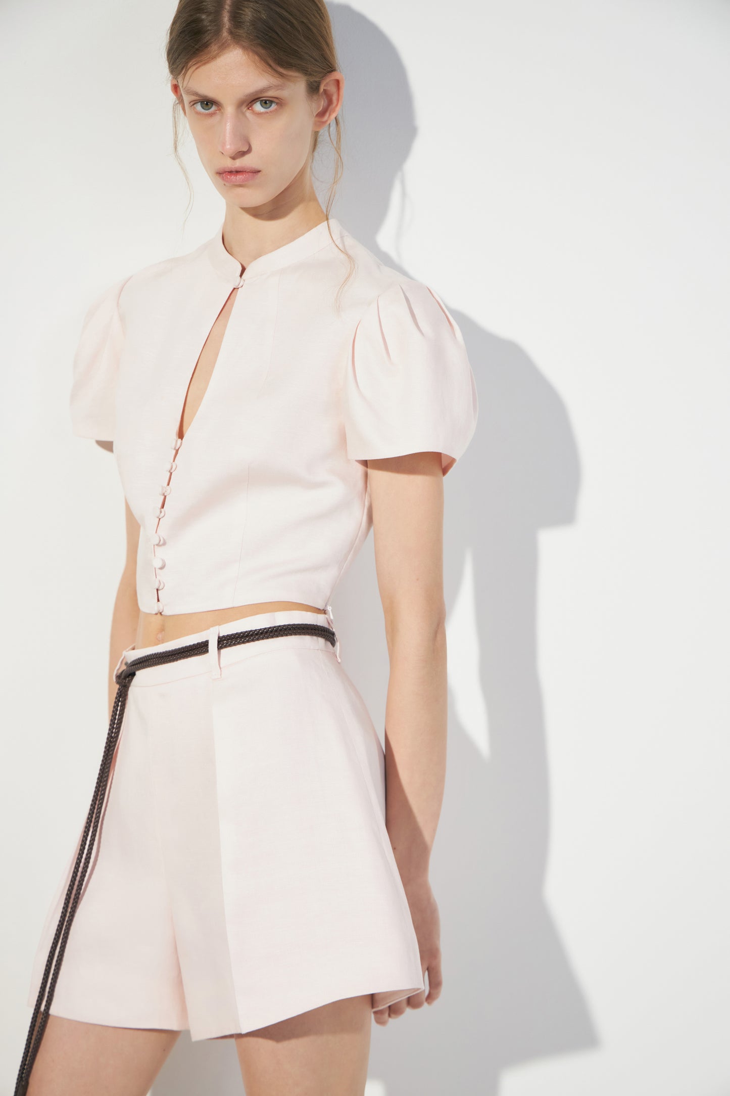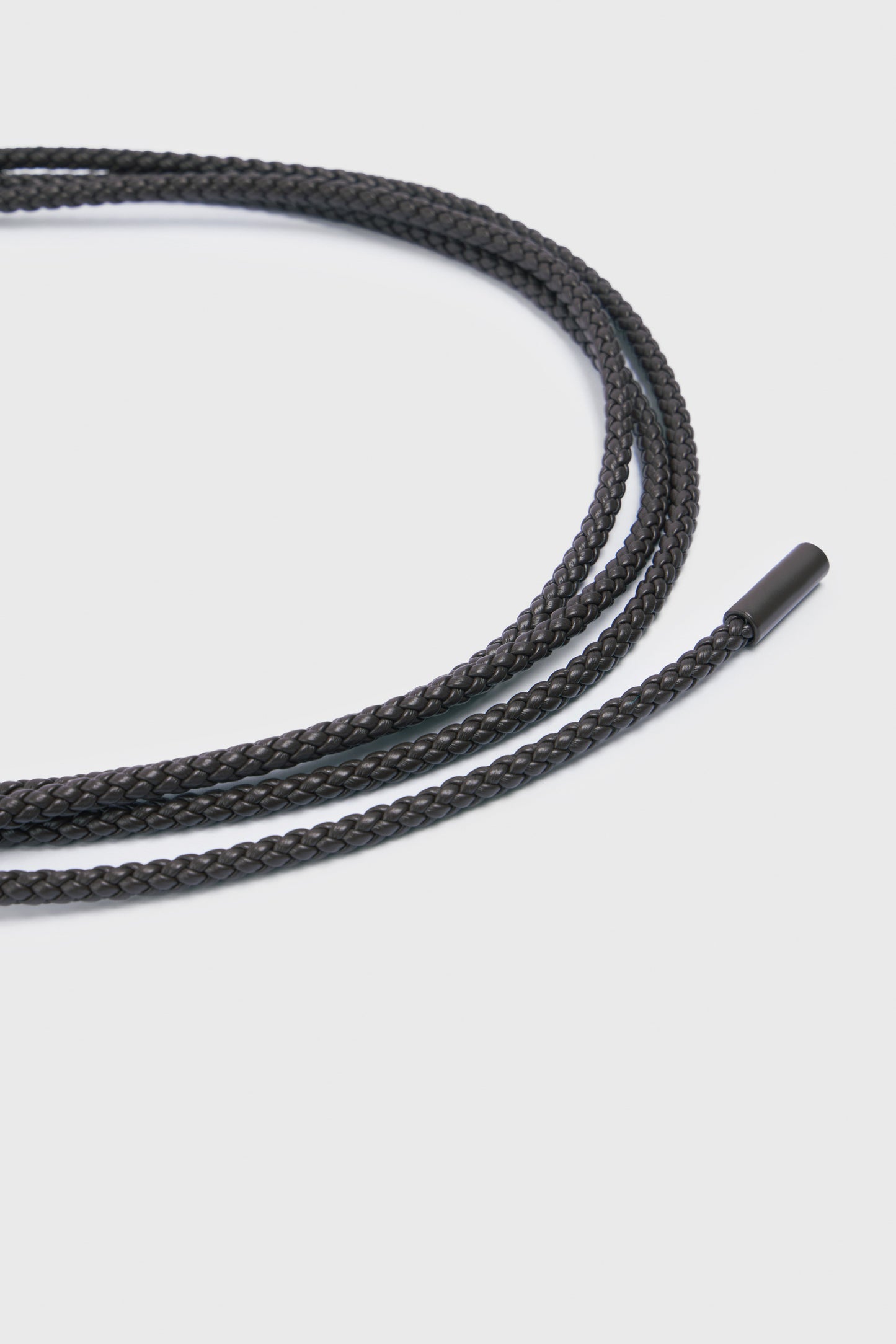Braided faux leather belt with metal details. This corded belt fastens with a simple knot, so it can be styled at the waist or hips. Tie closure. ONE SIZE: 255 x 0.6 cm