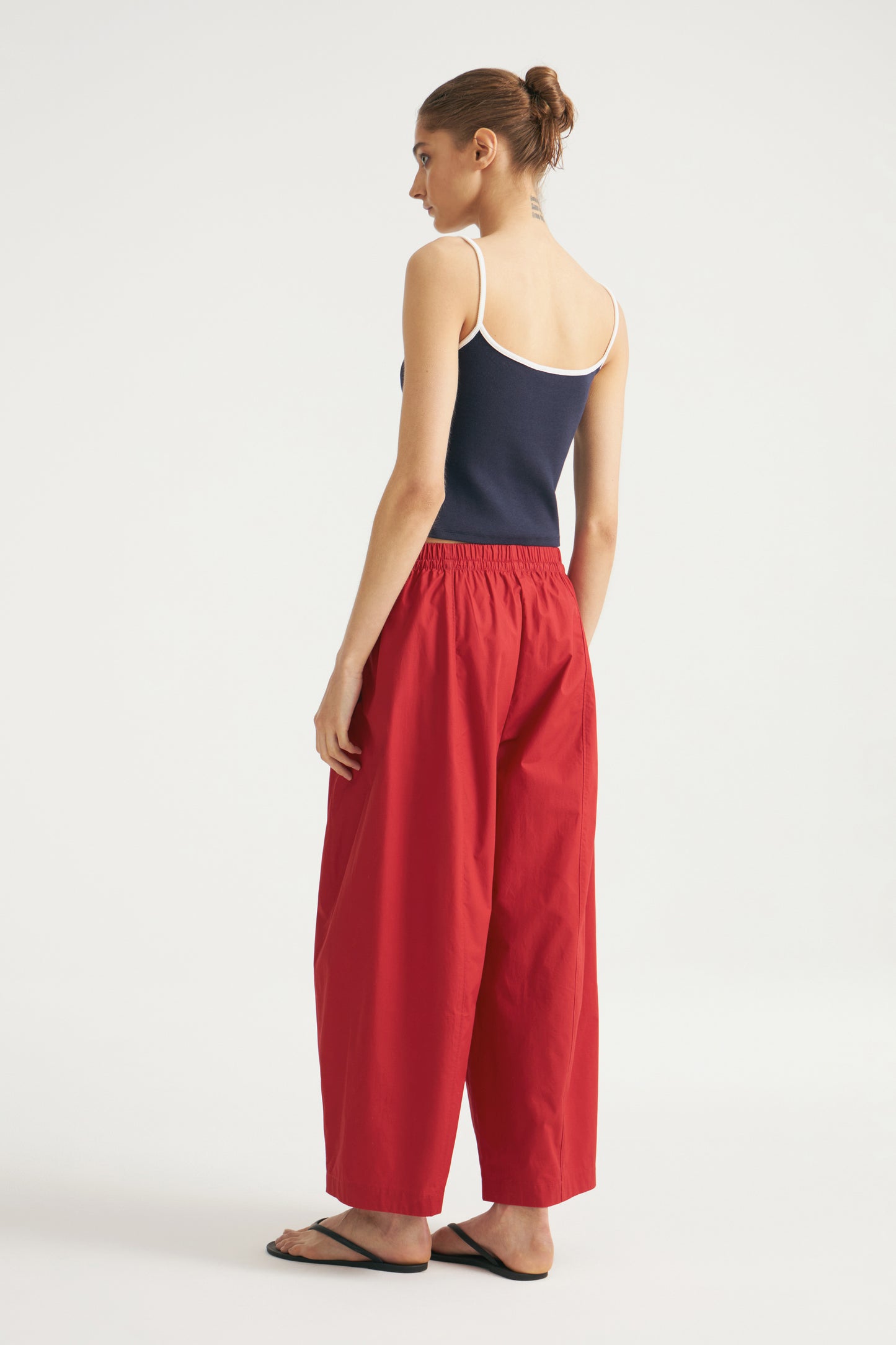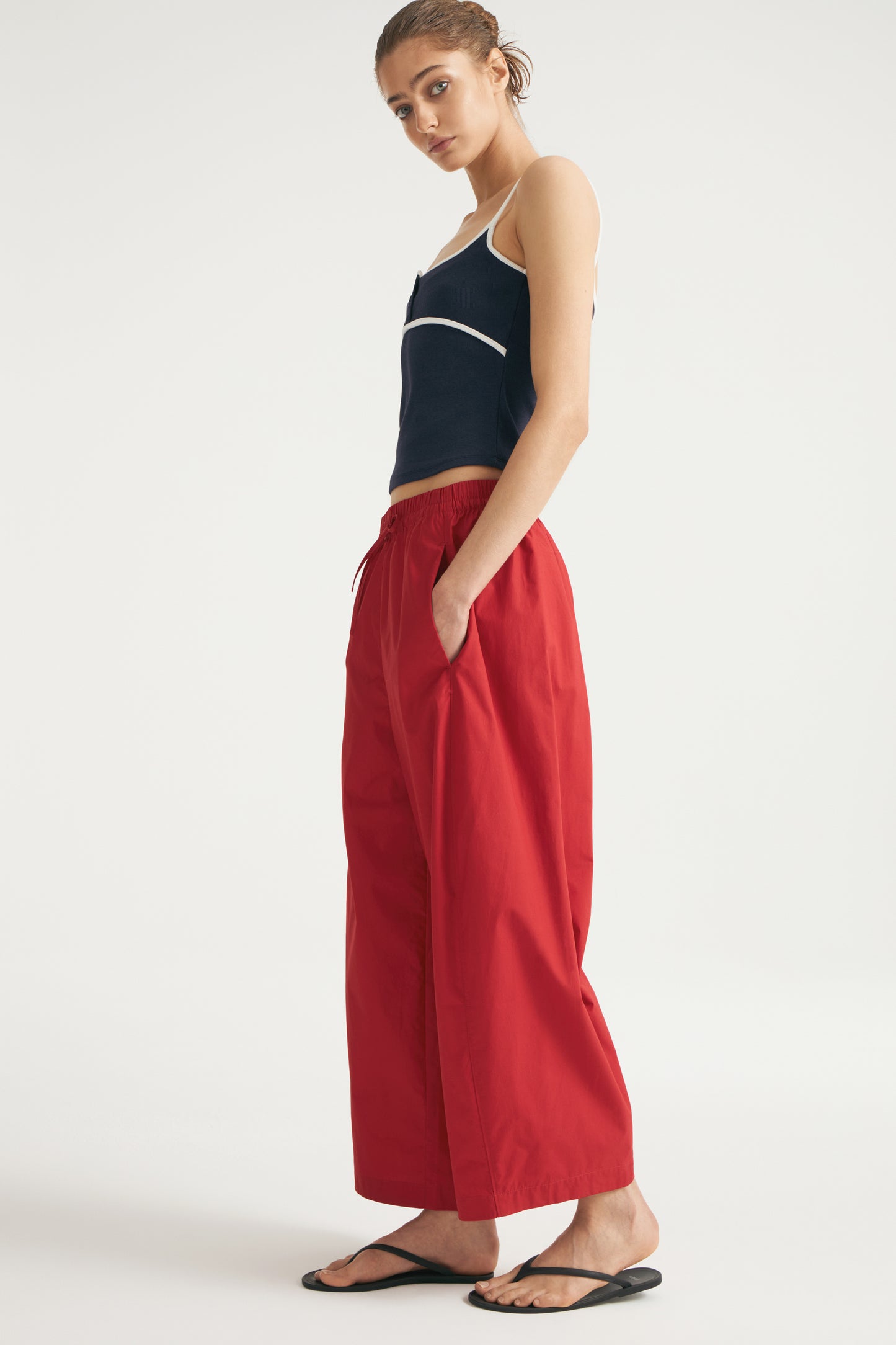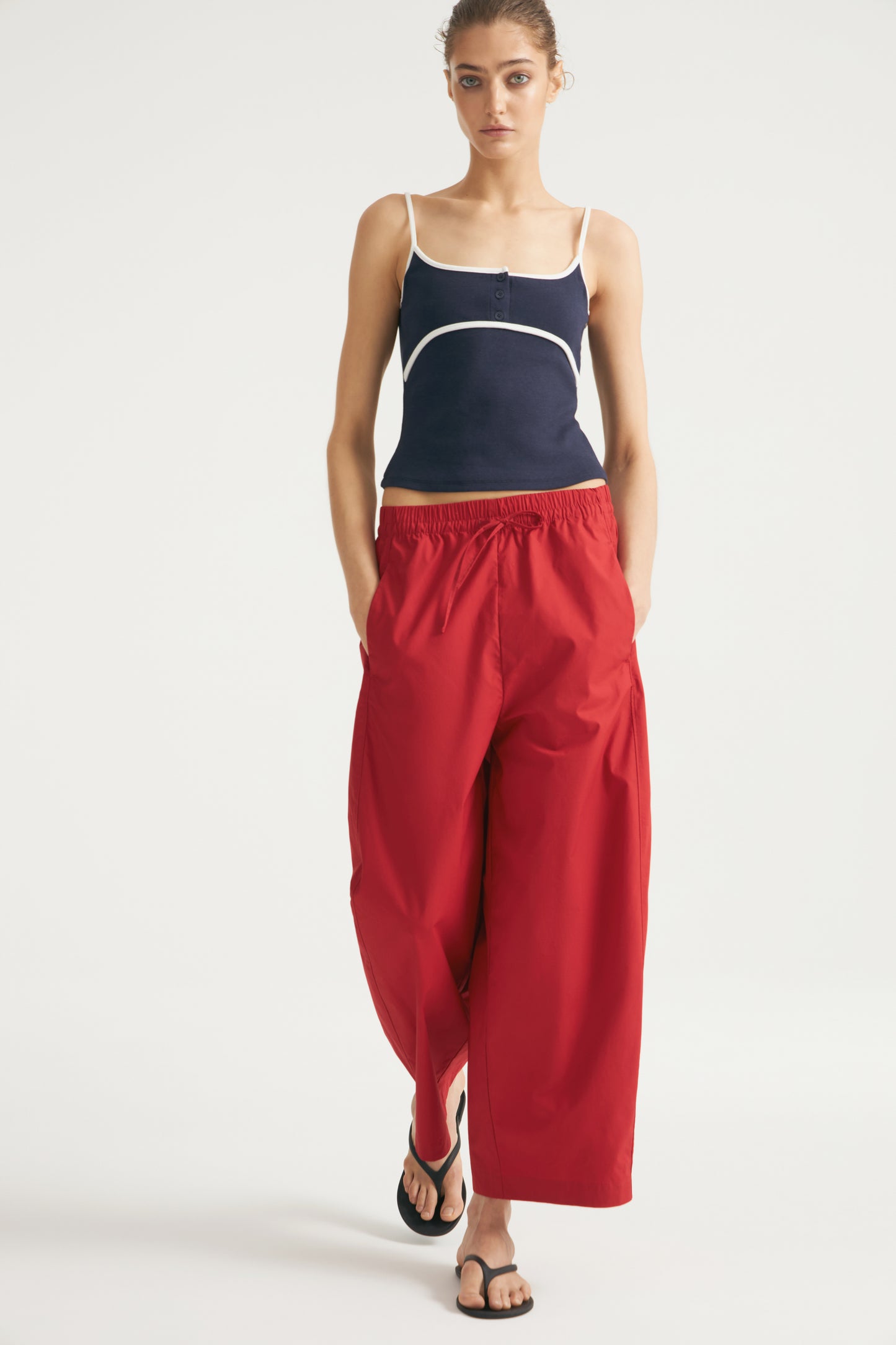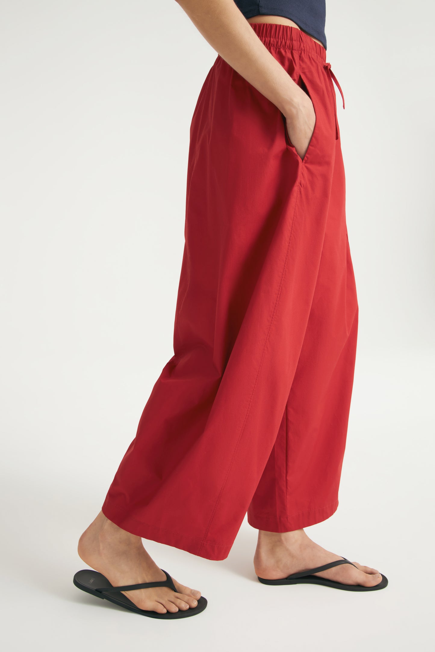 Extra-loose fit from waist to hip and extra-baggy fit from thigh to hem. These trousers feature an elasticated, drawstring waist and diagonal side pockets.