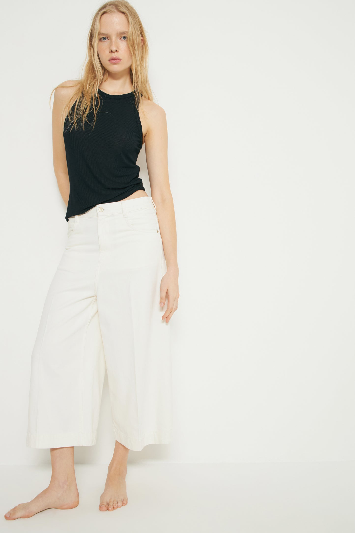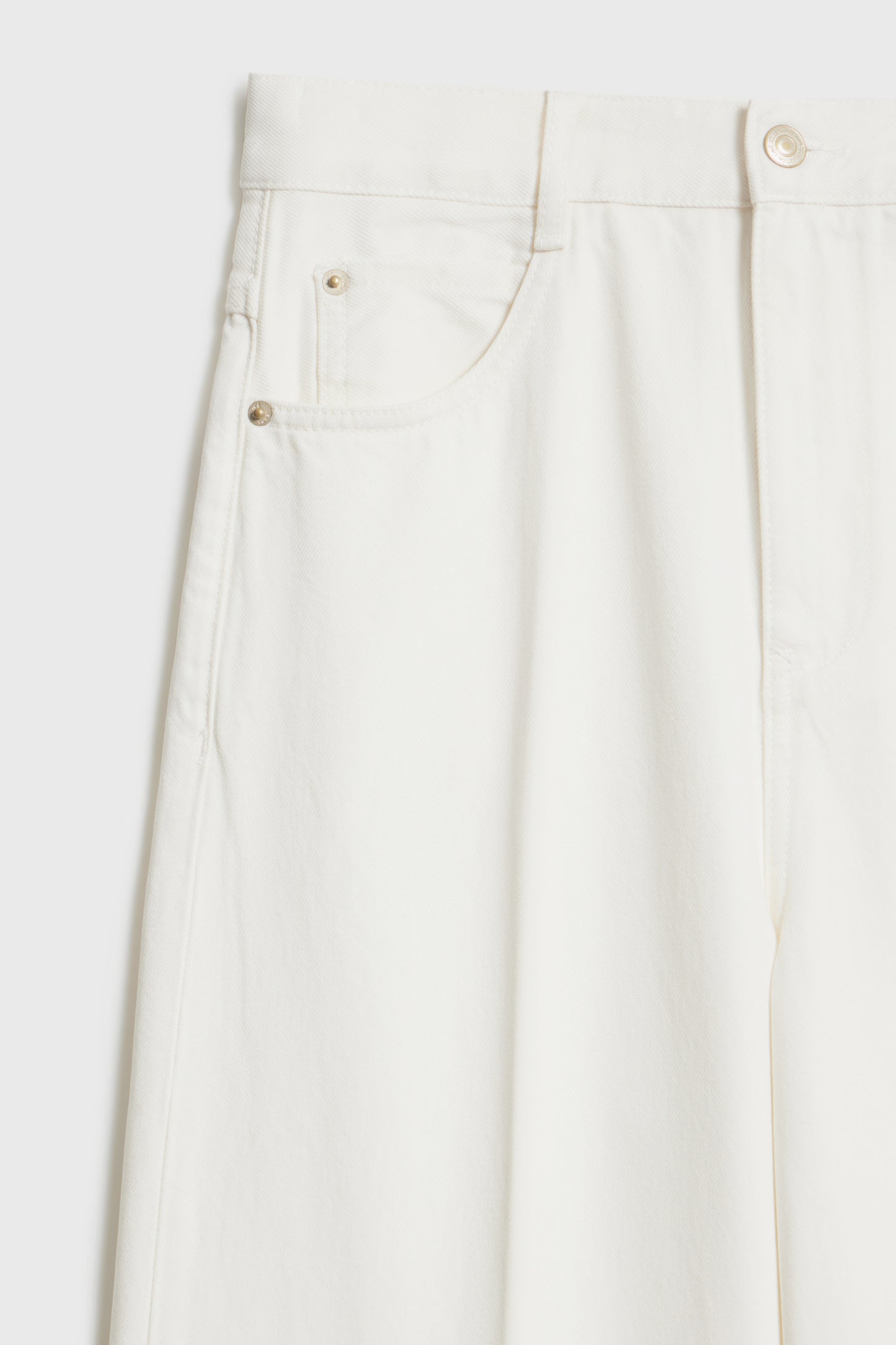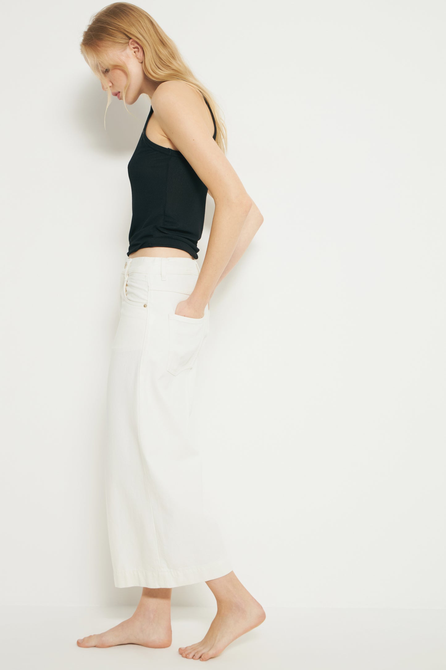 Bermuda shorts in soft denim made from a lyocell and cotton blend have a knee-length cut. Crease details down the front and back. Styled with a five-pocket design. Front zip fly and metal button fastening.
