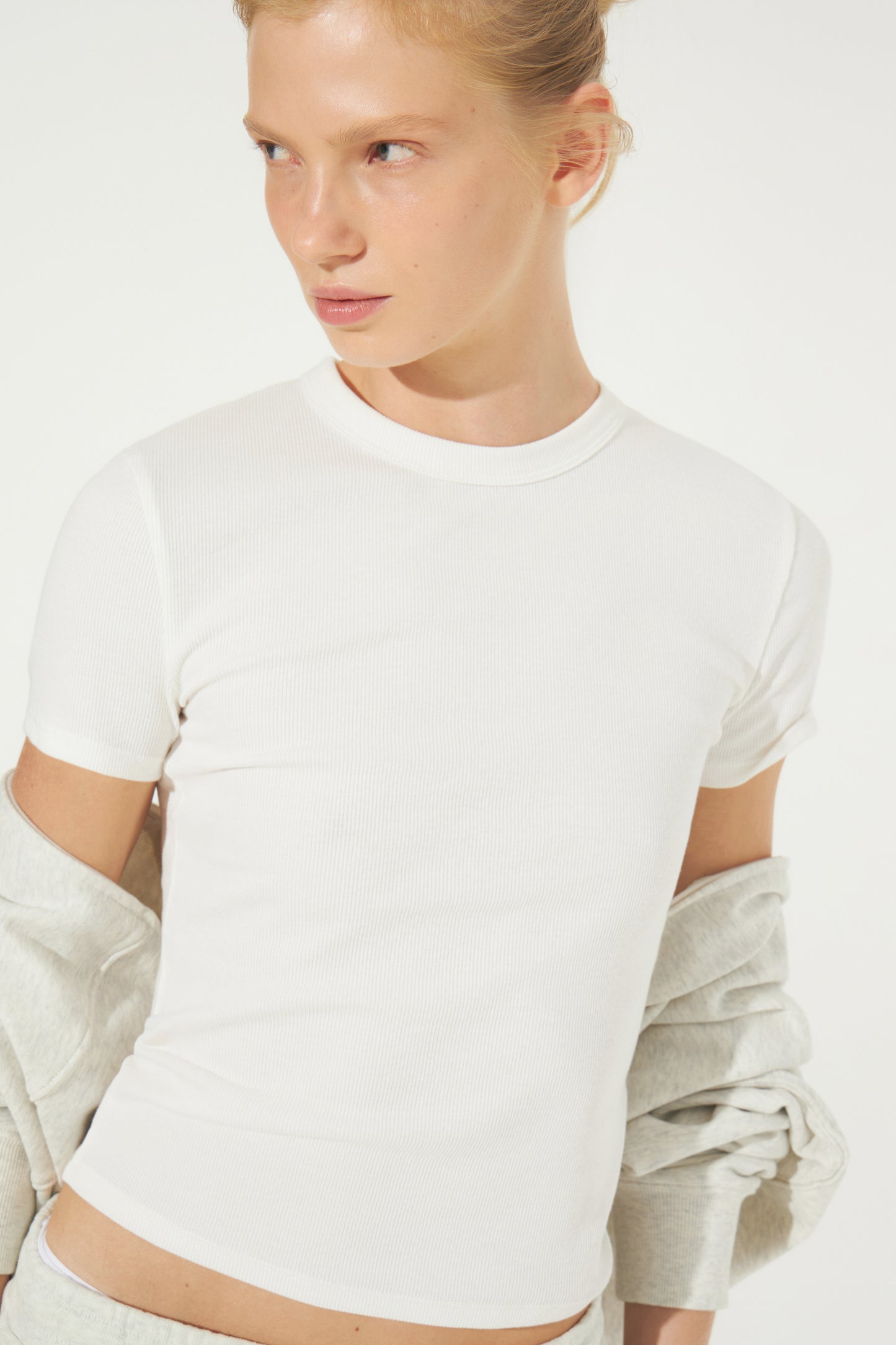 Fitted T-shirt made of stretch cotton. Round neck and short sleeves.