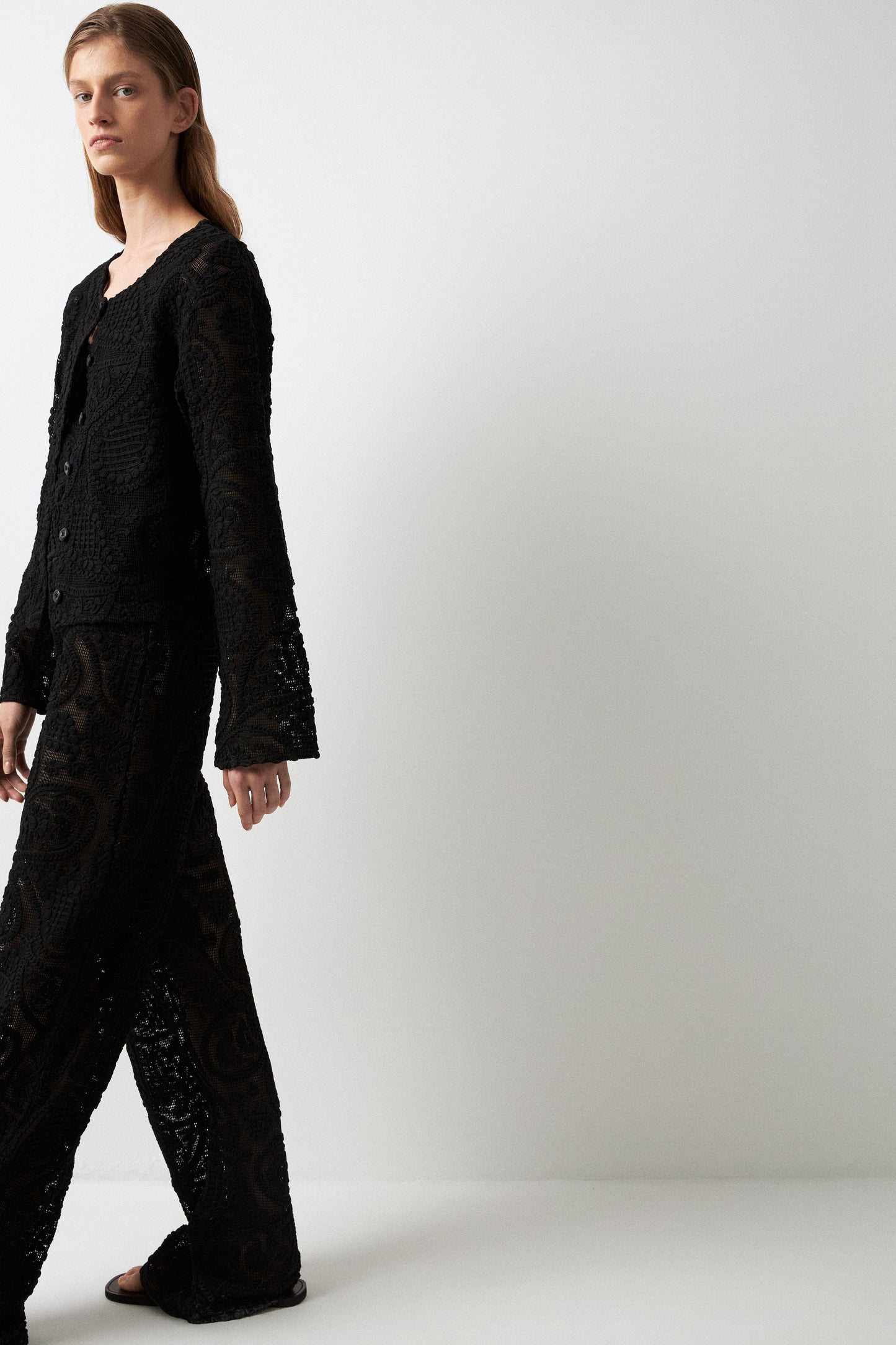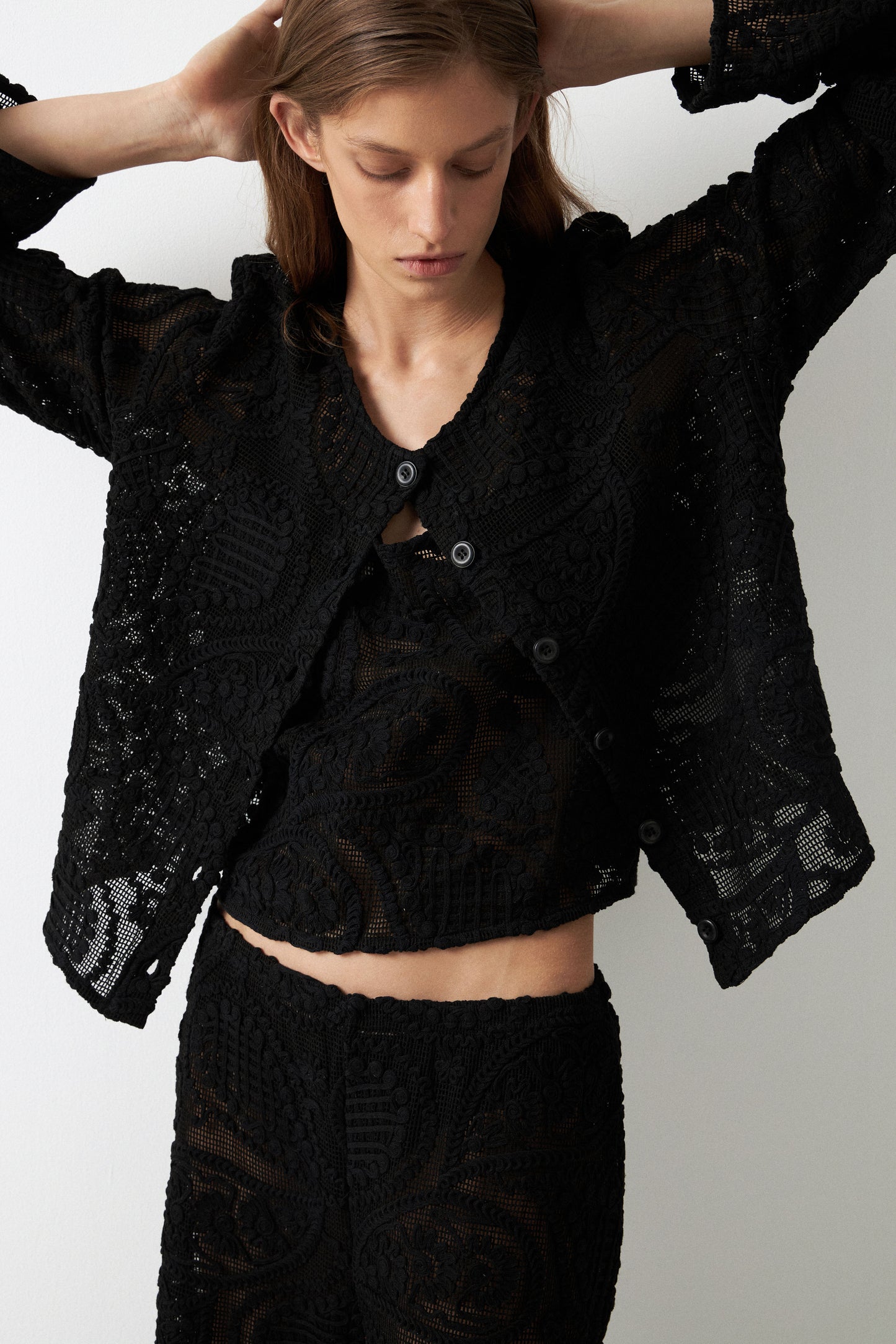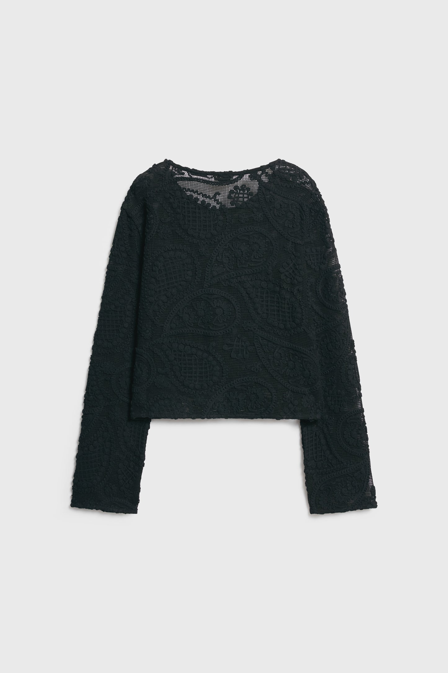 CROCHET-LOOK LONG-SLEEVED T-SHIRT