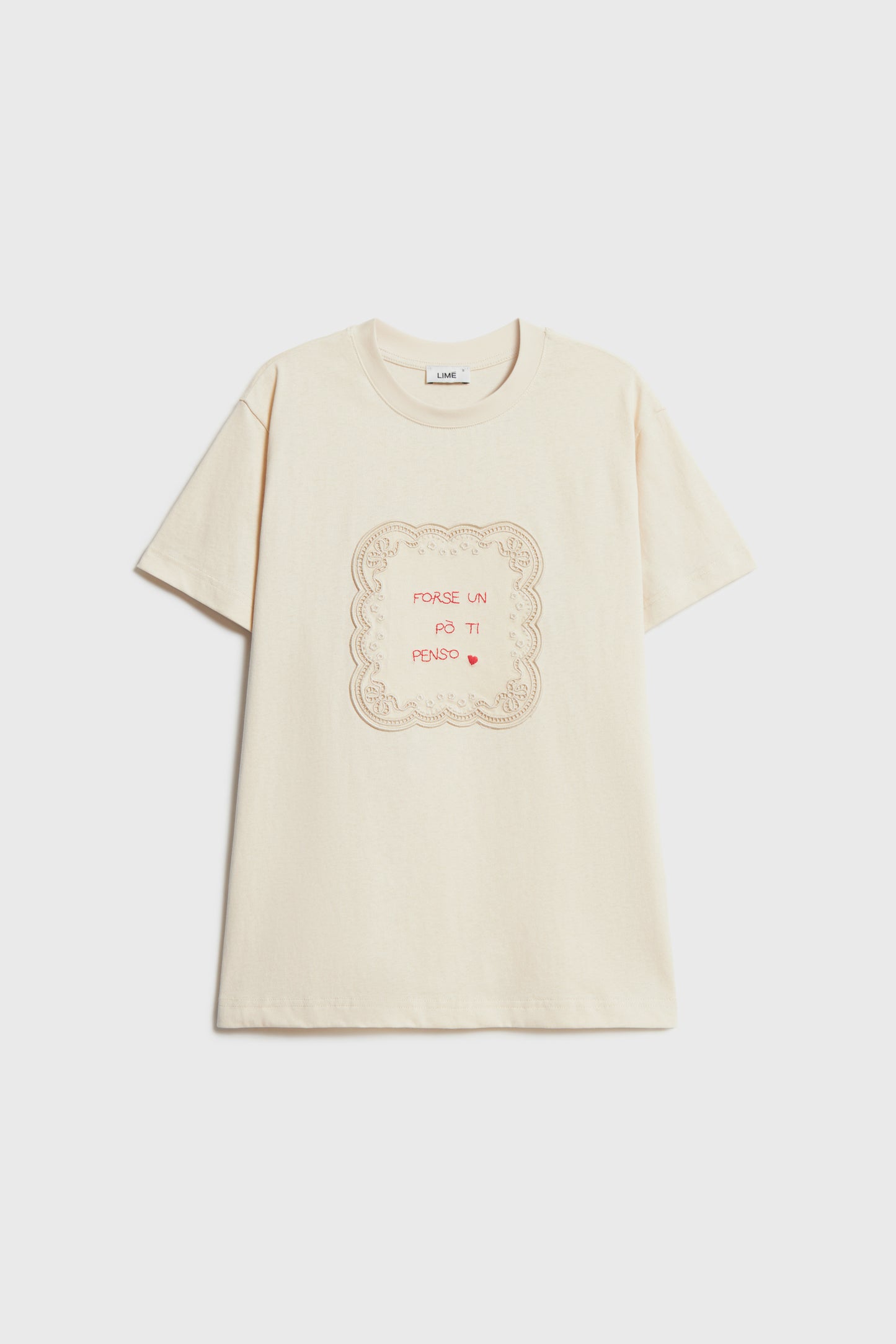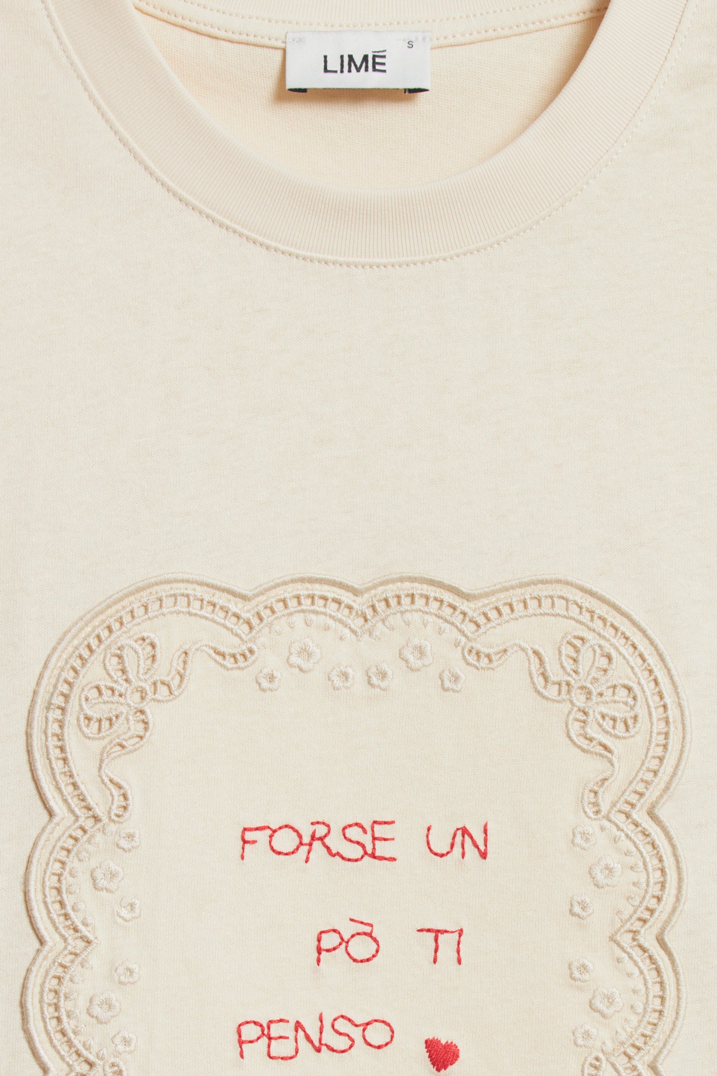 T-shirt in cotton jersey. Round neckline, short sleeves, and a straight-cut hem. Decorated on the chest with an embroidered patch appliqué.