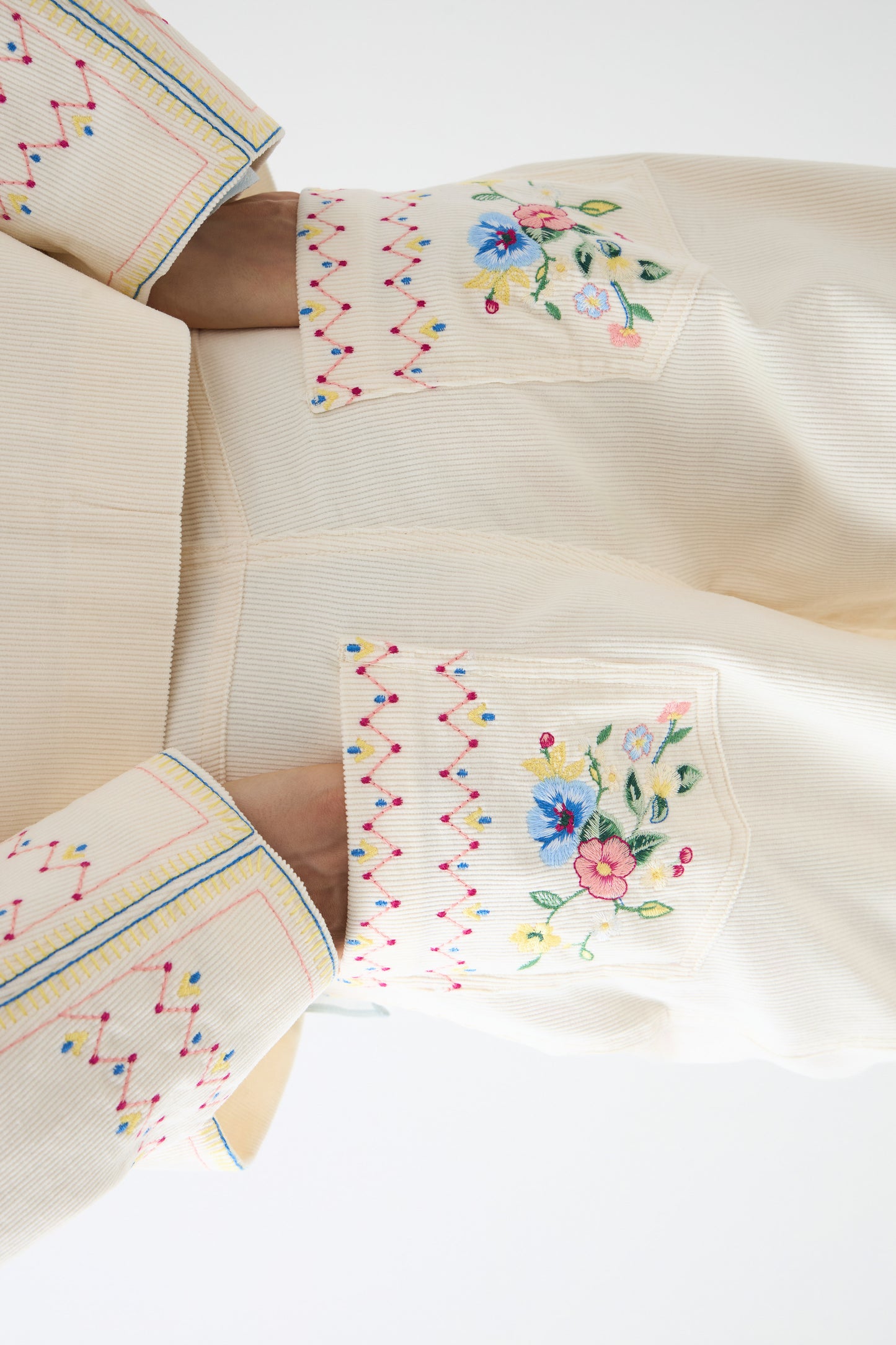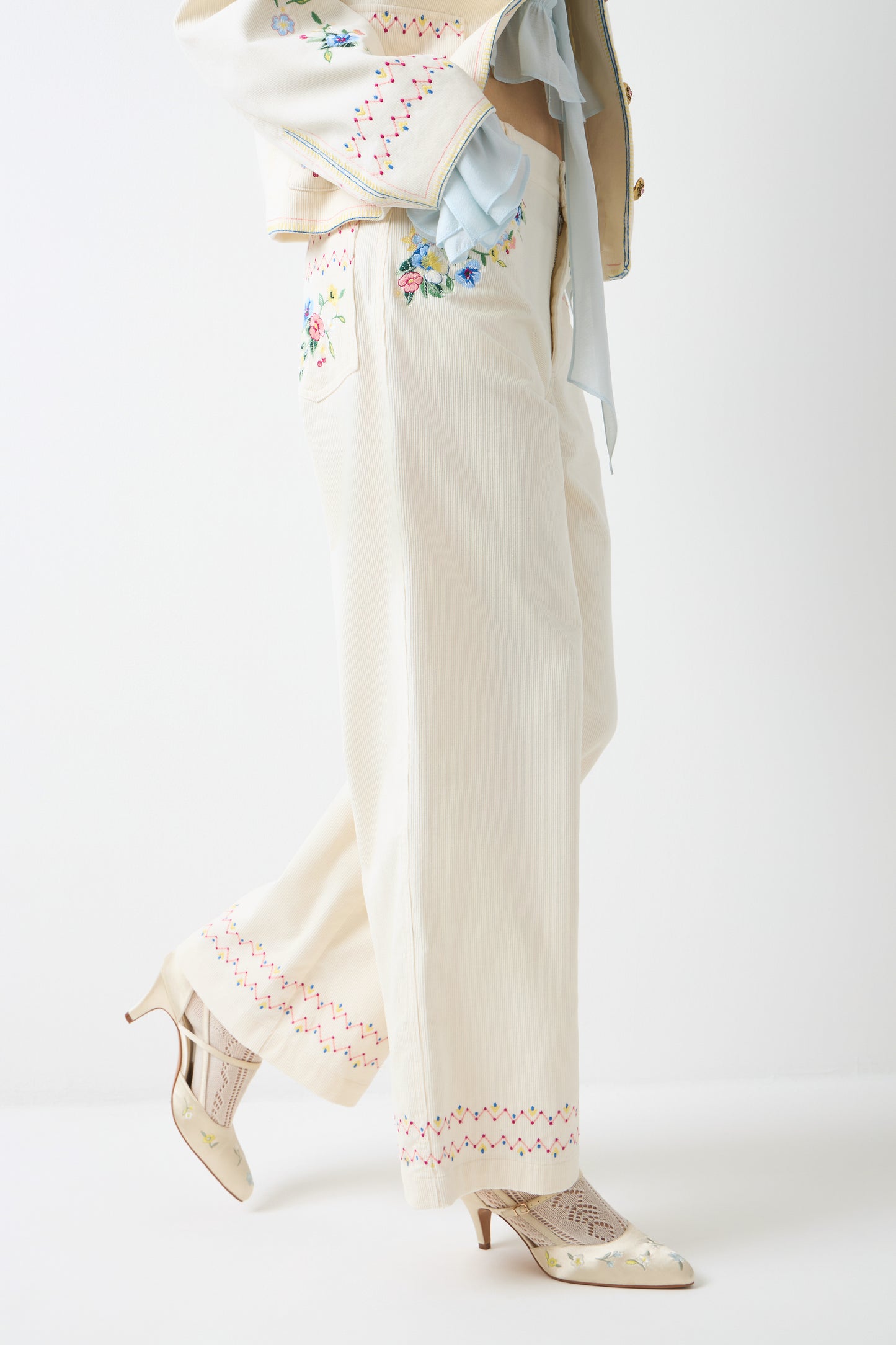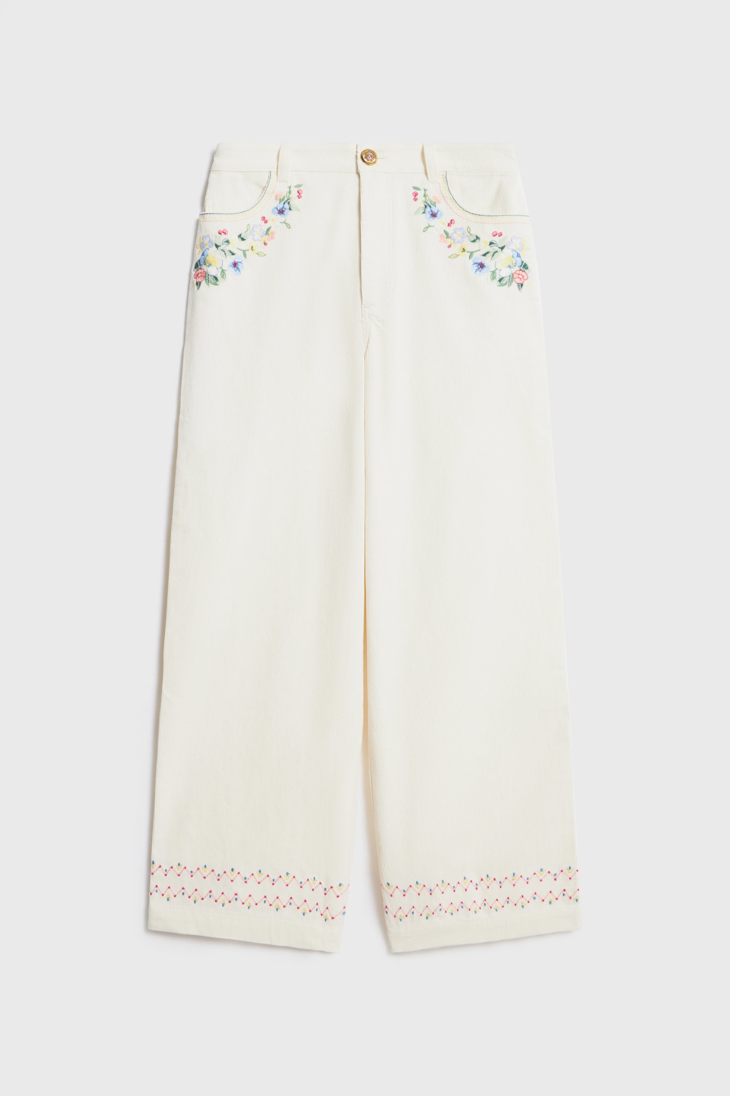 EMBROIDERY-DETAIL CORDUROY TROUSERS
