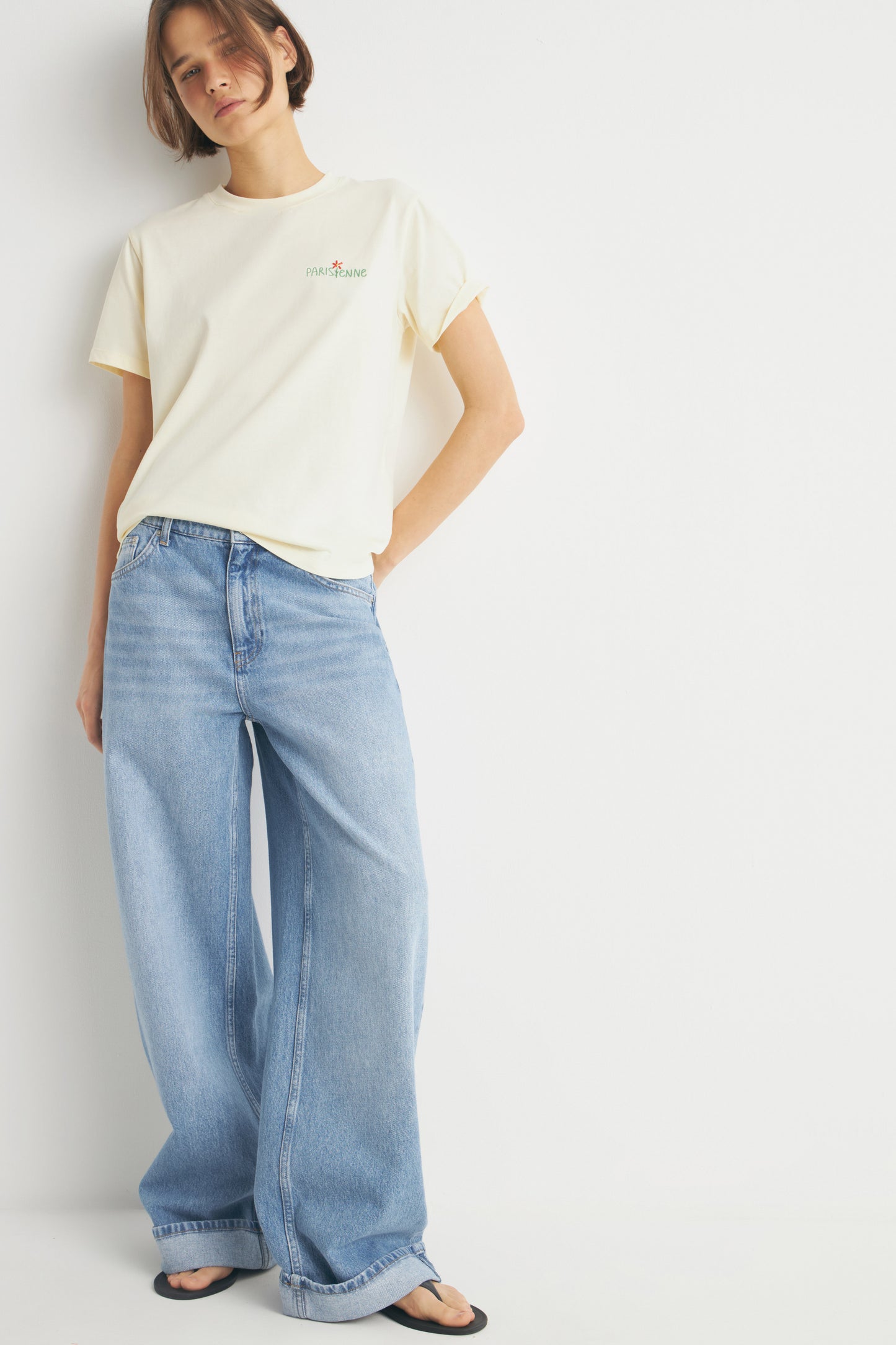 T-shirt in cotton jersey with short sleeves and round neckline. Embroidered detail on the chest. Straight-fit silhouette.