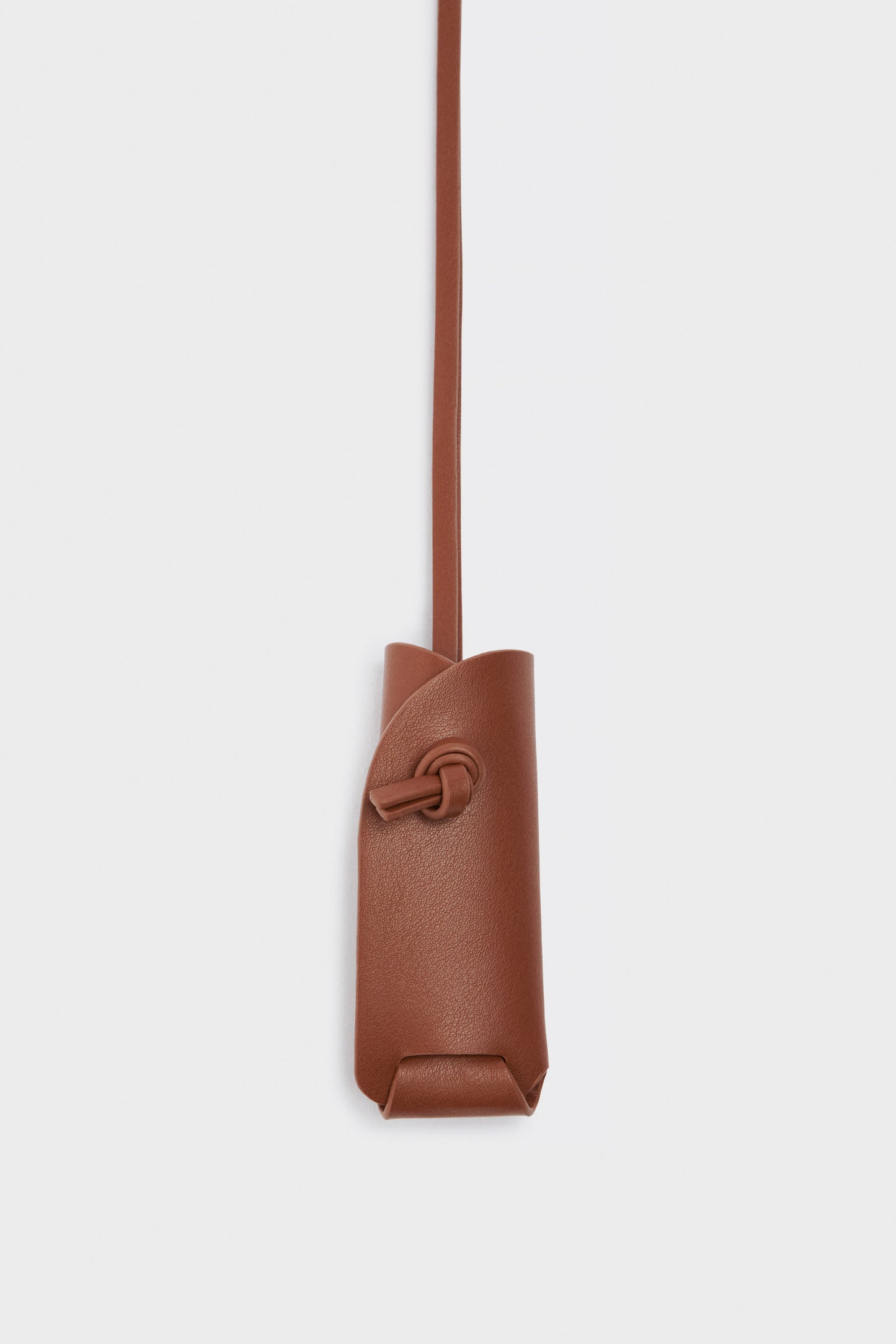 Case for Parfum in faux leather featuring a long strap. Size: 4,5 х 1 х 11,5 cm (length x width x height).