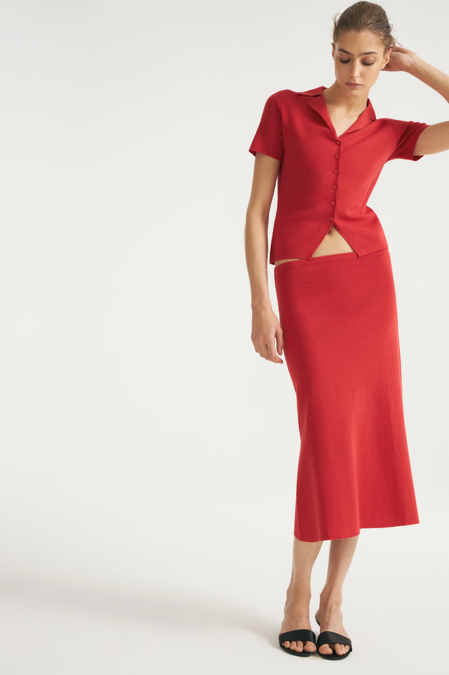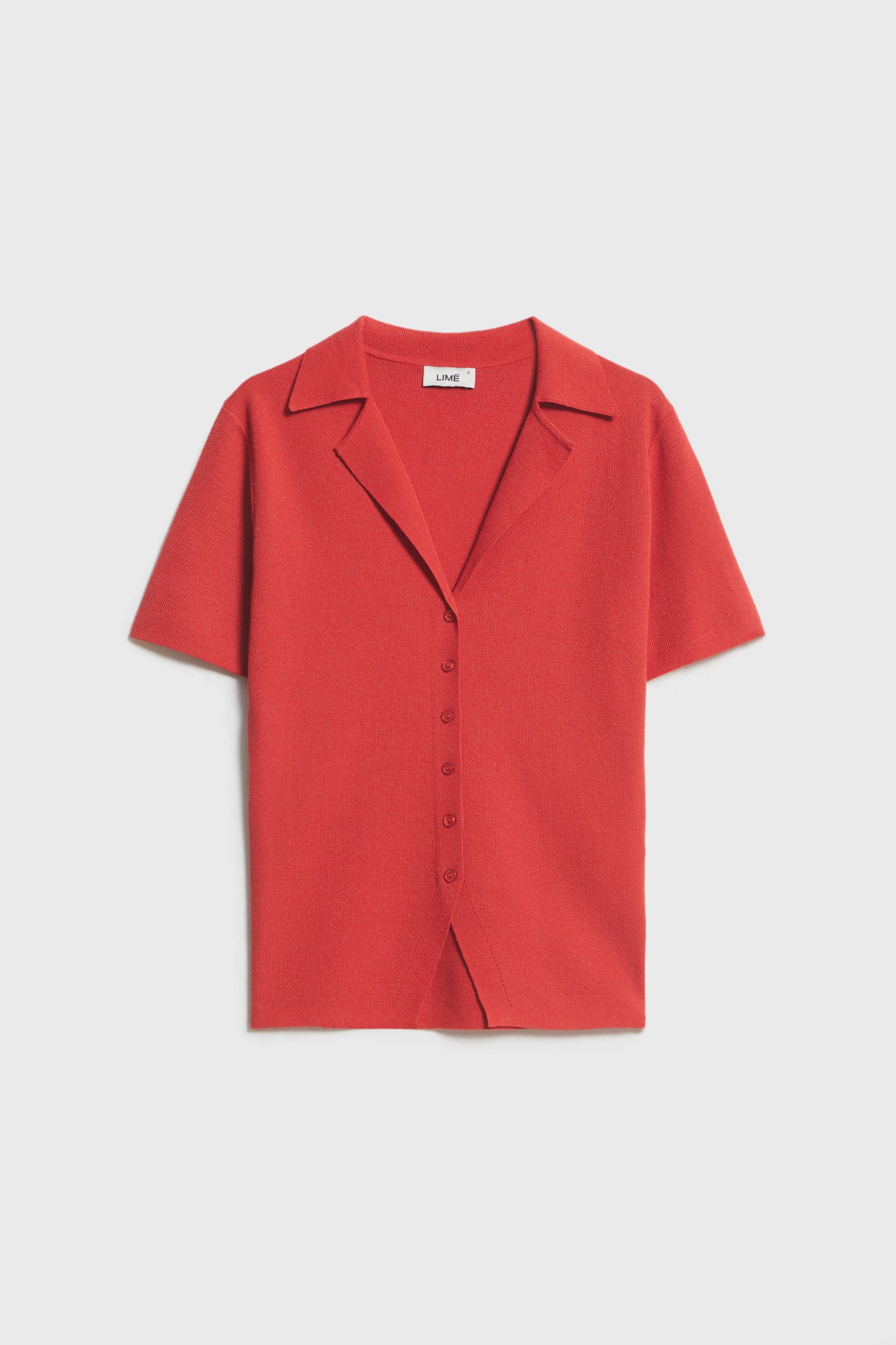 Cropped cardigan in a soft, fine-knit cotton blend with front buttons, collar and short sleeves.