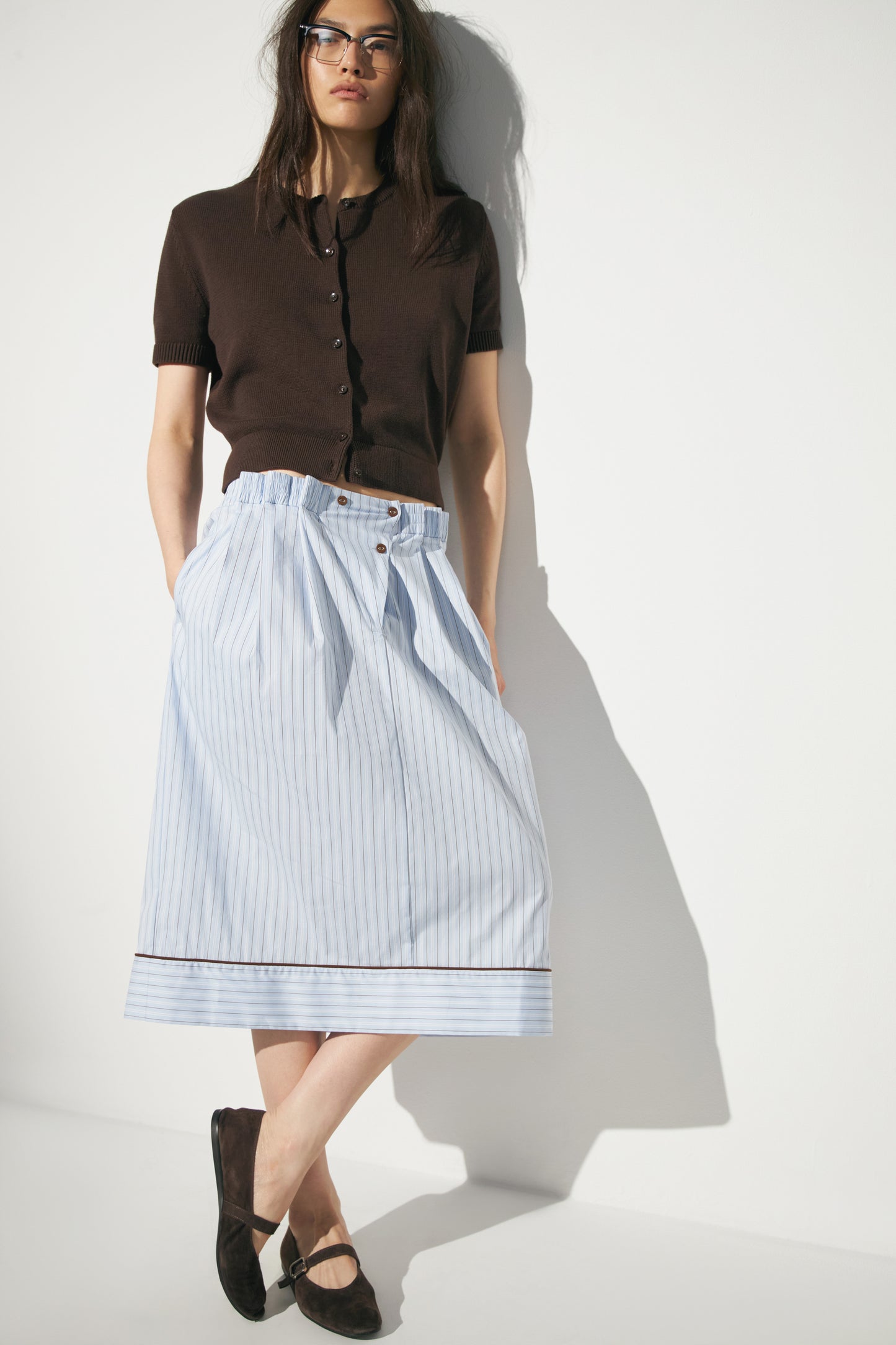 Cropped cardigan in a soft, fine-knit cotton with front buttons, round neck and short sleeves.
