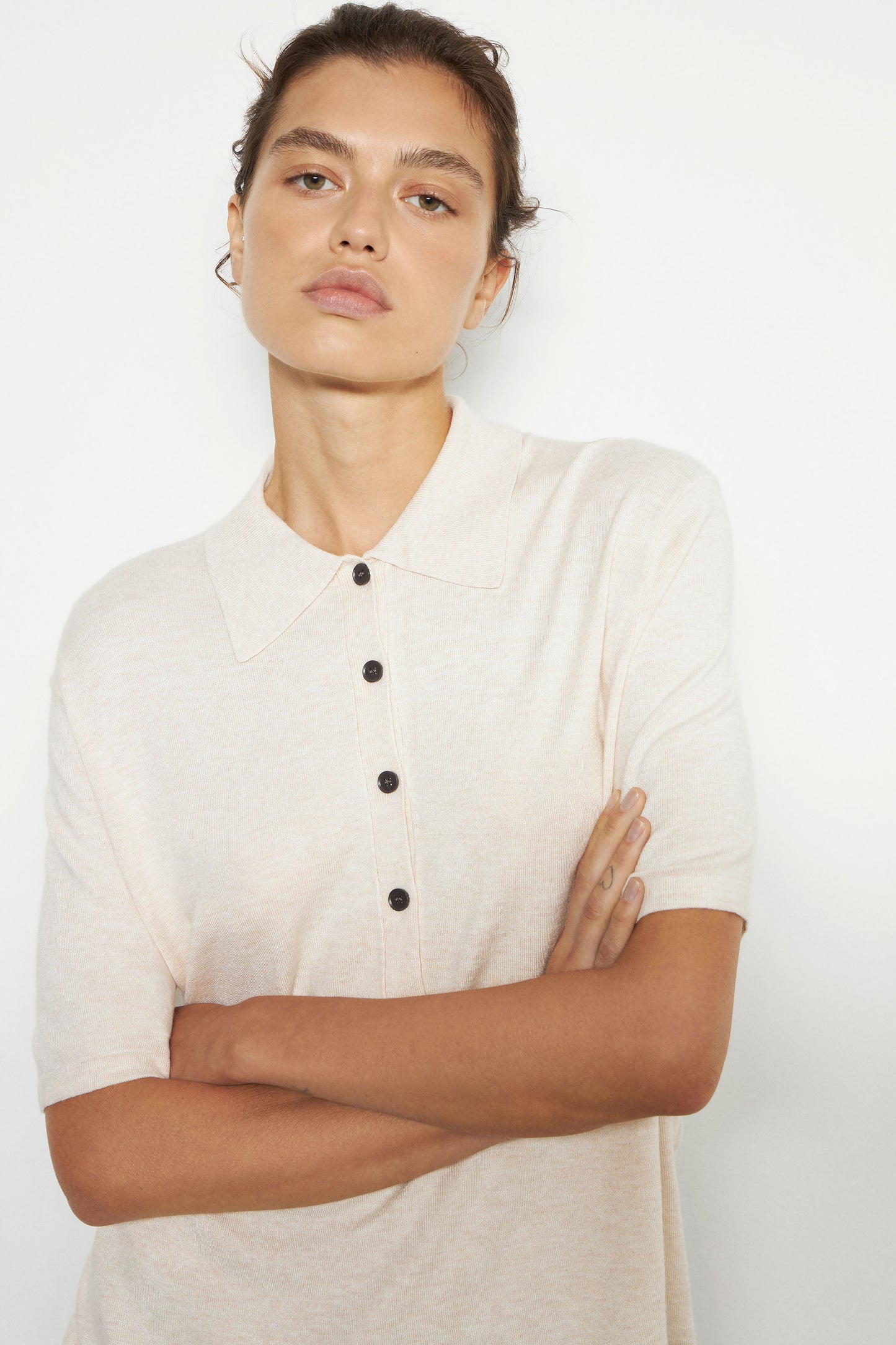 Oversize-fit polo jumper in a soft viscose knit with a polo-style collar, buttons at the top and short sleeves.