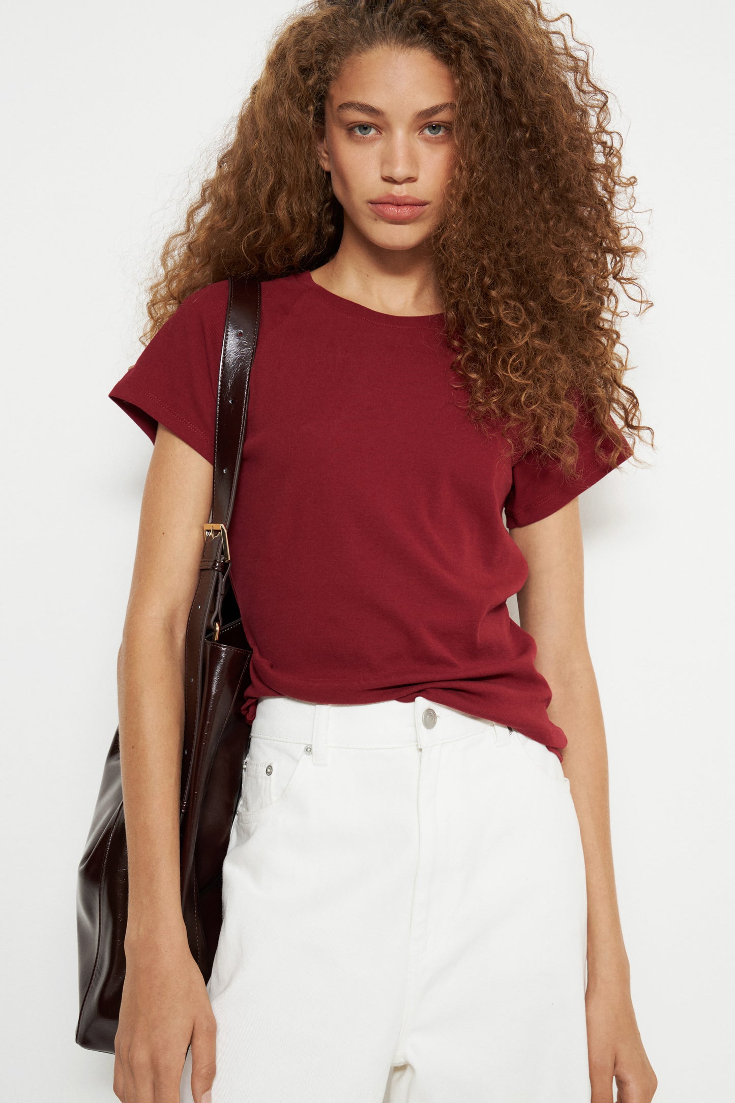 Fitted sport T-shirt in cotton jersey with a round neckline and short raglan sleeves.