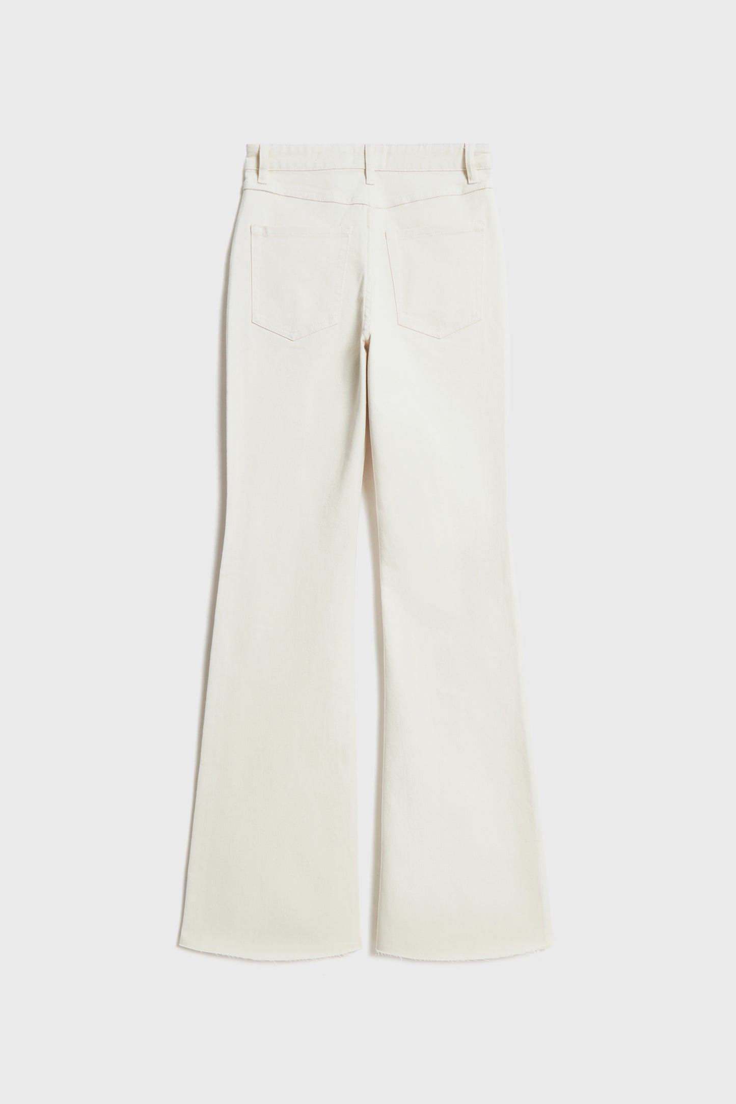 High-waist jeans in stretch cotton and viscose blend denim. Five-pocket design. Flared seamless hems. Front zip fly and button fastening.