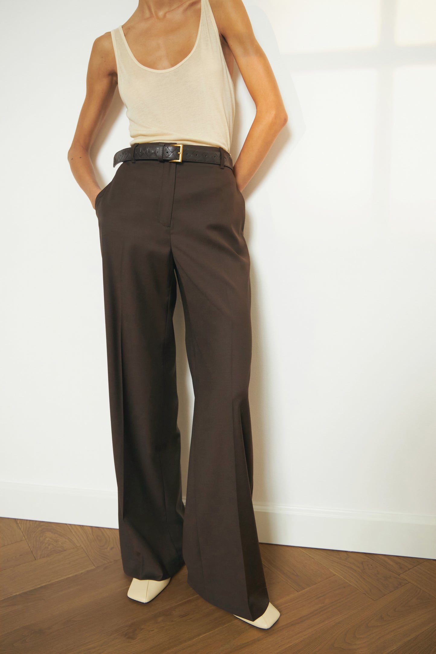 FLARED WOOL-BLEND TROUSERS