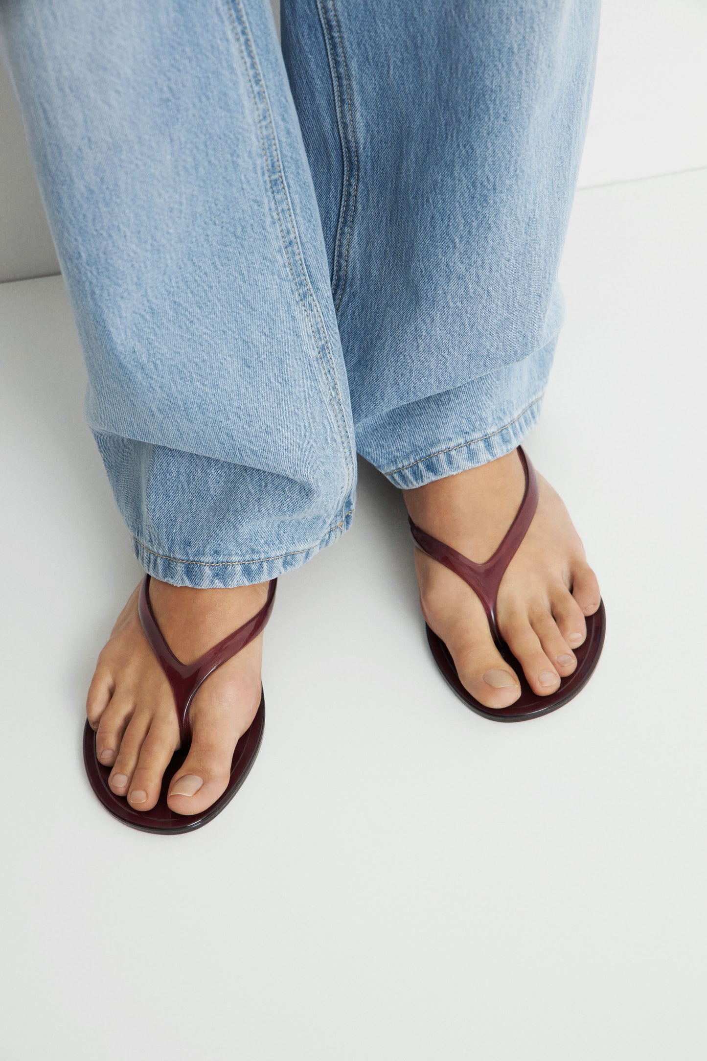Flip-flops with round toes. Your purchases are delivered with a fabric bag.