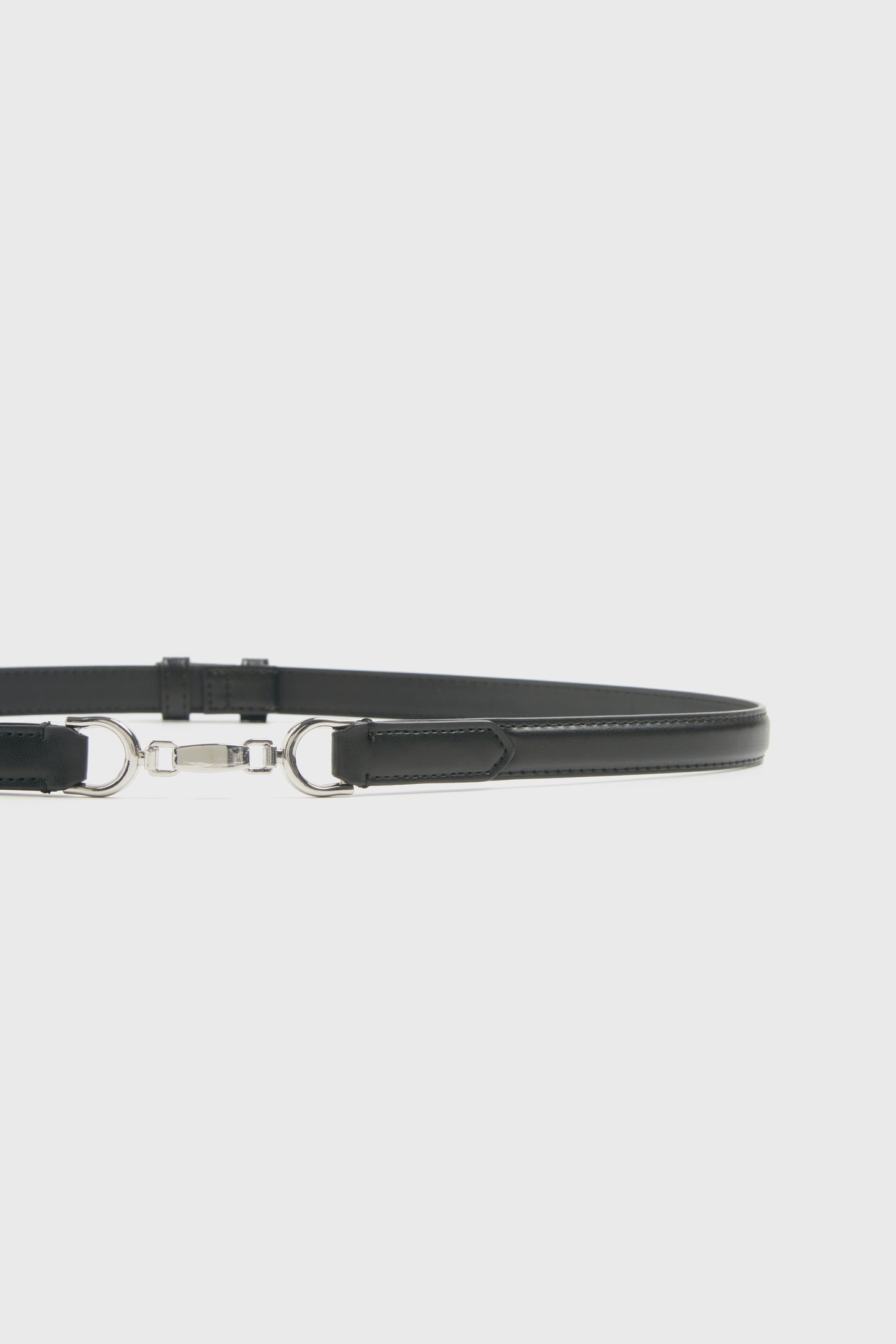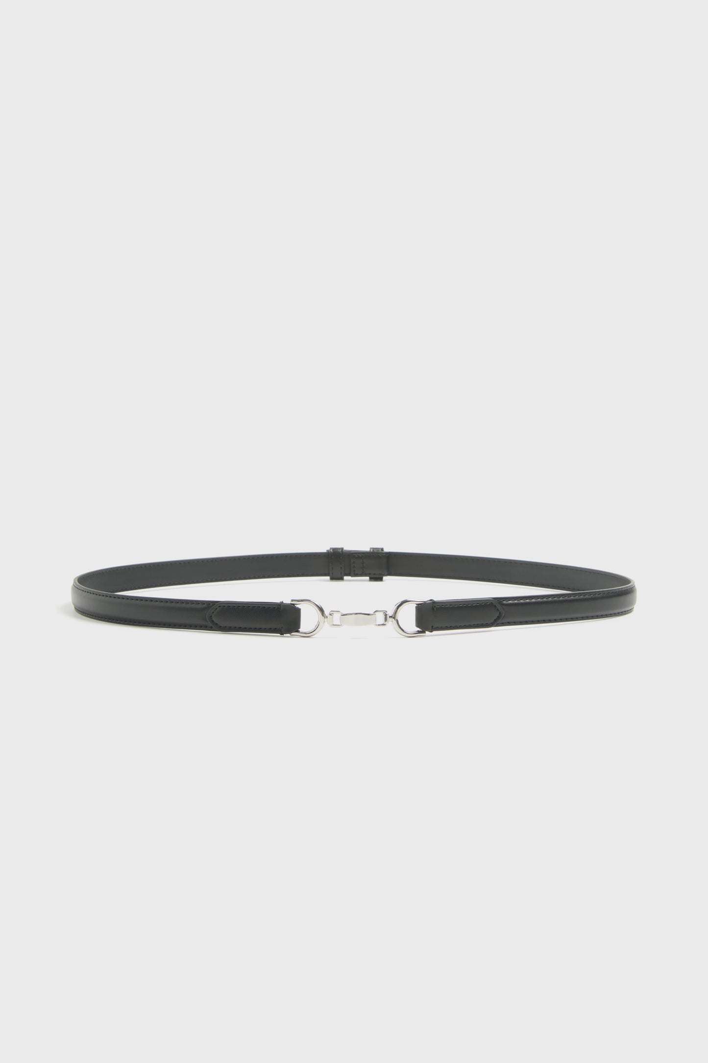 Belt in faux leather with a metal horsebit buckle. Size: XS/S – 88 x 1,8 cm M/L – 100 x 1,8 cm