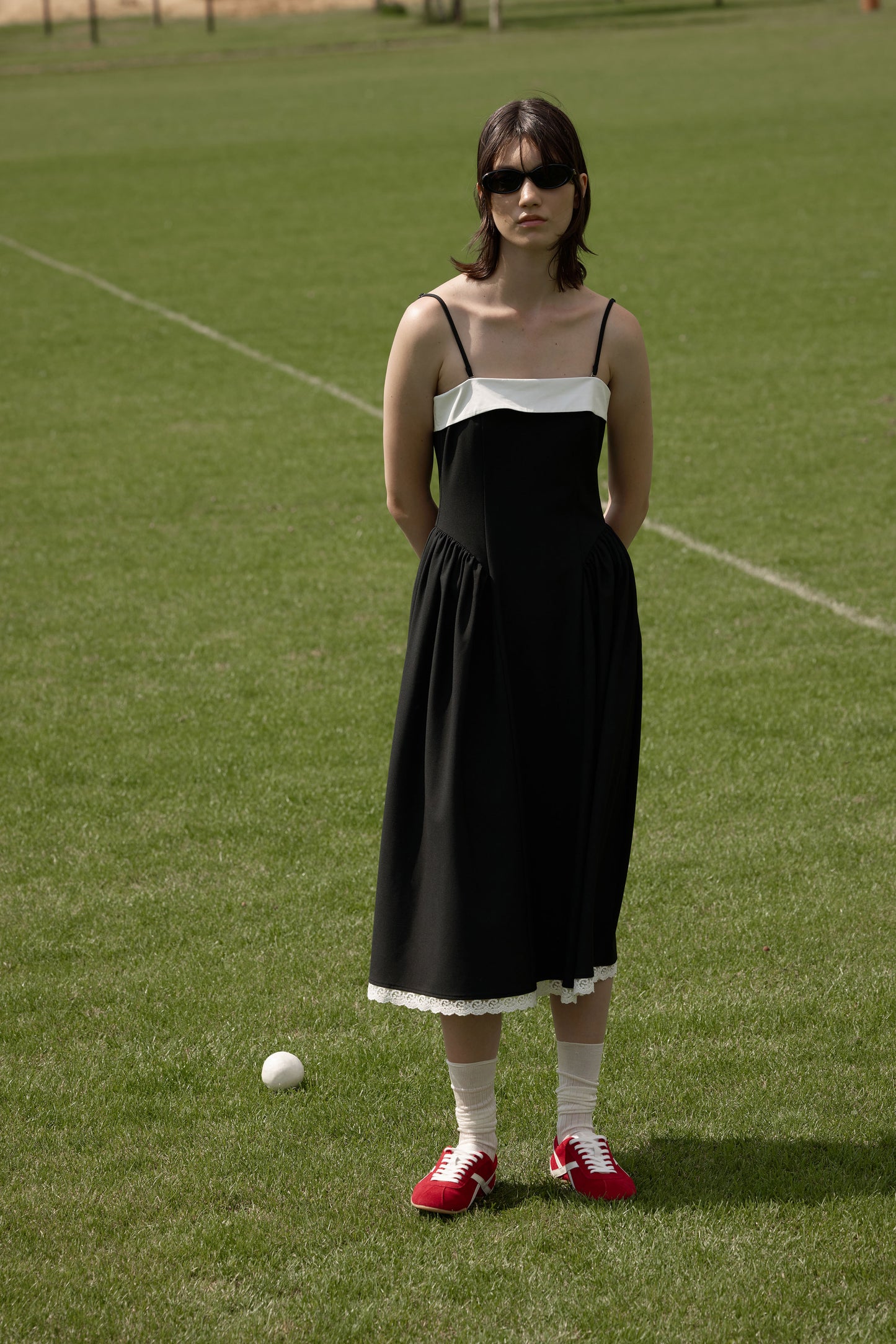 LACE-TRIMMED DRESS WITH FLARE SKIRT