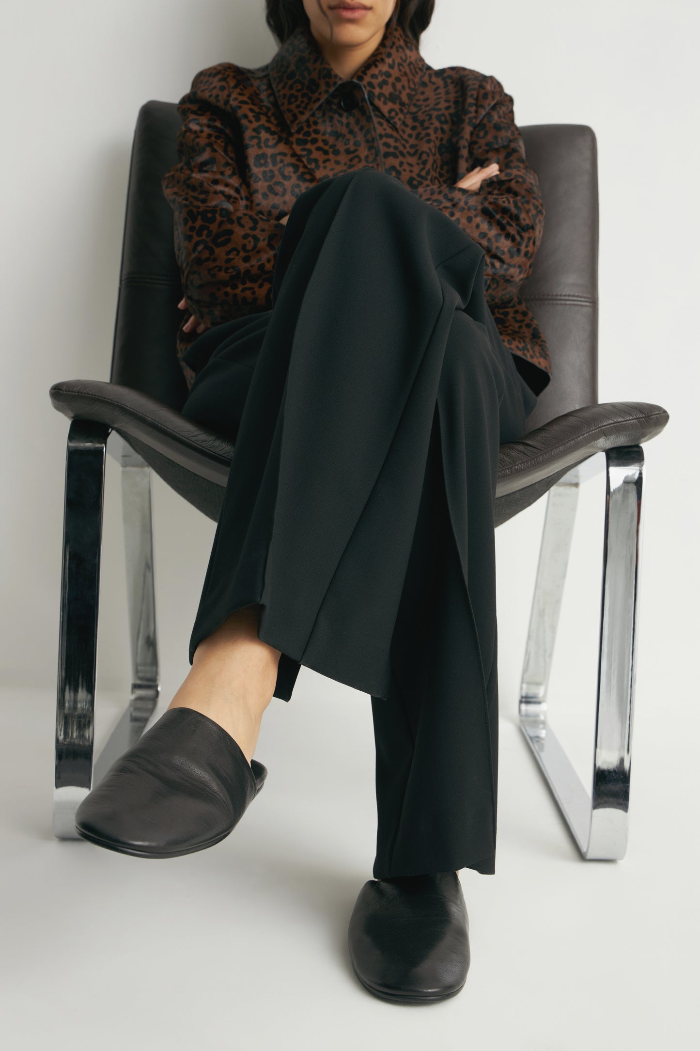 Leather clogs. Flat thin sole. Rounded shape. Leather linings and insoles. Your purchases are delivered with a fabric bag.