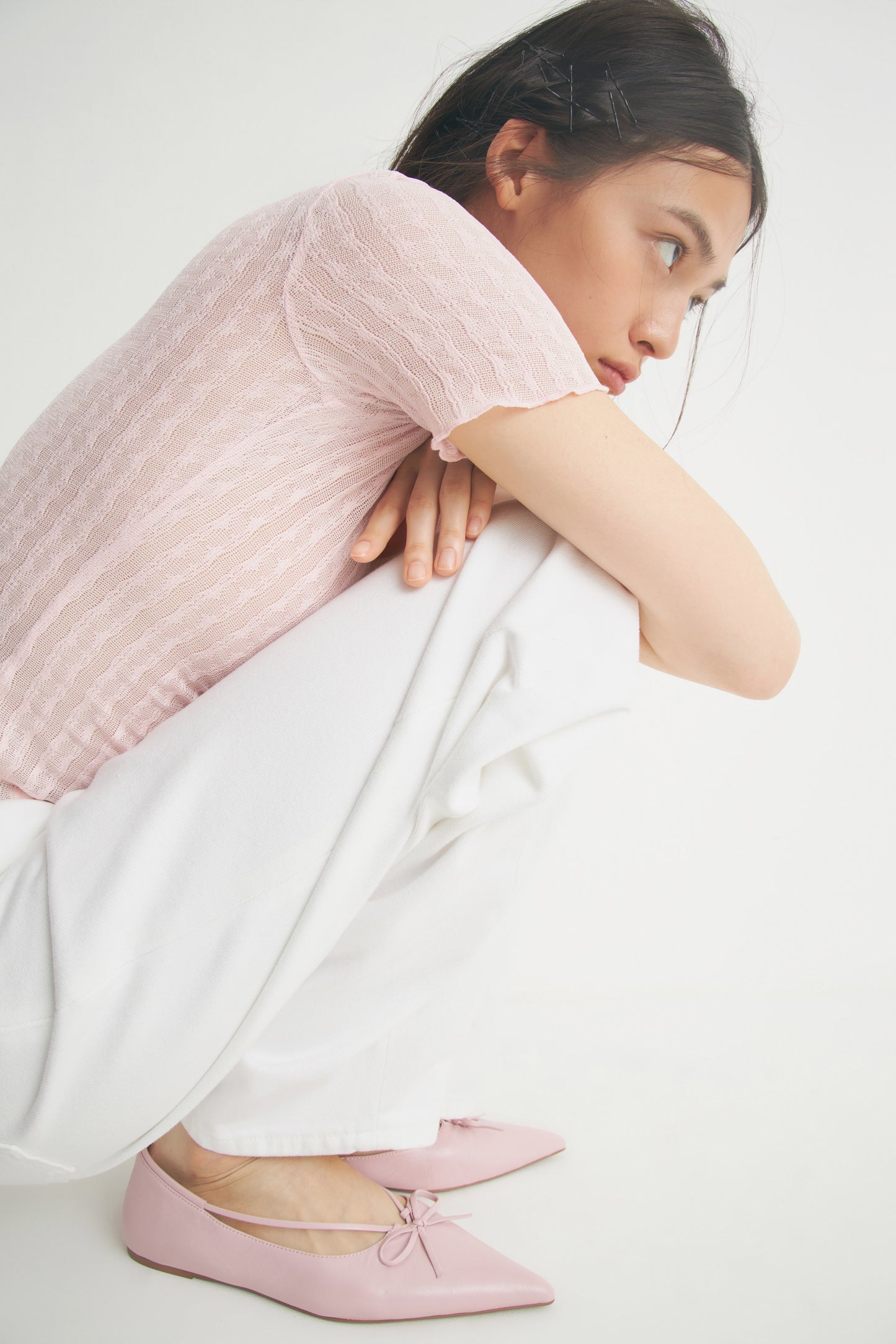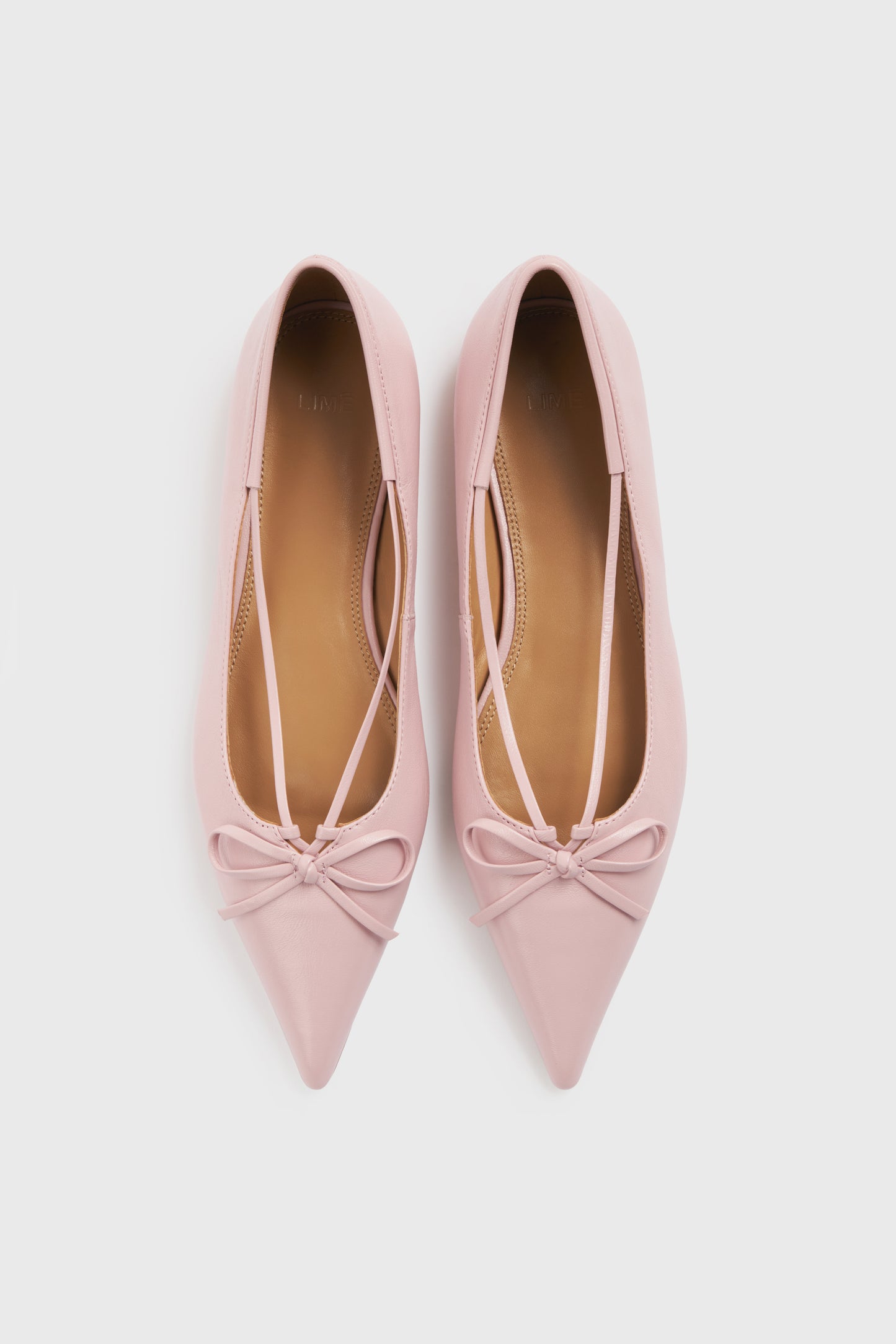 Ballet flats in soft leather. Pointed toes, decorative bow at front. Your purchases are delivered with a fabric bag.