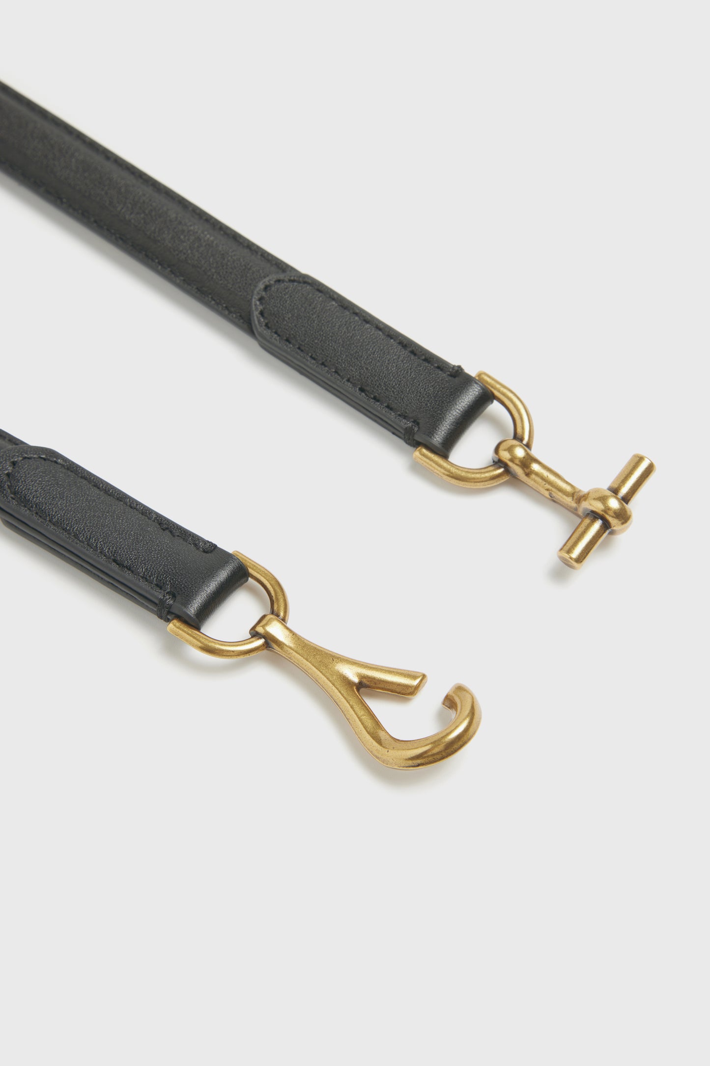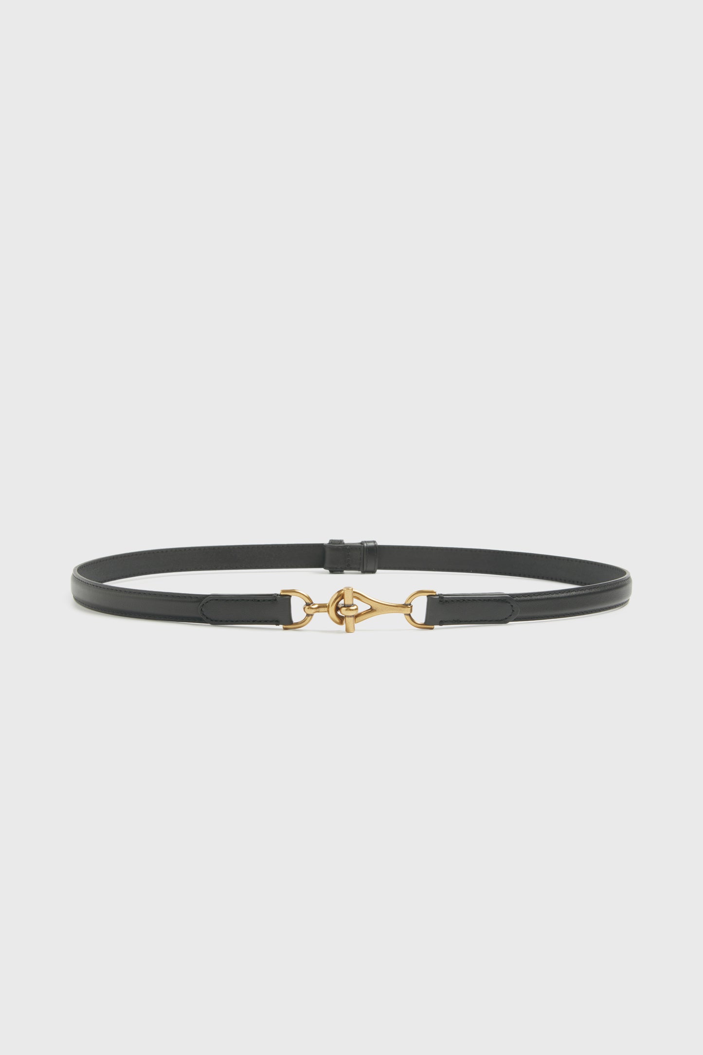 Adjustable belt made of genuine matte leather. Gold-tone buckle in an equestrian-inspired design, fastened with a metal hook. Size XS/S – 88 x 2,2 cm M/L – 100 x 2,2 cm