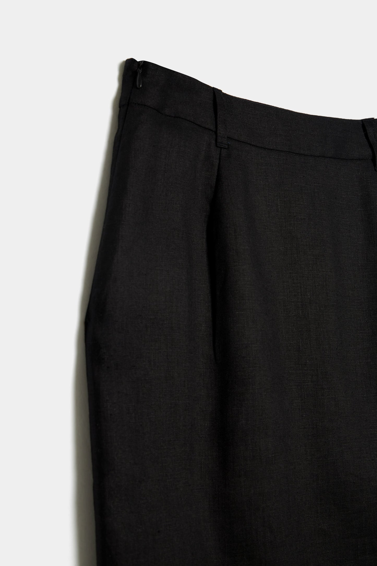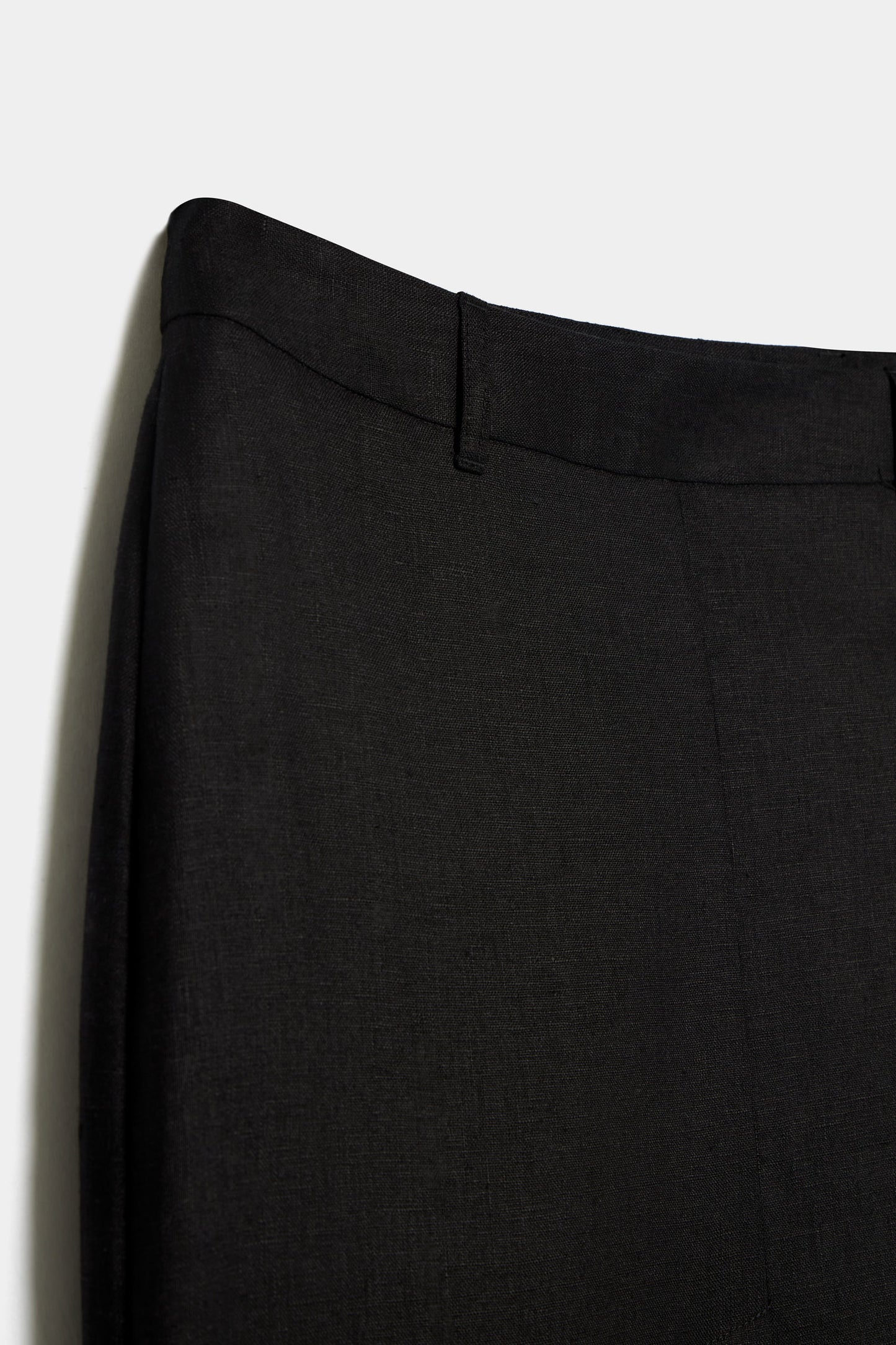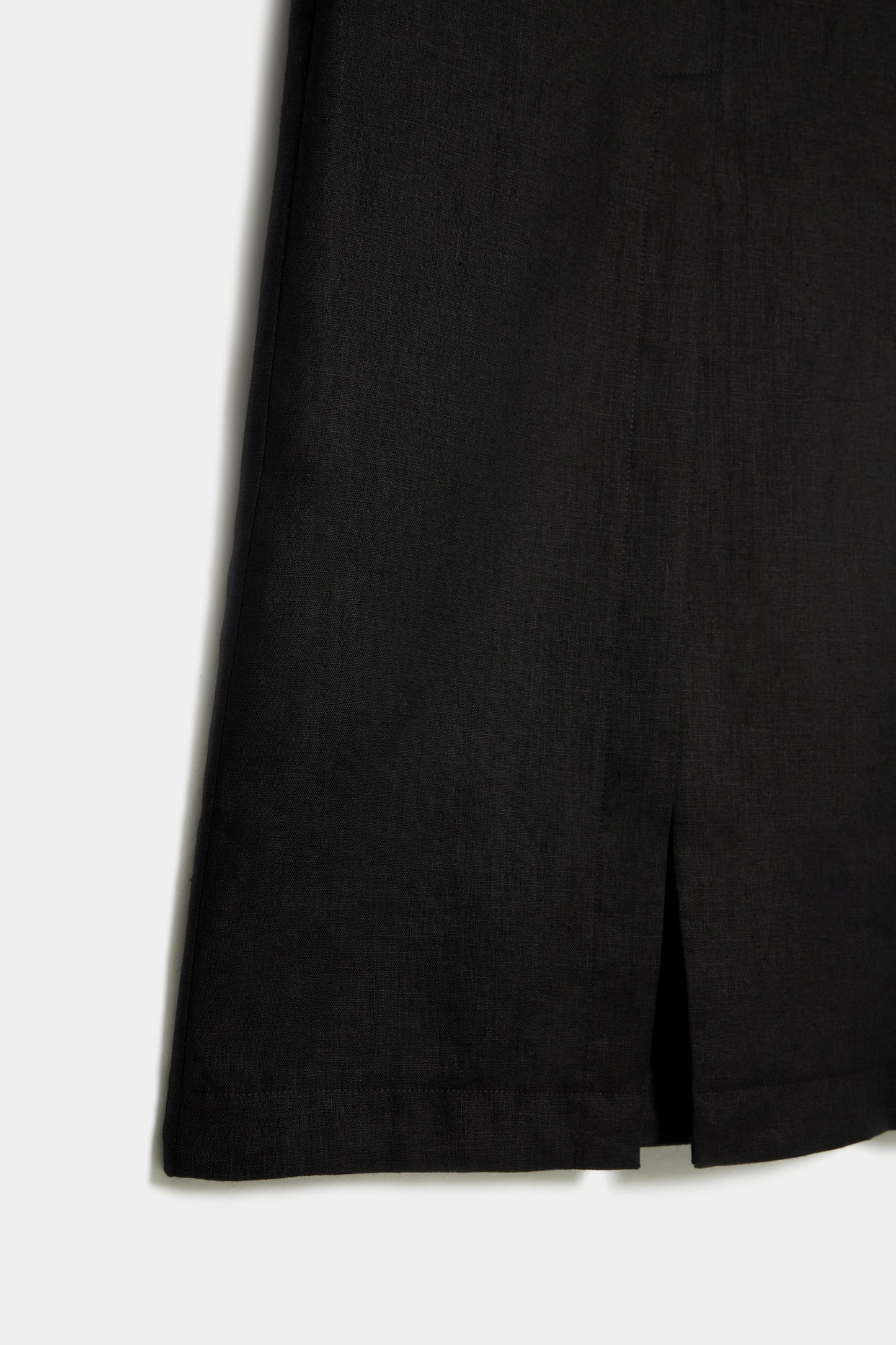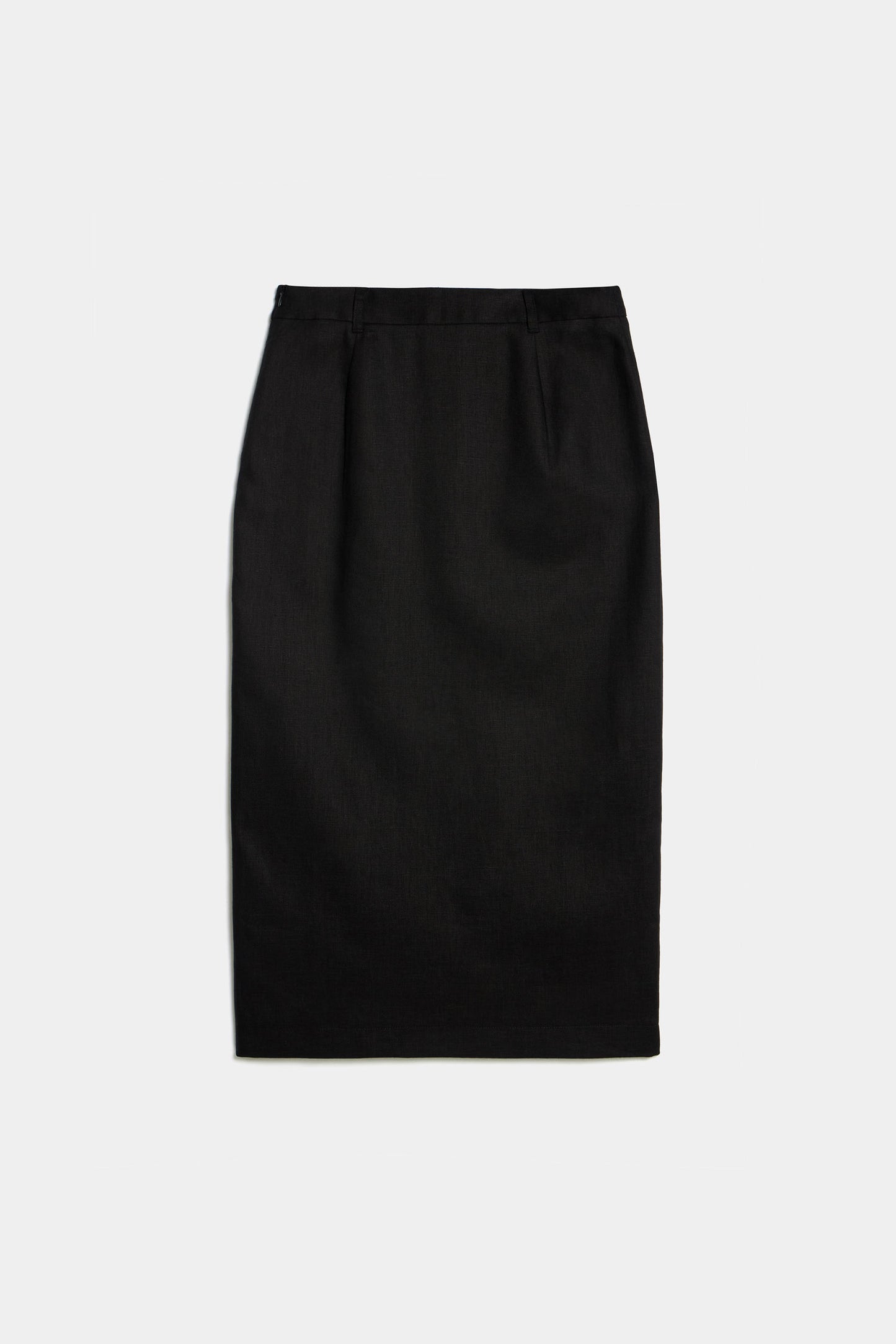 Midi skirt with a front slit made of 100% linen. Invisible side zip fastening.