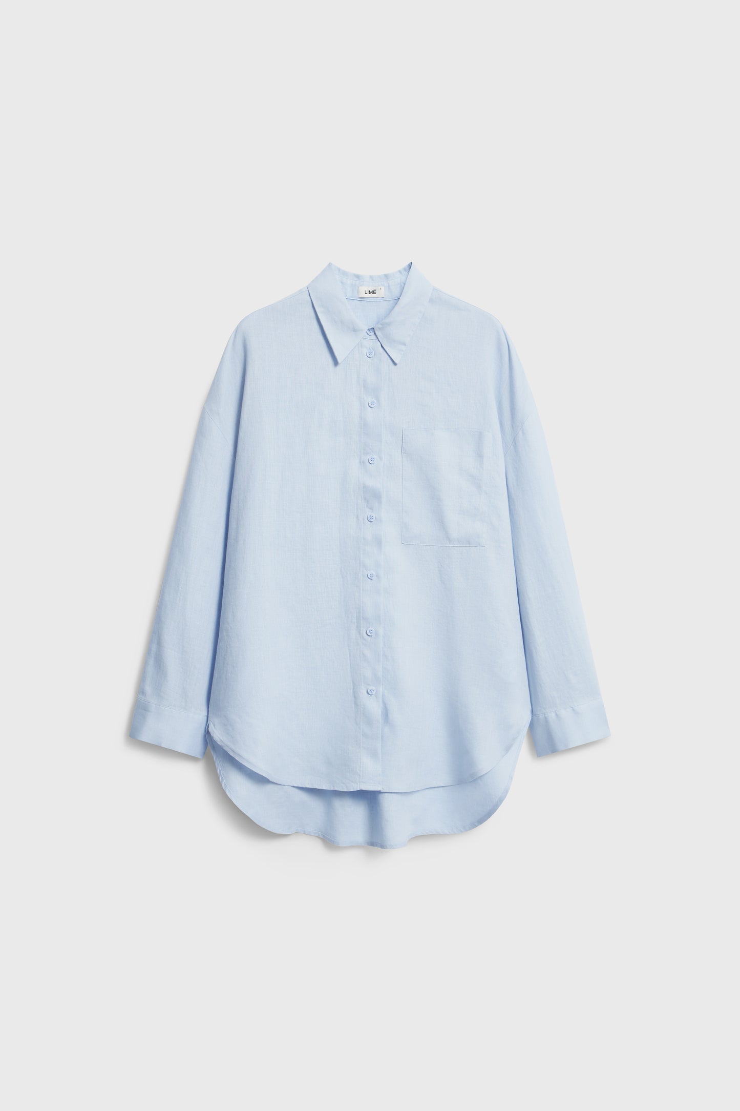 Oversized shirt made of 100% linen. Featuring a collar, long sleeves with buttoned cuffs, a chest patch pocket. Pleated detail at the back. Button-up front.