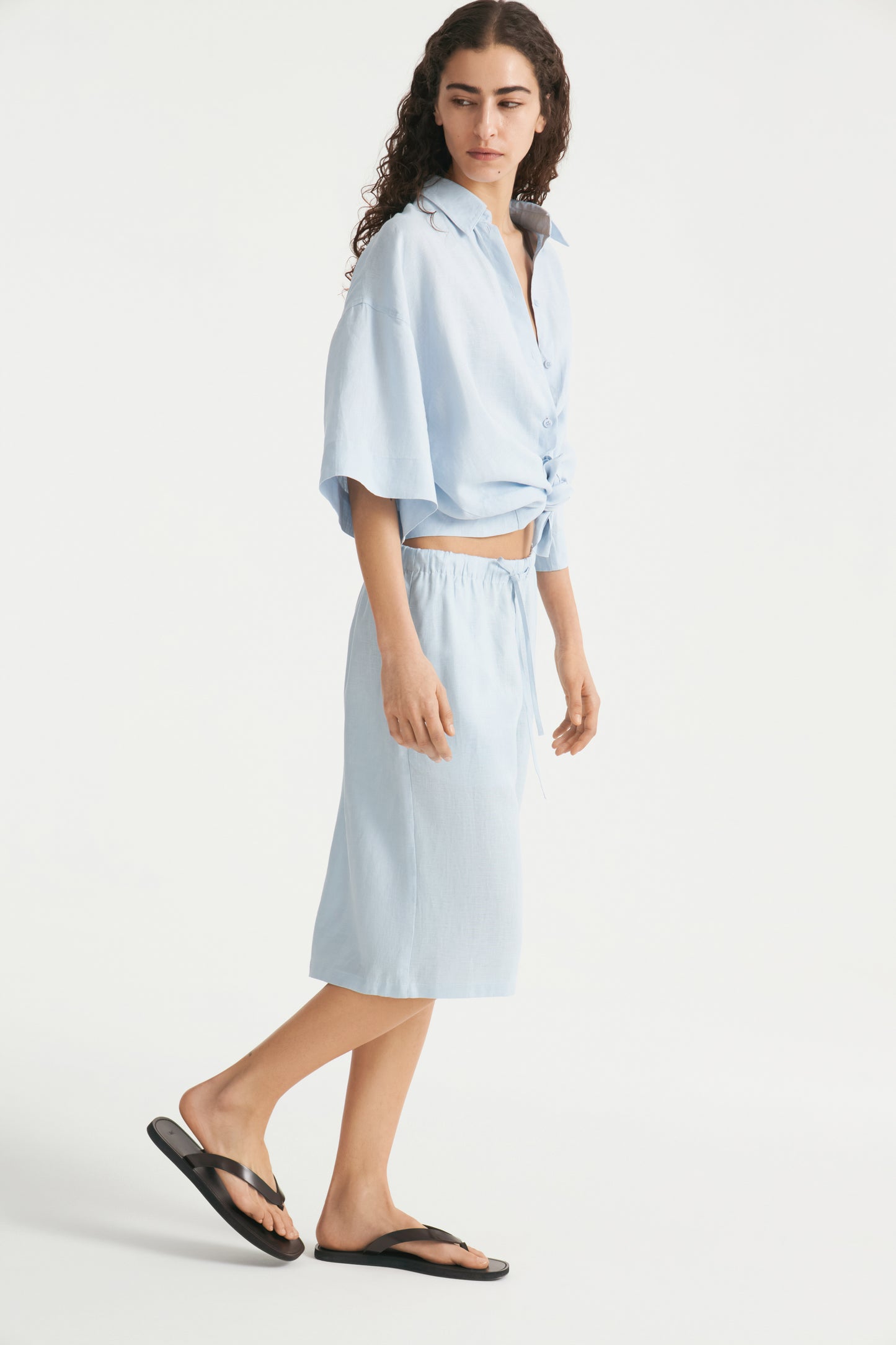 Wide-leg shorts in airy linen with an adjustable drawstring waist and front pockets.