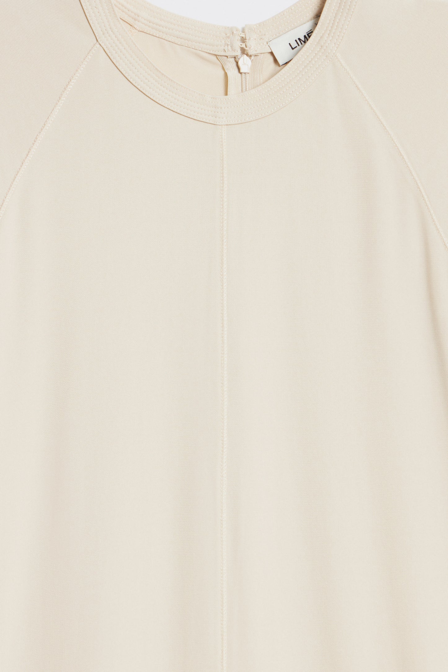 Fitted, ankle-length dress in viscose jersey with stretch. Round neckline, short sleeves, a concealed zip and hook at the back.