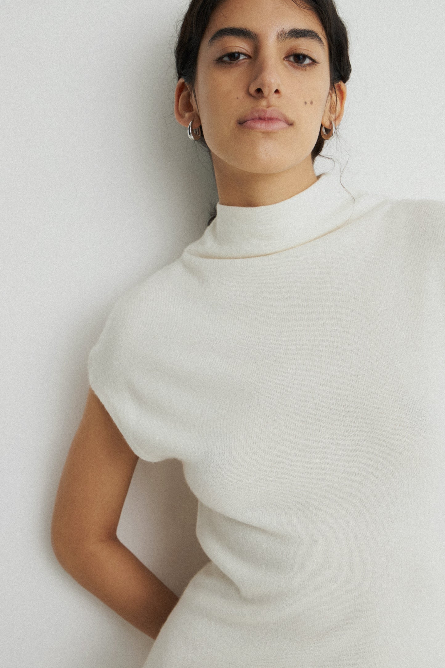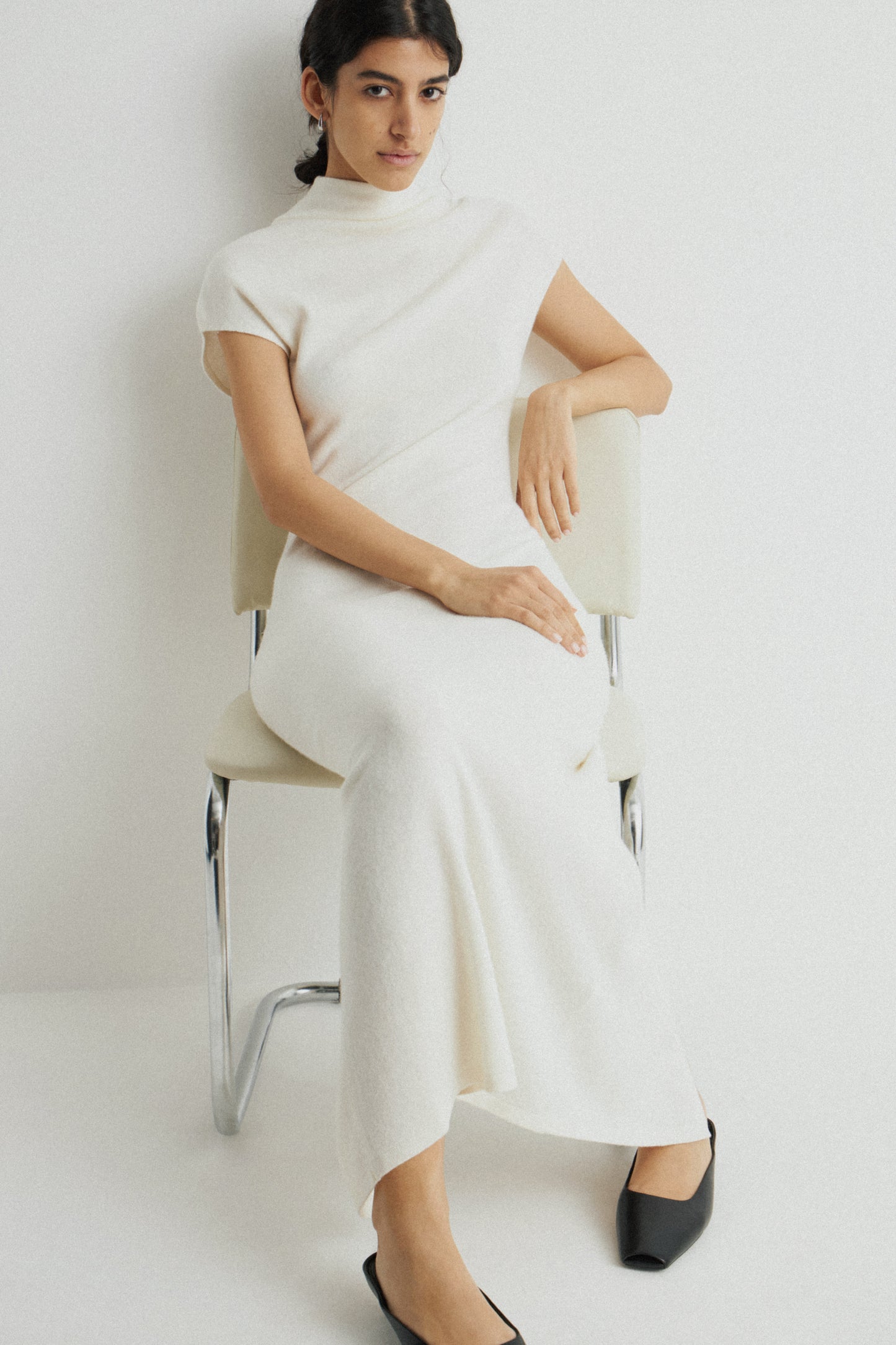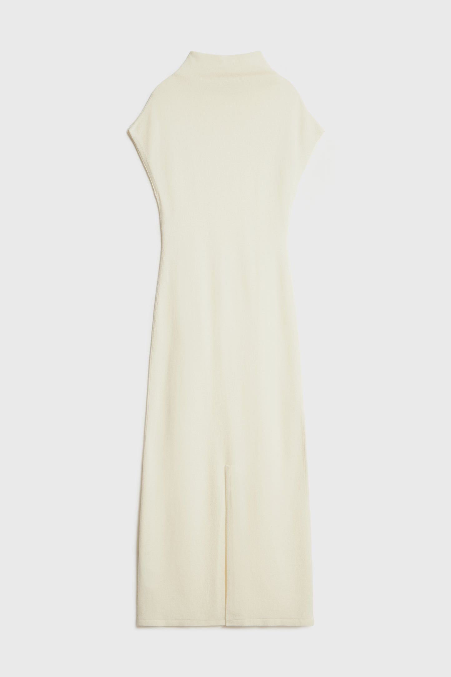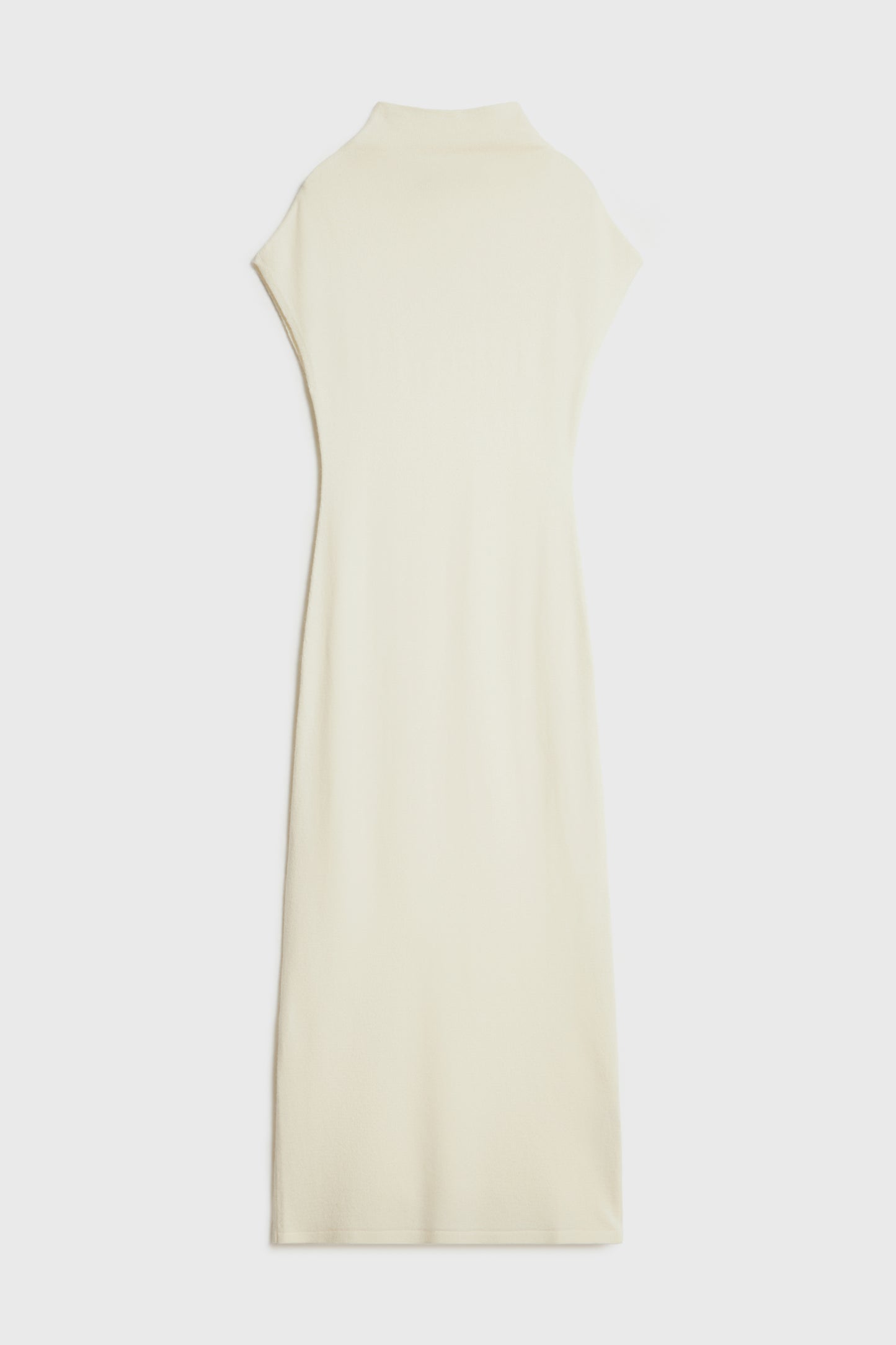 Fitted, long dress in soft, fine-knit wool and viscose contains cashmere. Features a turtleneck.