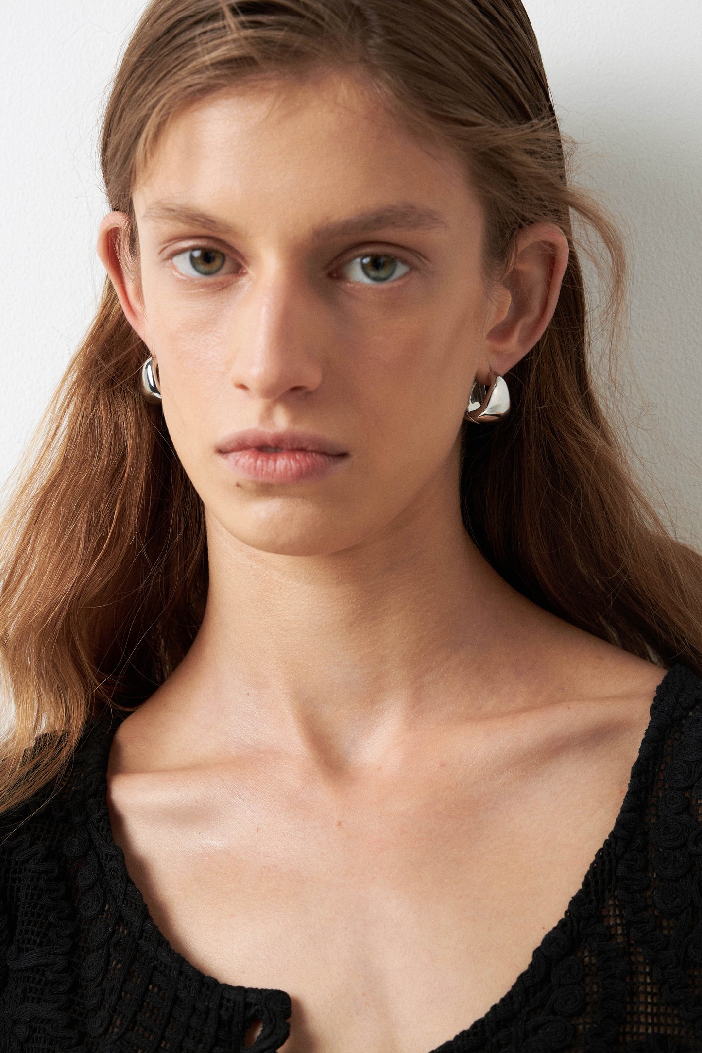 Chunky hoop earrings from metal in a round shape. Lever clasp.