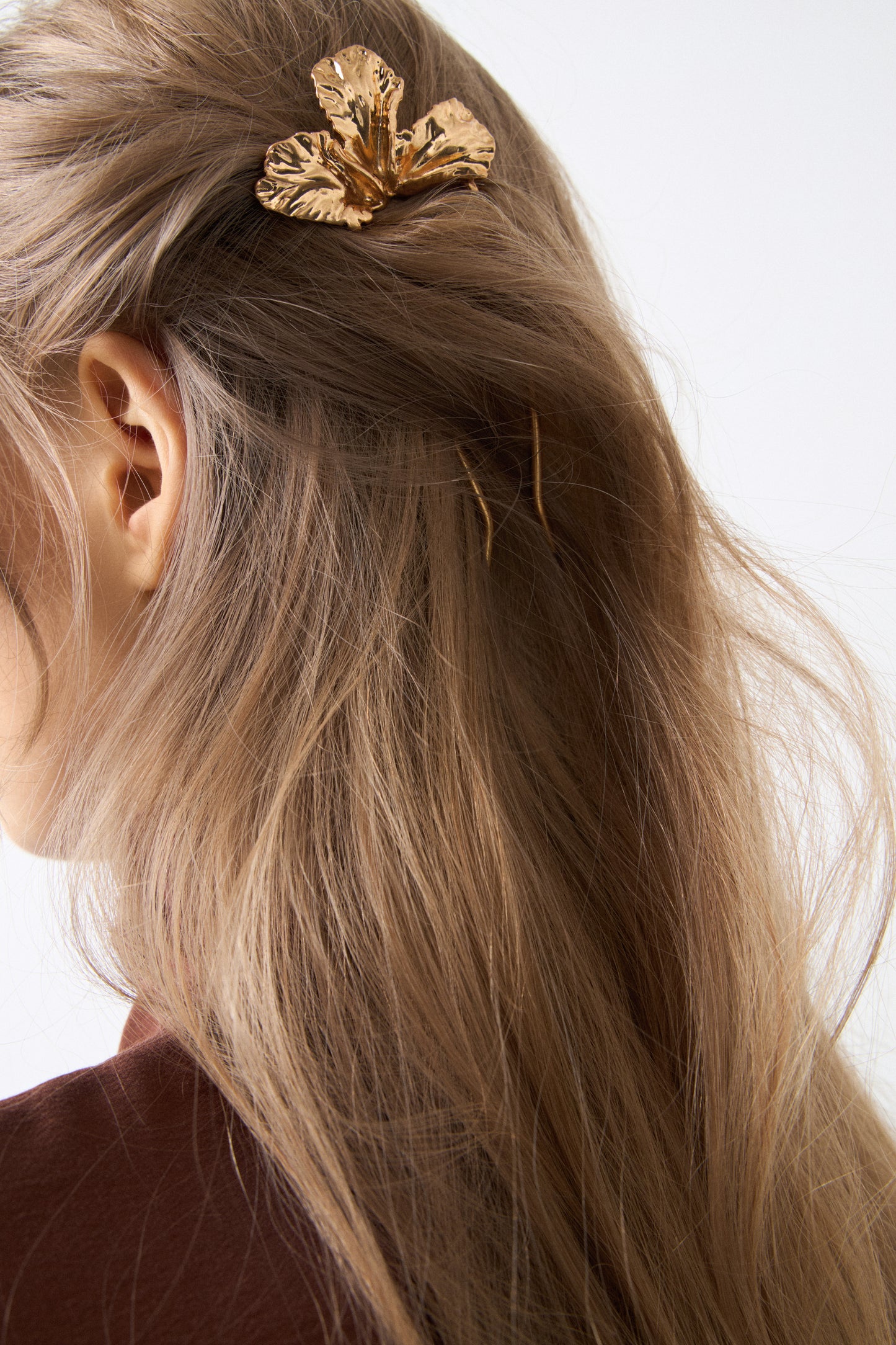 Metal grip for hair with a flower-shaped detail at the top. ONE SIZE: 11,5 cm