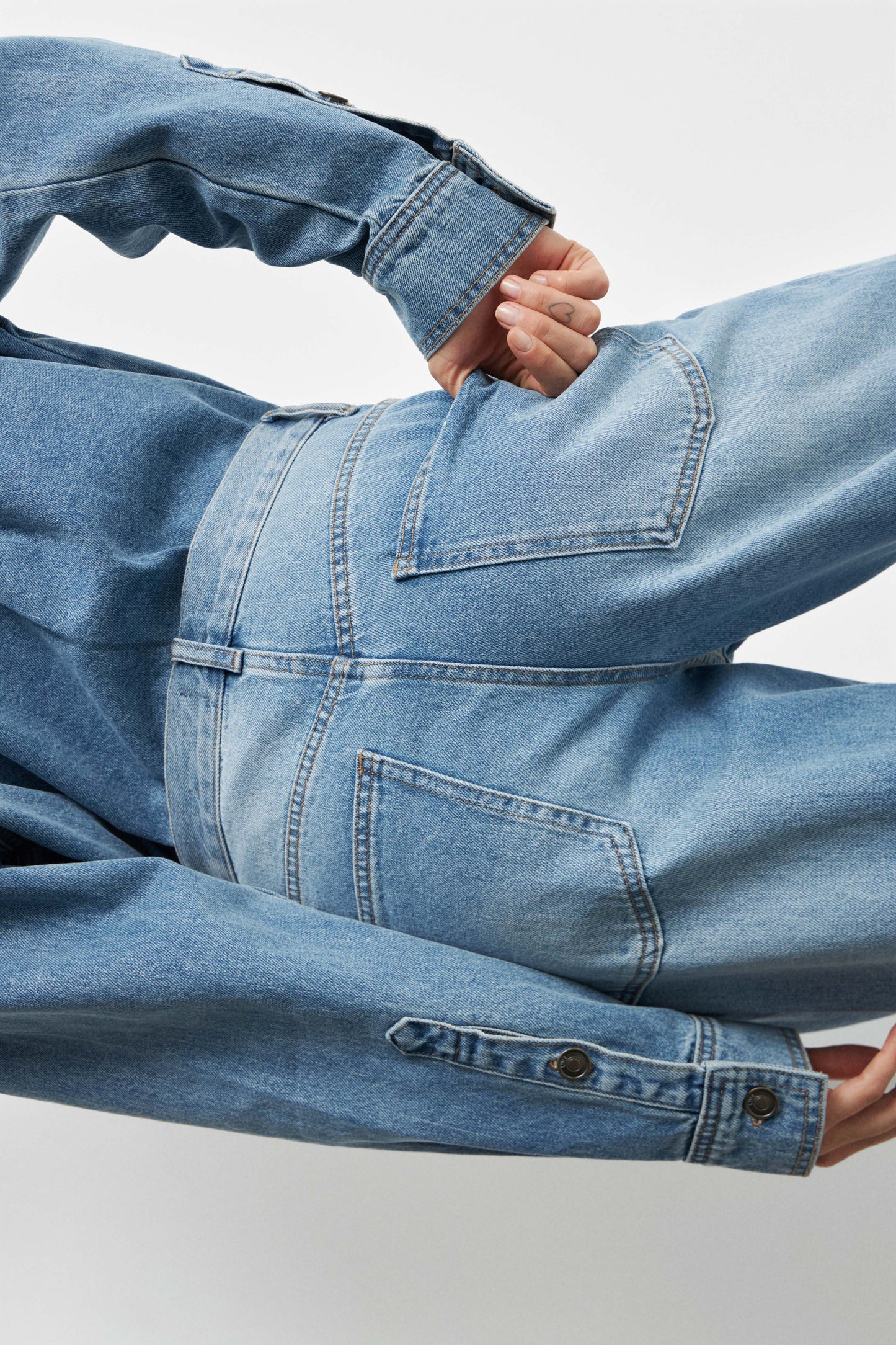 Mid-waist relaxed-fit jeans with a five-pocket design. Faded effect. Straight leg. Zip fly and metal top button fastening.