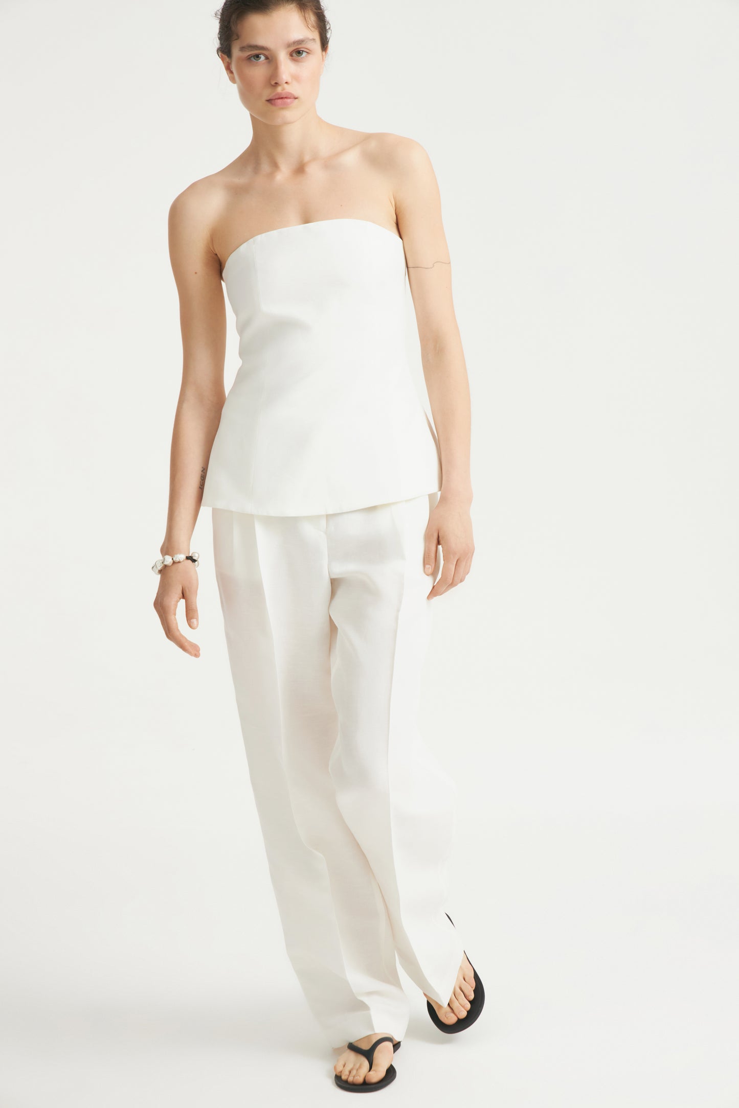 Fitted, off-the-shoulder top in a viscose and linen blend with straight-cut neckline and a concealed side zip fastening. Lined.