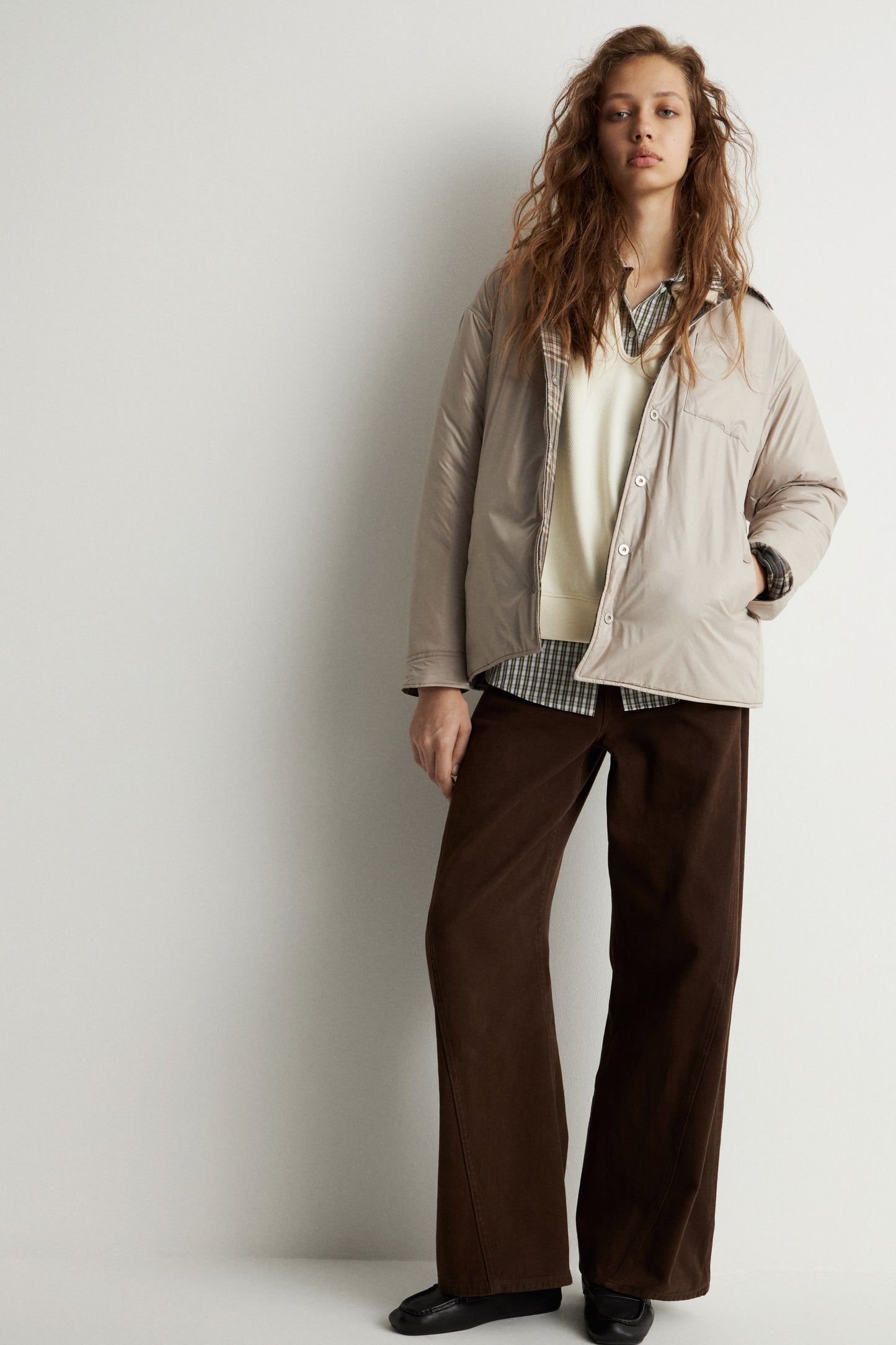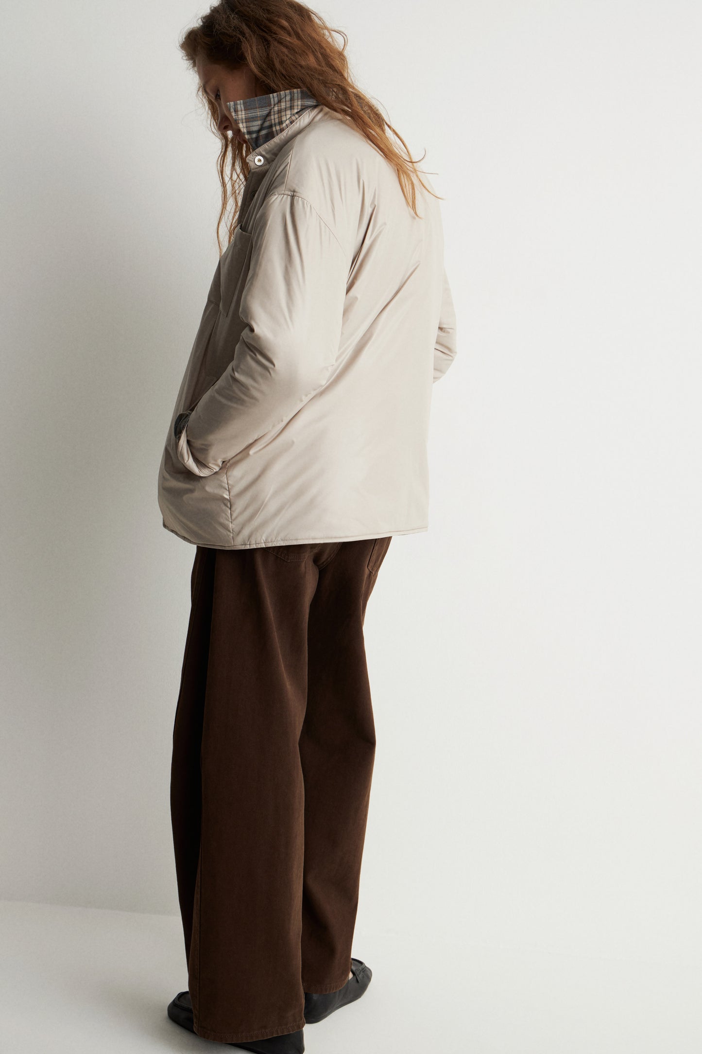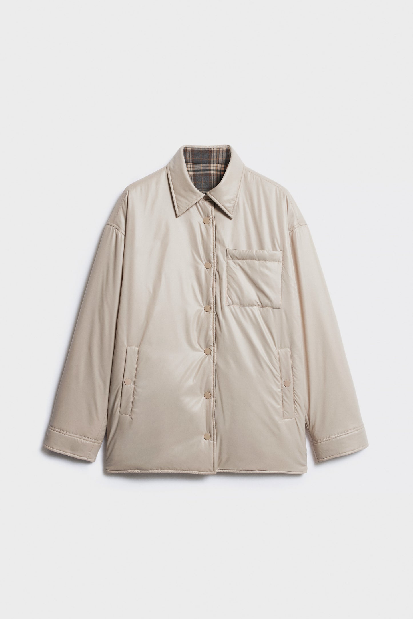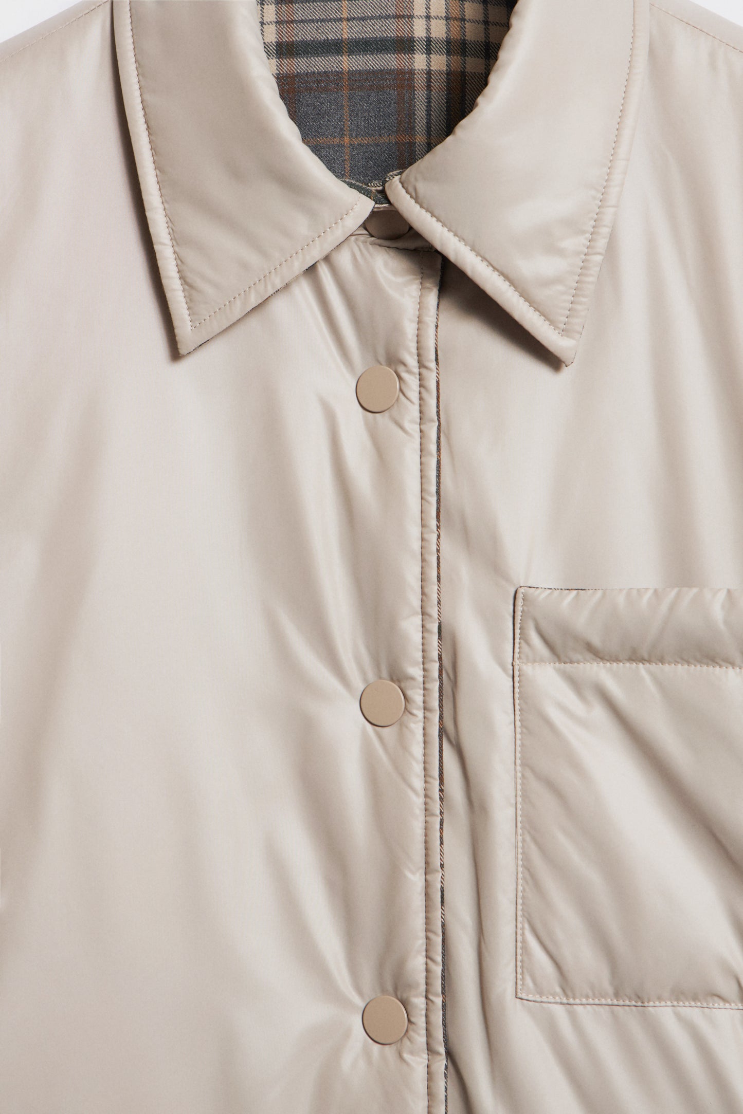 Lightly padded jacket in checked weave with a shirt collar. Patch chest pocket, long sleeves and welt front pockets. Made with padded fabric interior and lining. Press-studs down the front.