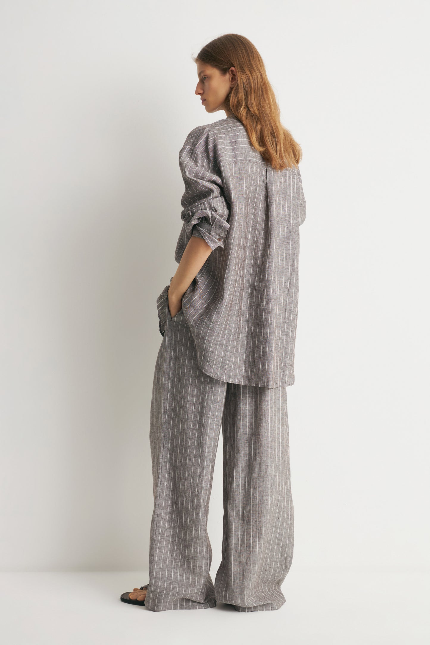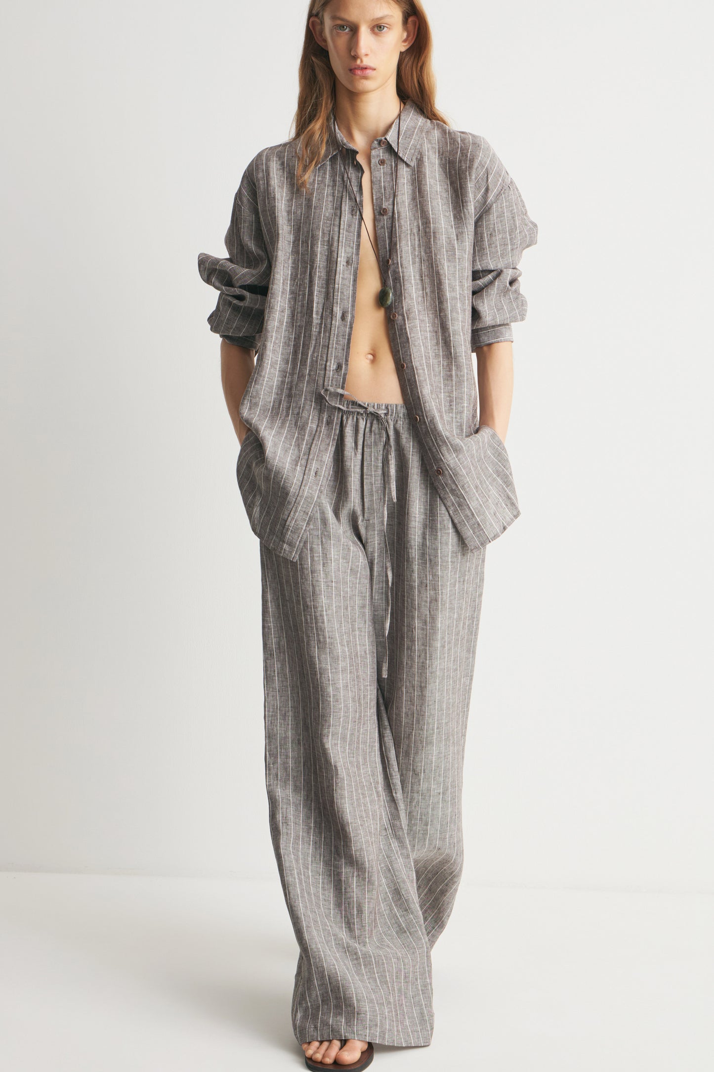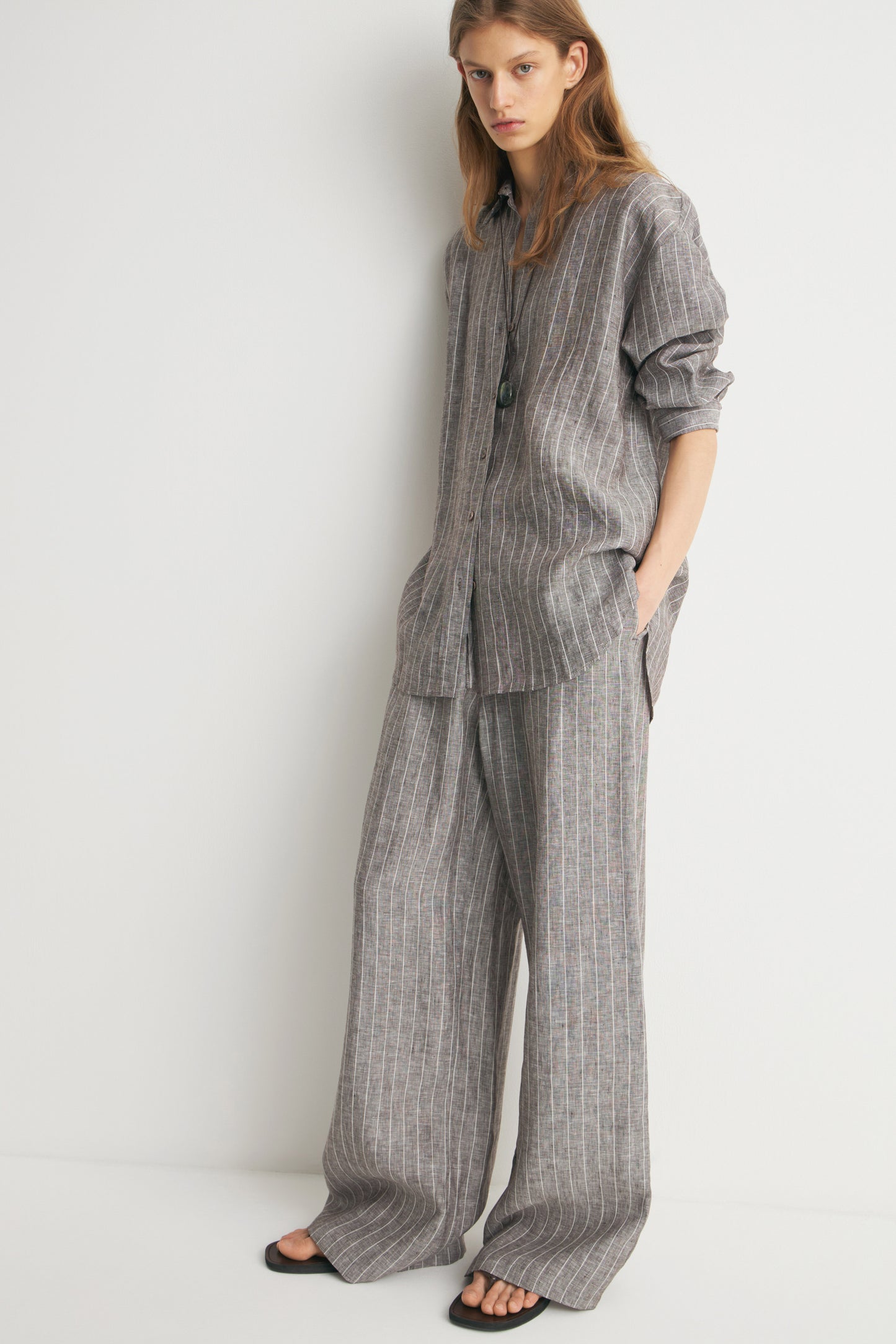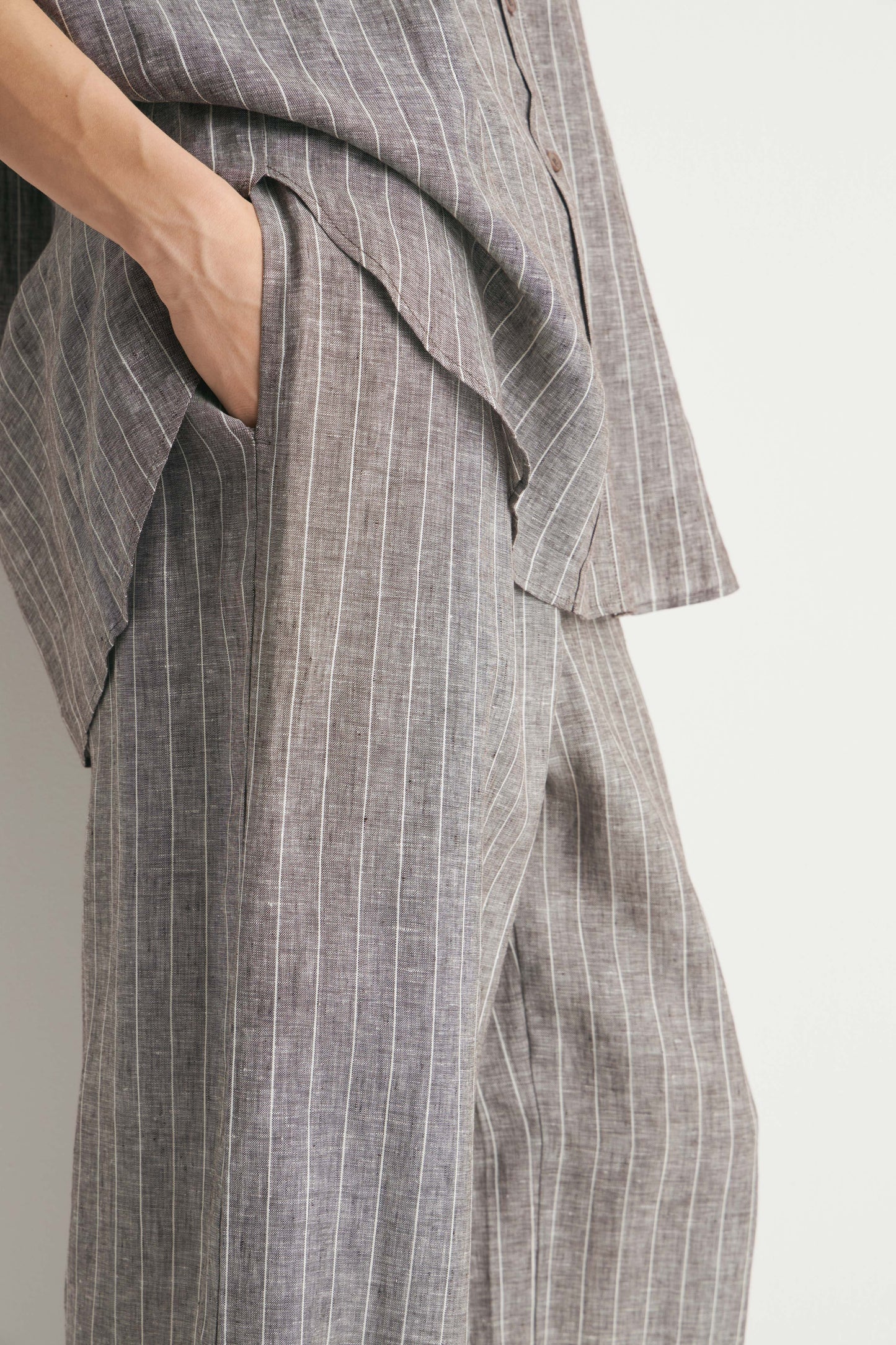 Straight fit trousers crafted from 100% linen. Featuring an adjustable elastic drawstring waistband and front side pockets.