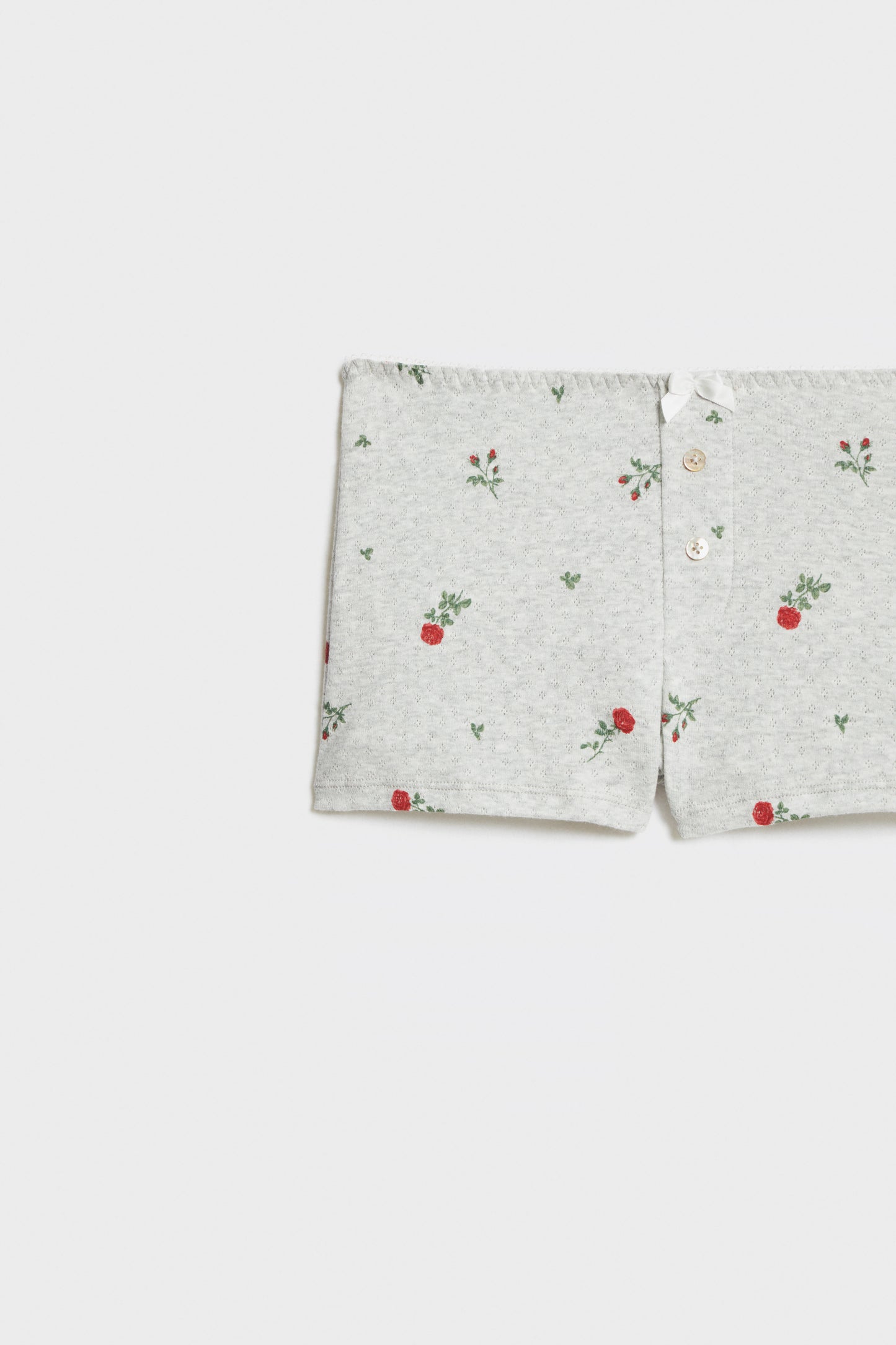Soft shorts in supersoft pointelle jersey cotton with elastic waistband. Matching lace detail and combined bow appliqué. Detailed with a button fly. 100% cotton gusset.