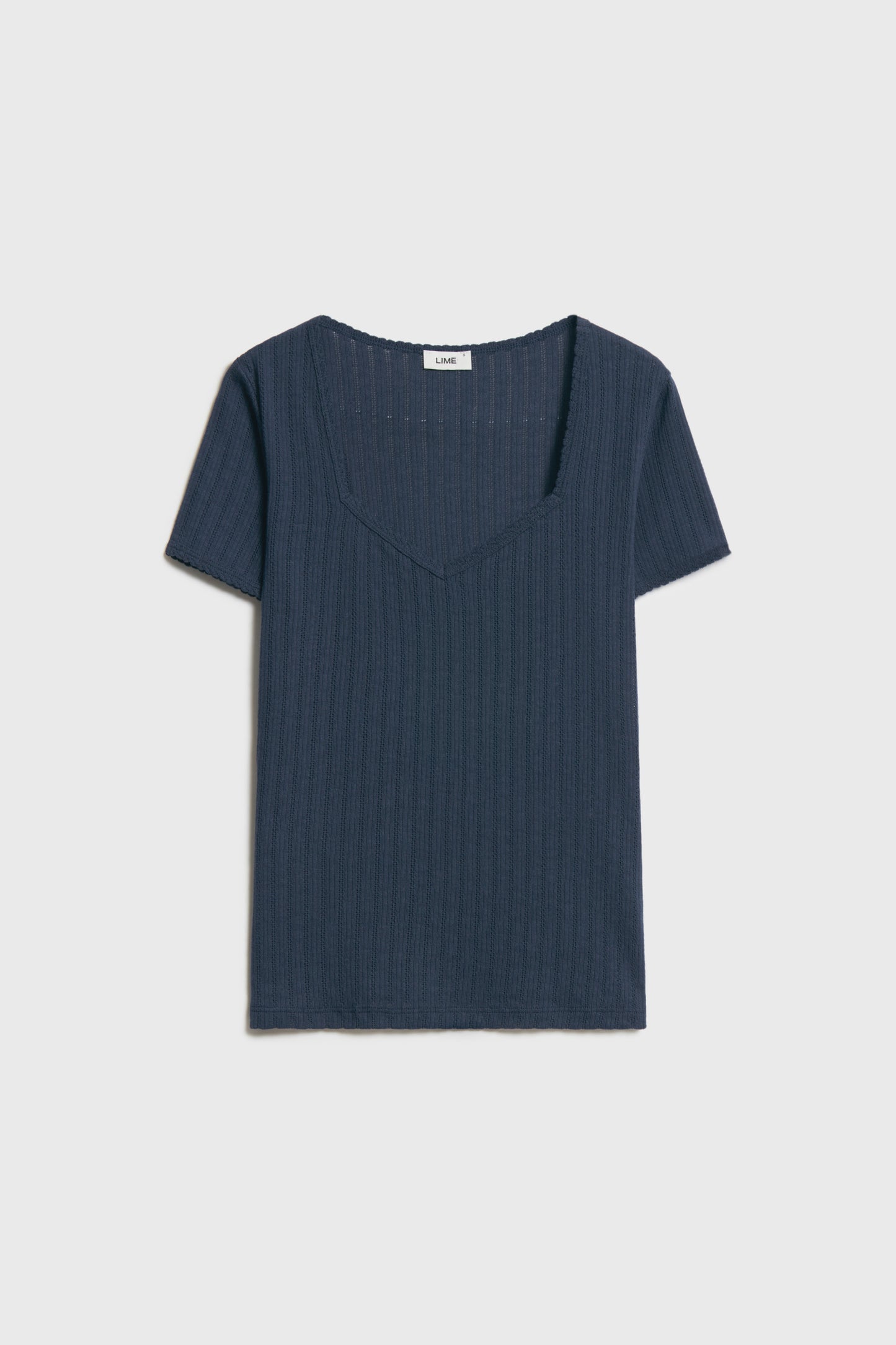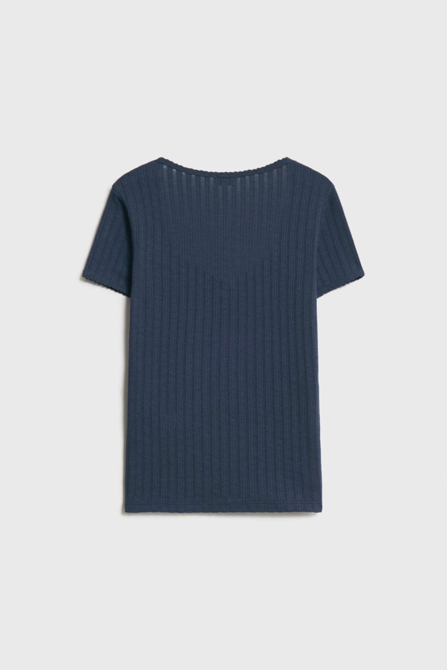 Fitted T-shirt in in soft, cotton pointelle jersey with a sweetheart neckline and short sleeves. Finished with delicate scalloped trims.
