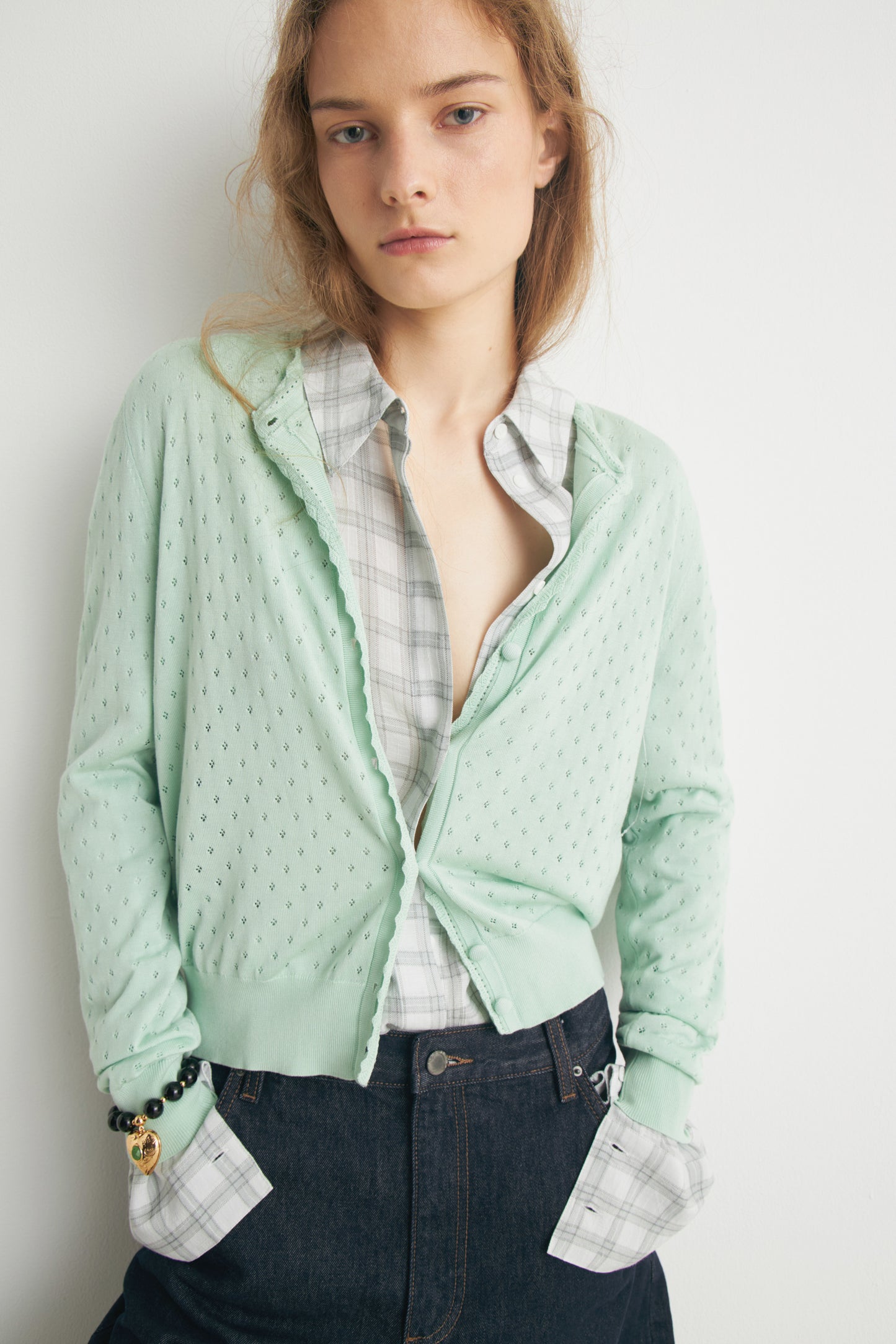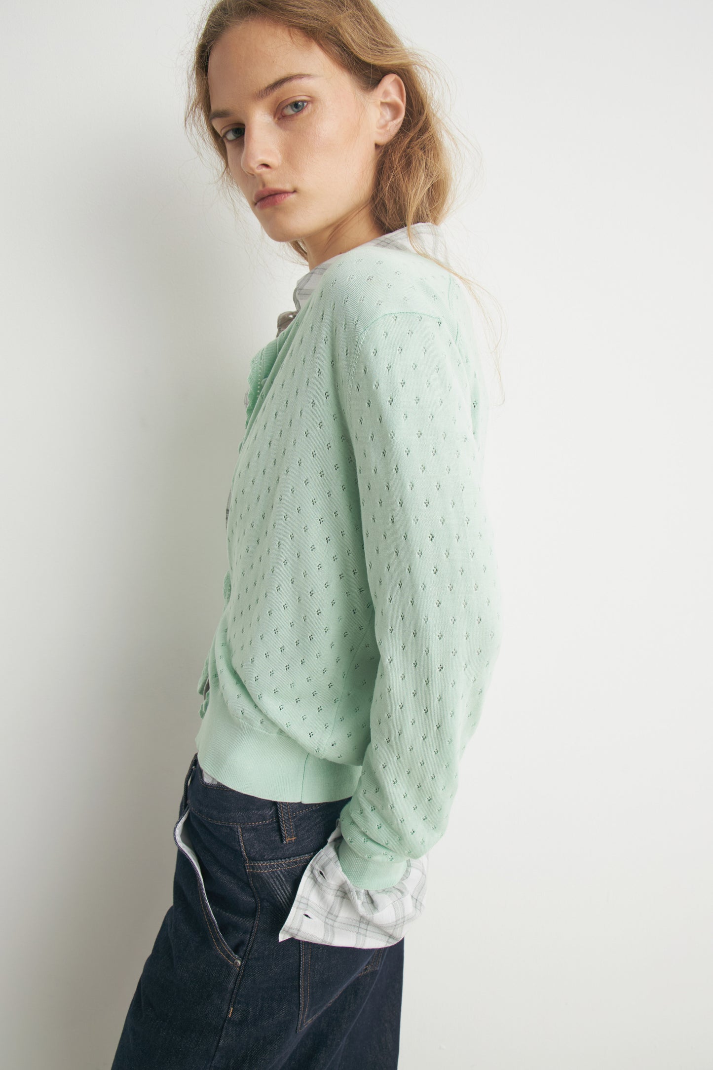 POINTELLE-KNIT LYOCELL CARDIGAN