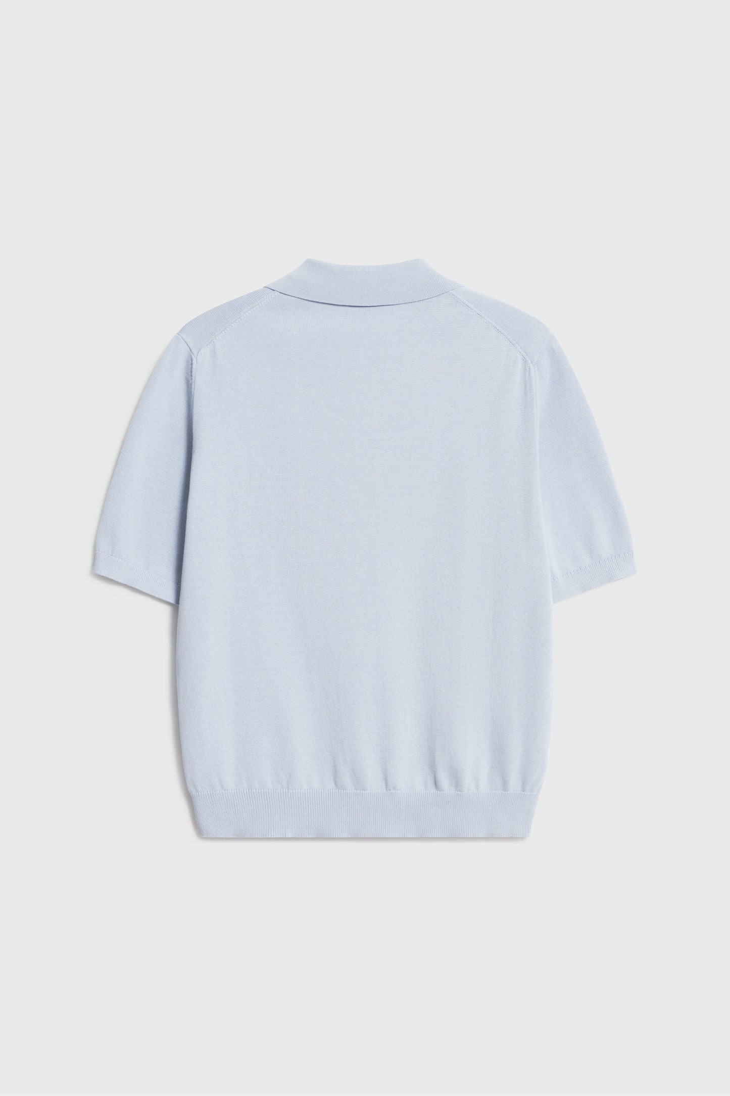 Polo jumper in a fine-knit cotton with a ribbed collar, button placket and short sleeves.