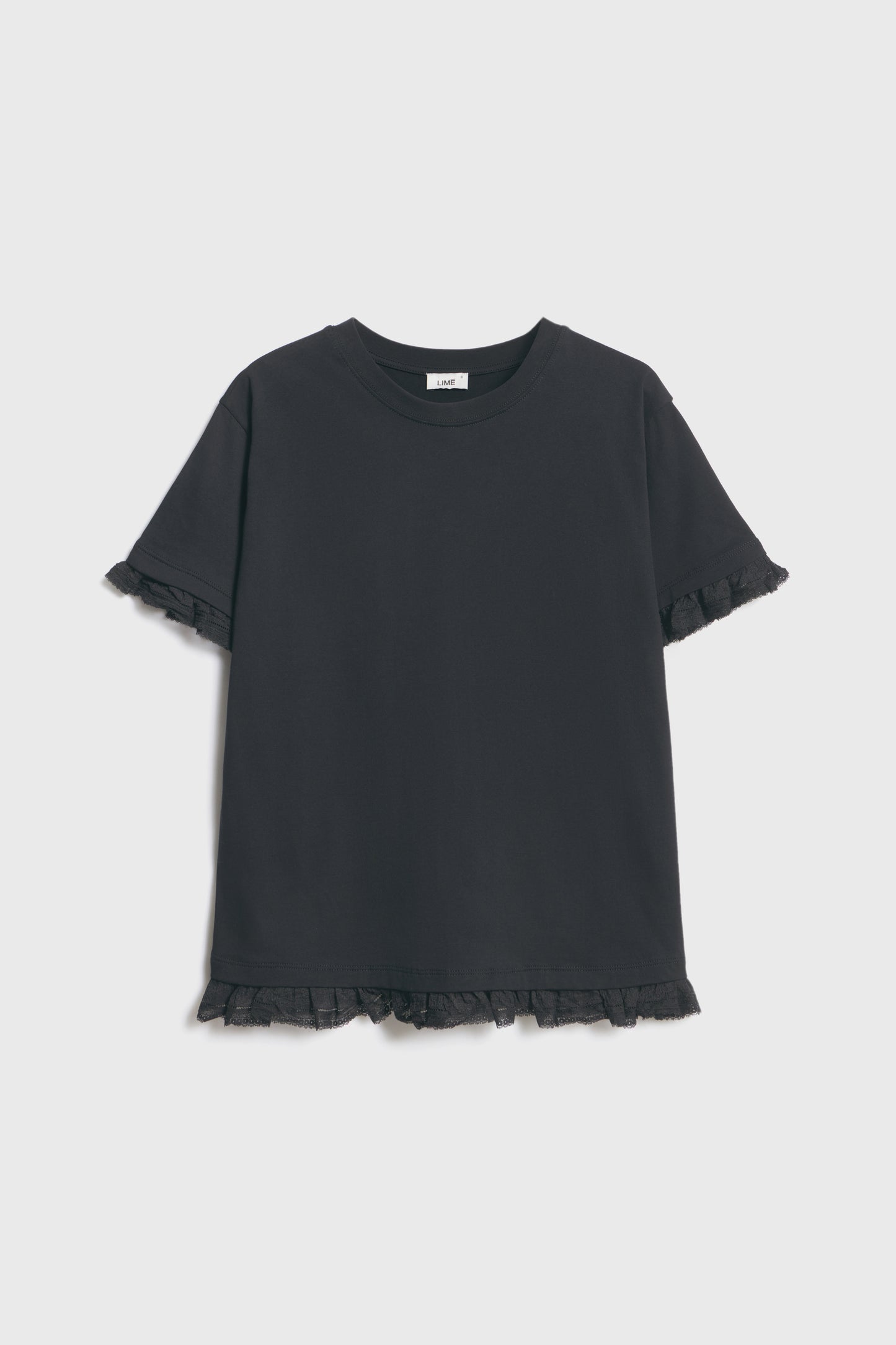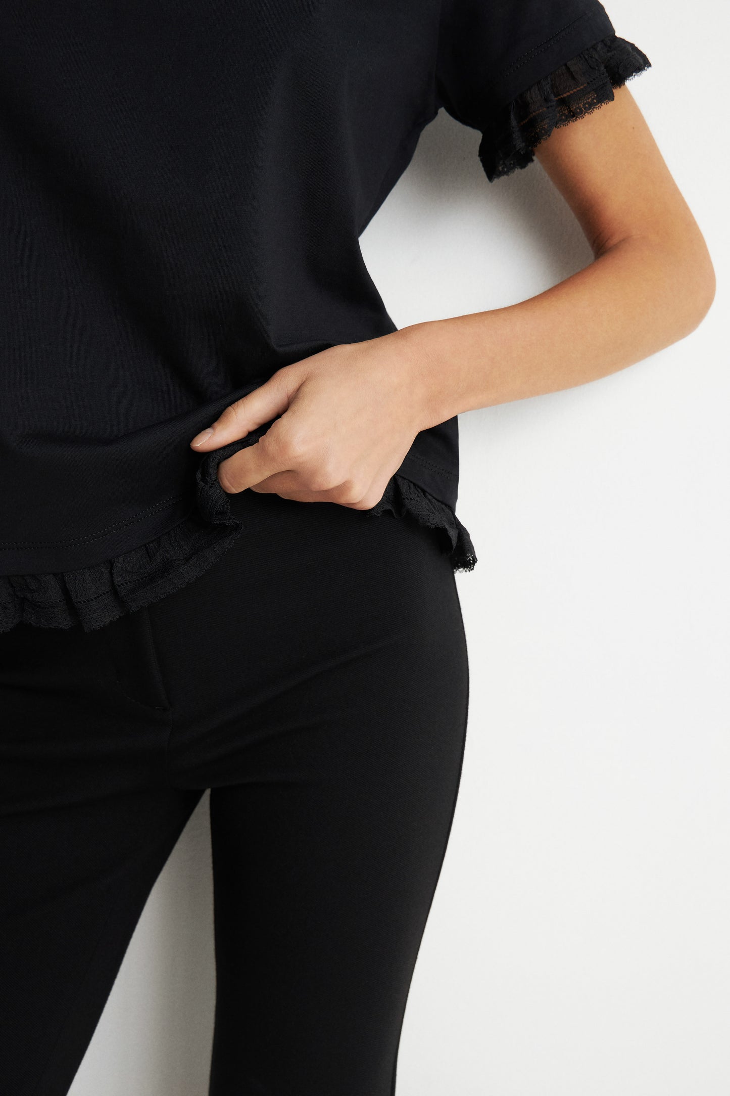 T-shirt in soft cotton jersey with a round neck and short sleeves. Featuring lace-trimmed edges.