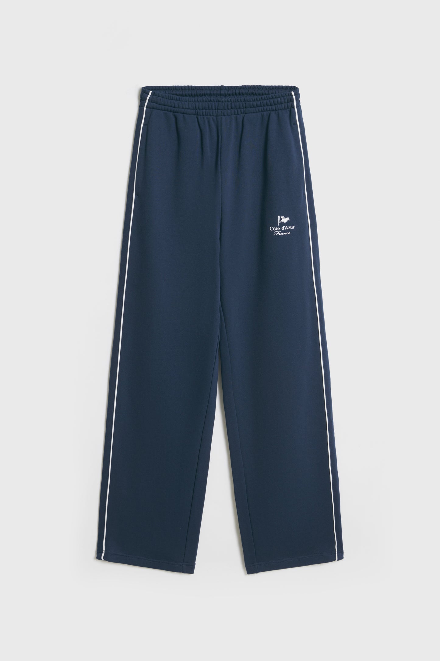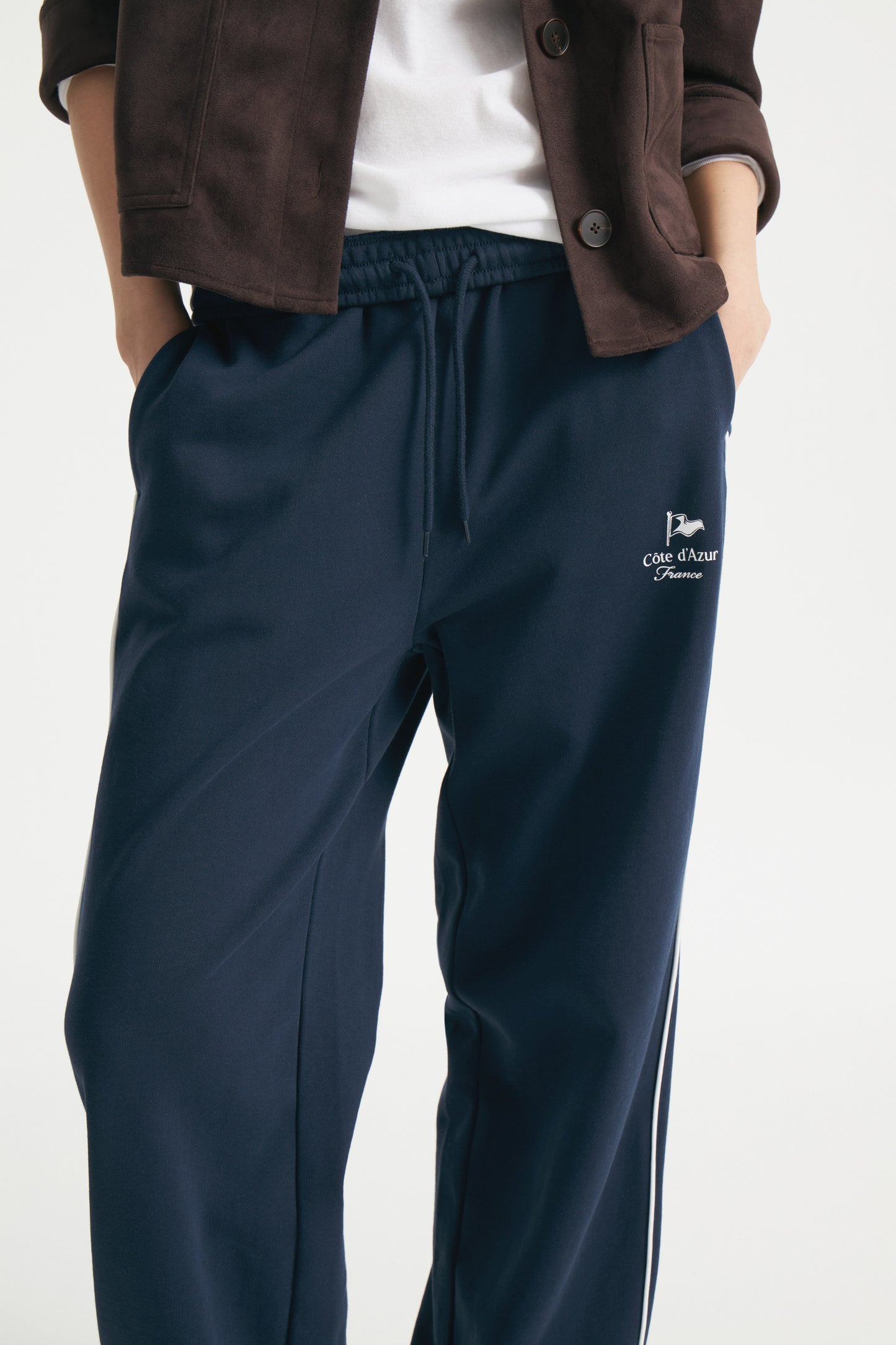 SIDE-STRIPED PRINT-MOTIF TROUSERS