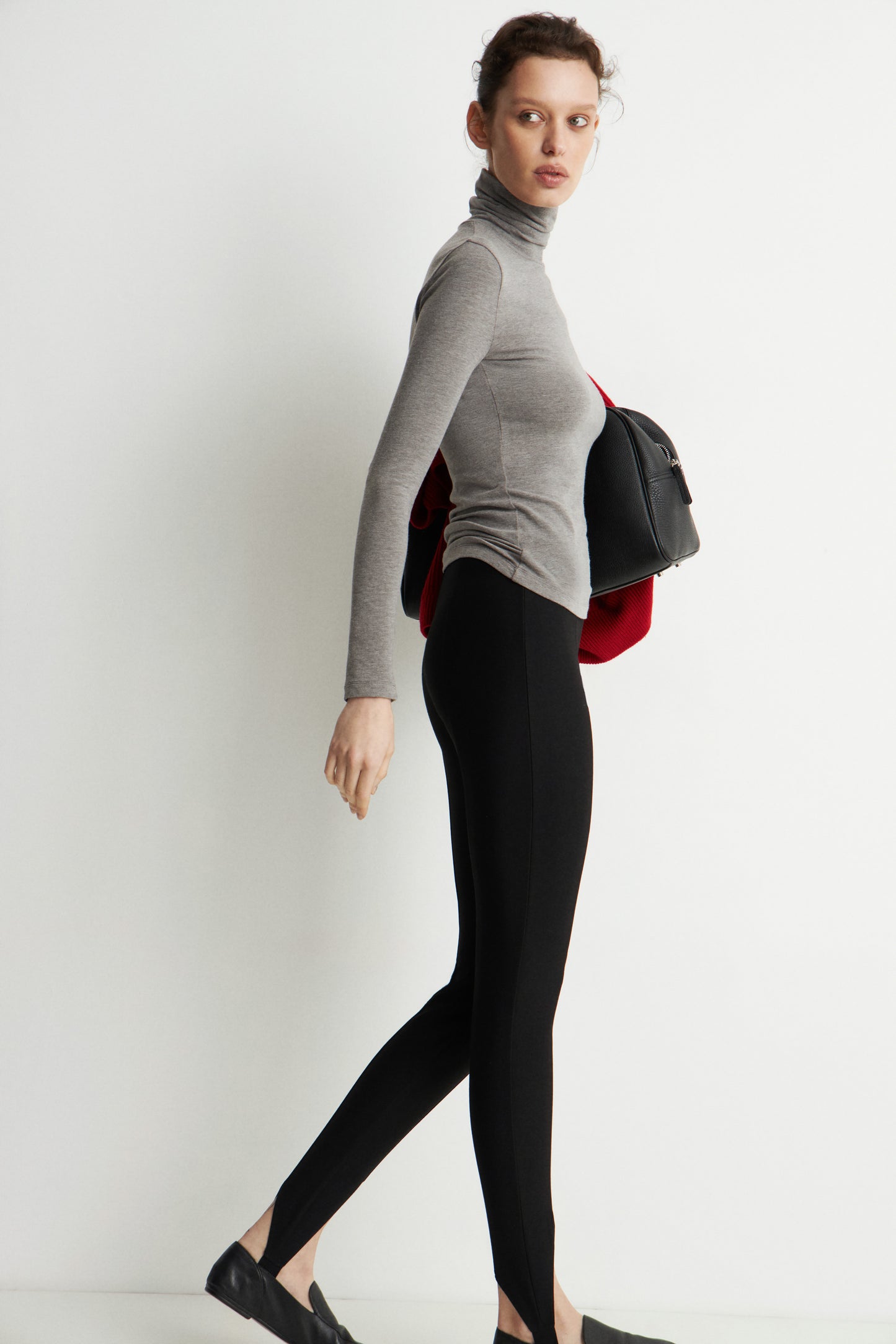 Stirrup leggings in a soft viscose-blend jersey with covered elastication at the waist and sewn-in creases down the legs.